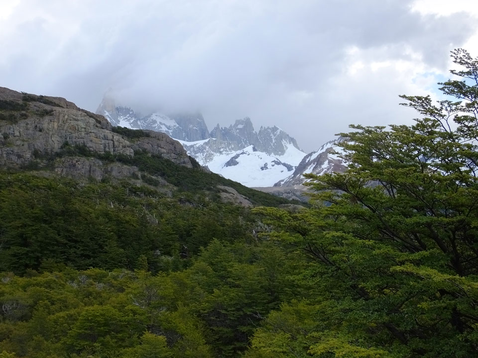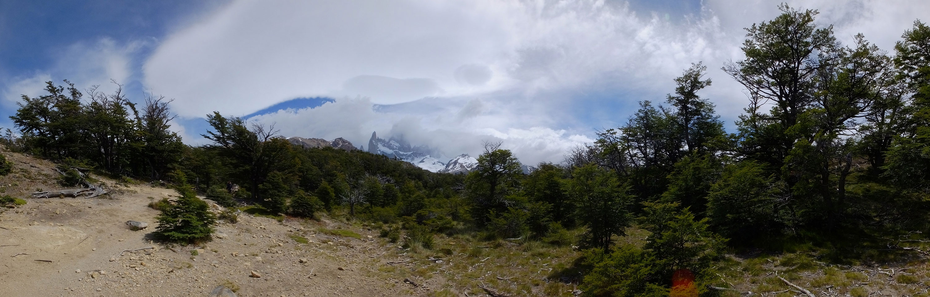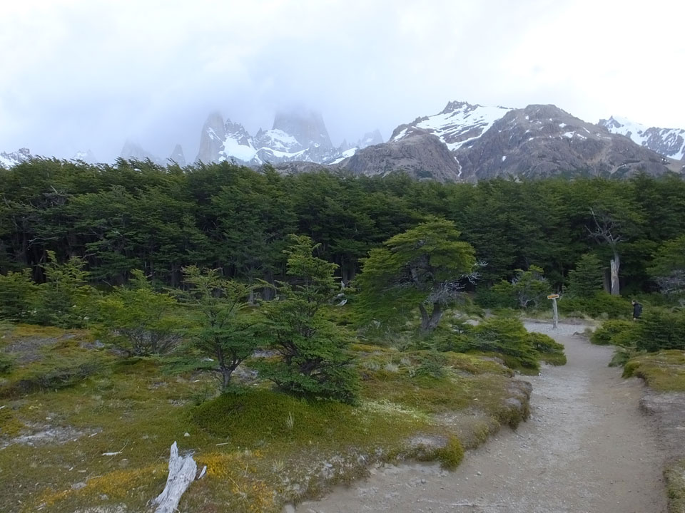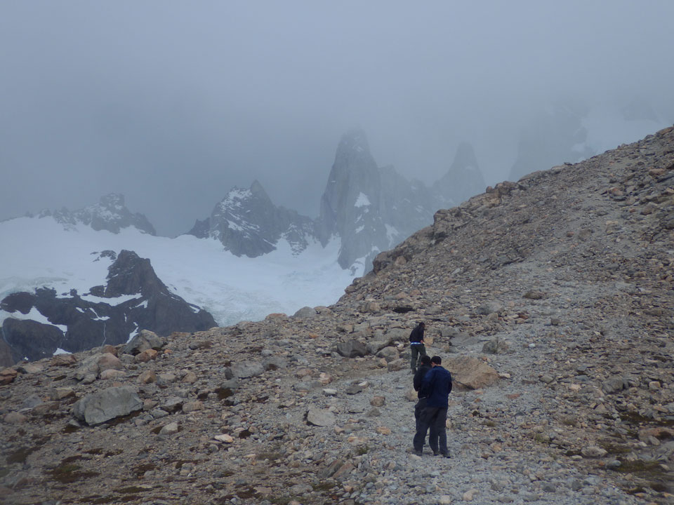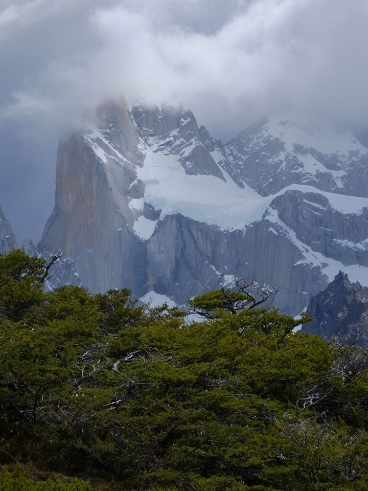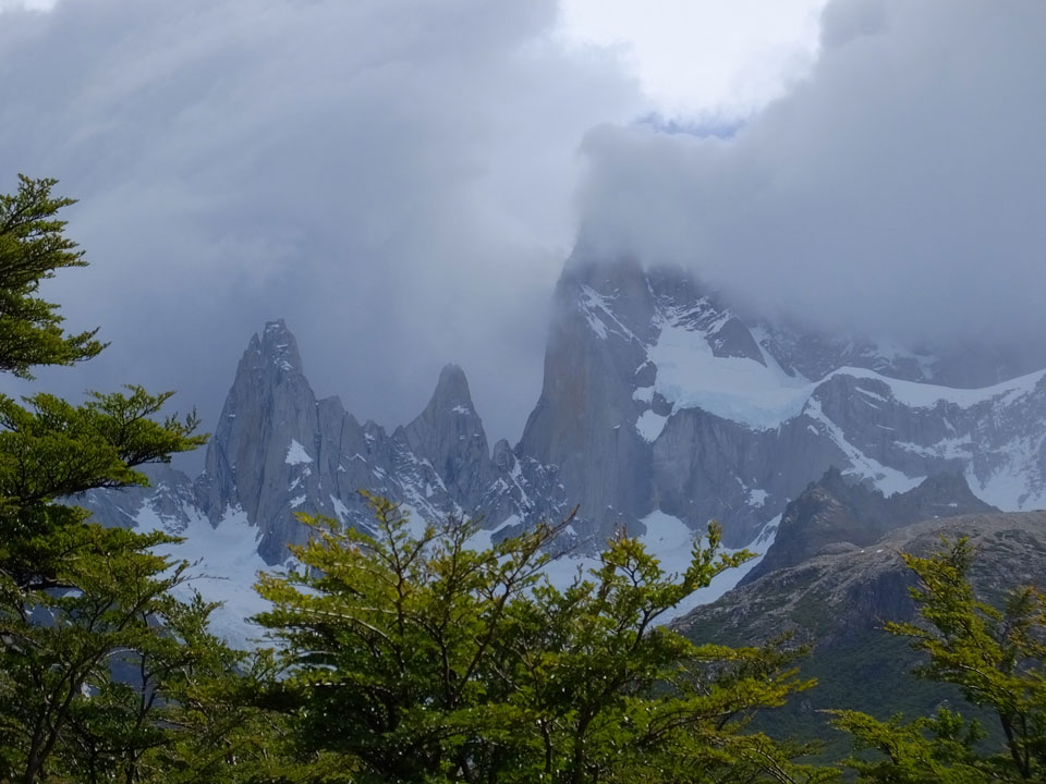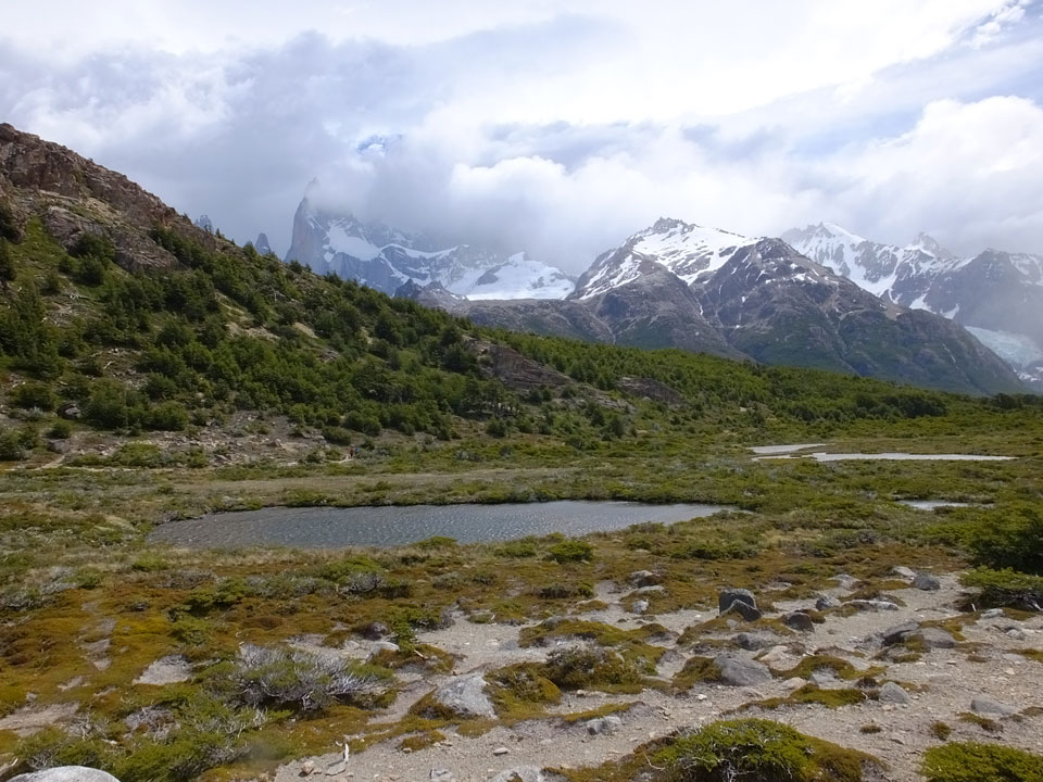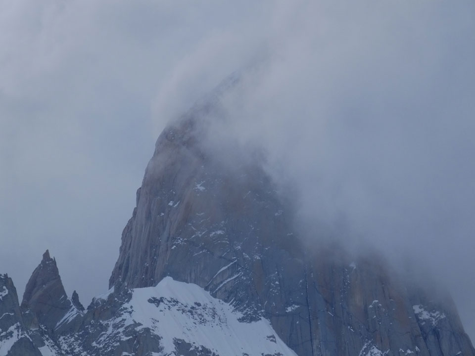 Nach unten ging’s auch OK, langsam aber sicher. Die Strecke zurück kannte ich, nur ging ich eine Alternativ-Route zum Mirador Fitz Roy. Da Sah ich dann nach ein paar Stunden doch noch den Berg. Tja, 2 Stunden später wäre vielleicht doch noch ein nettes Photo herausgekommen aber so ist das mit dem Wetter.