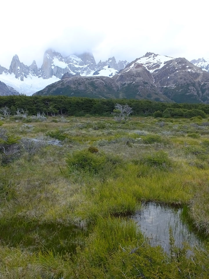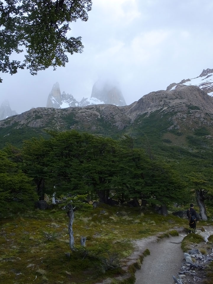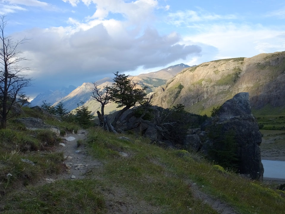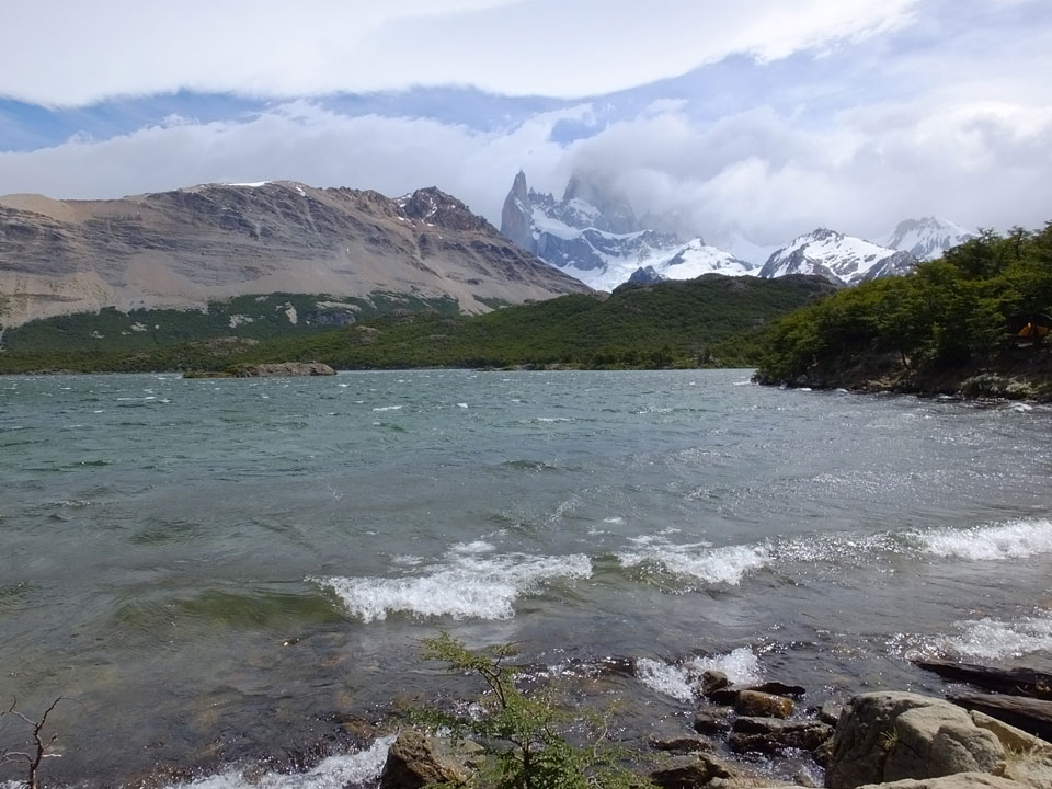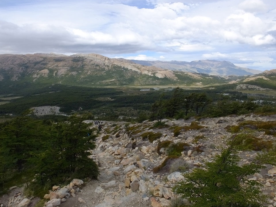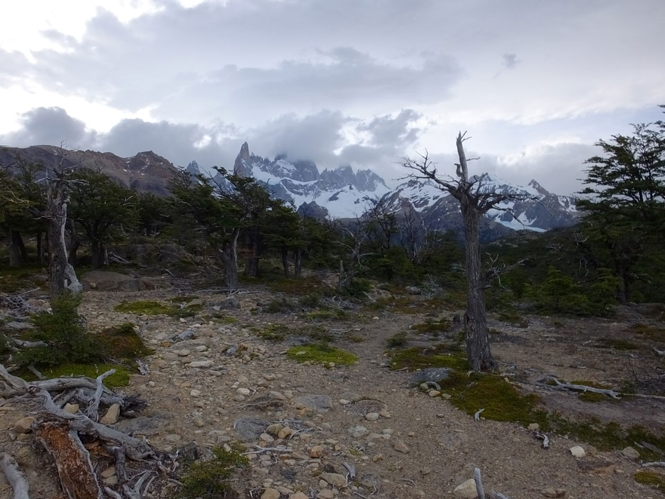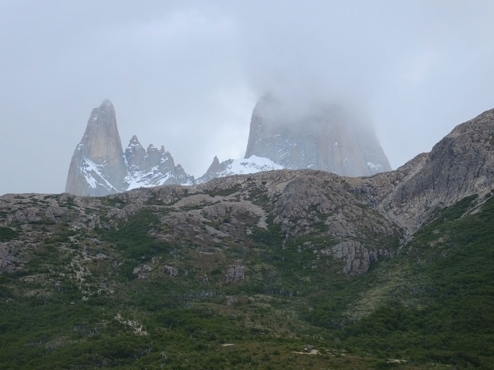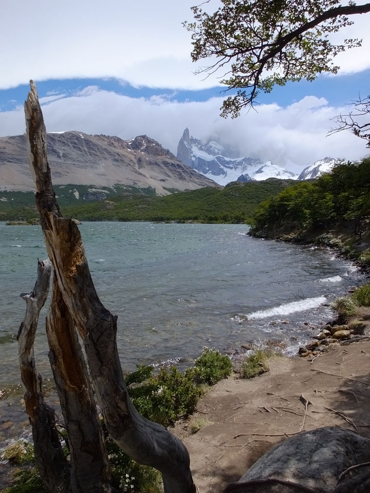 Nach unten ging’s auch OK, langsam aber sicher. Die Strecke zurück kannte ich, nur ging ich eine Alternativ-Route zum Mirador Fitz Roy. Da Sah ich dann nach ein paar Stunden doch noch den Berg. Tja, 2 Stunden später wäre vielleicht doch noch ein nettes Photo herausgekommen aber so ist das mit dem Wetter.