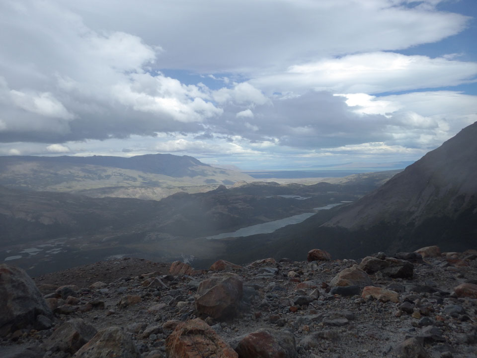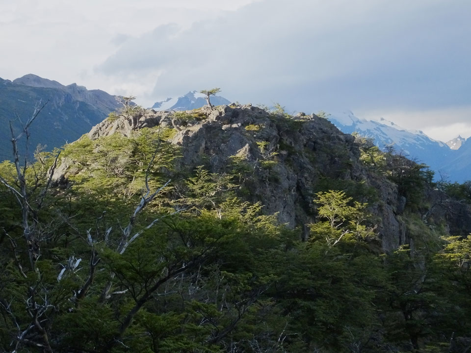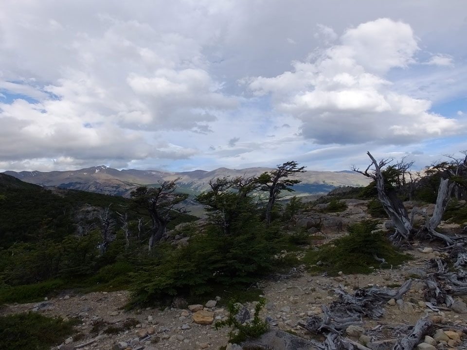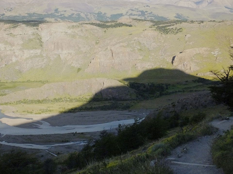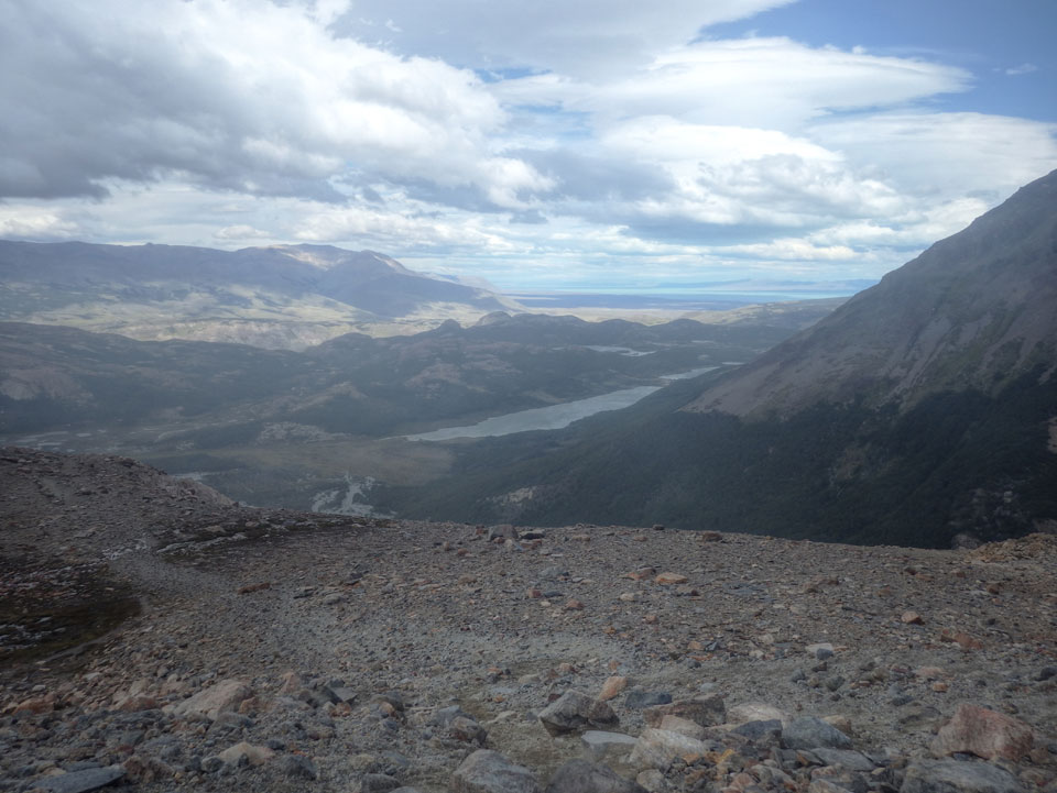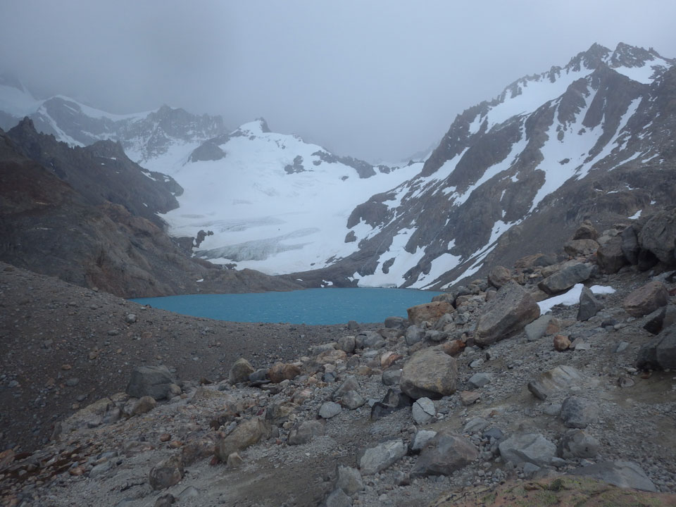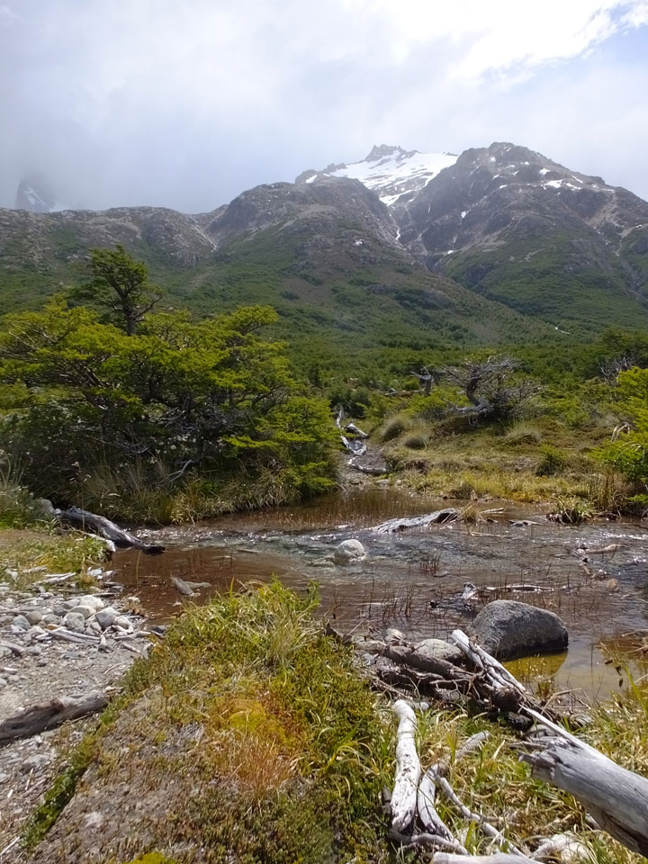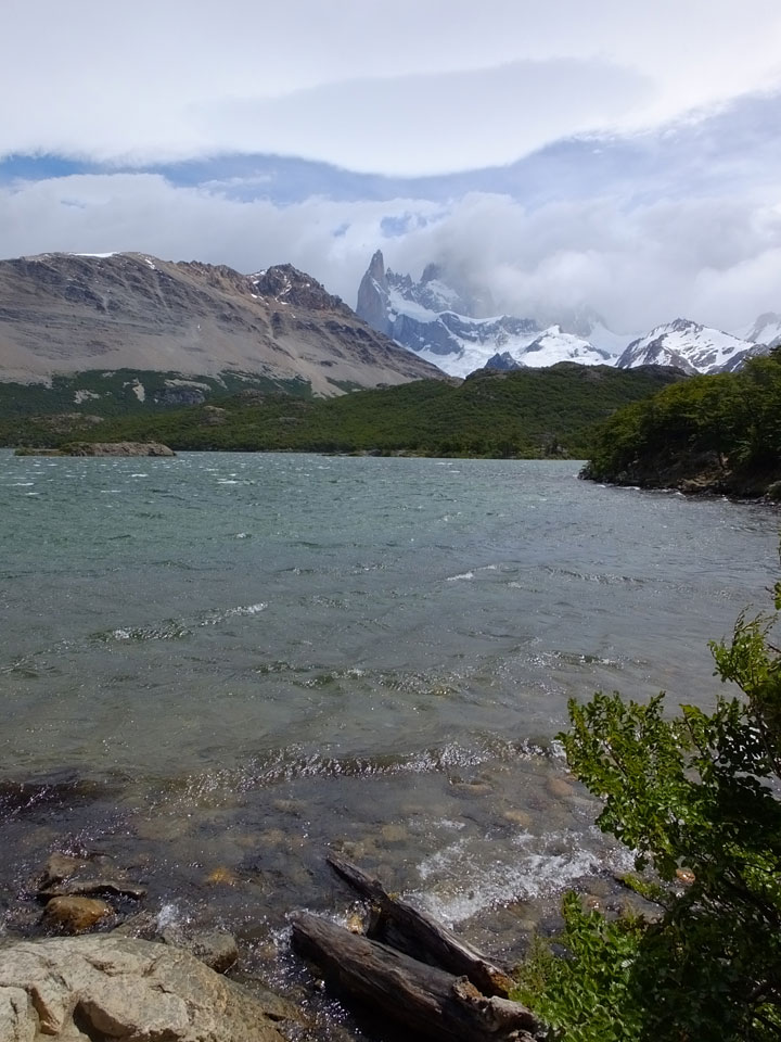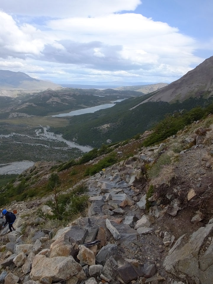 Nach unten ging’s auch OK, langsam aber sicher. Die Strecke zurück kannte ich, nur ging ich eine Alternativ-Route zum Mirador Fitz Roy. Da Sah ich dann nach ein paar Stunden doch noch den Berg. Tja, 2 Stunden später wäre vielleicht doch noch ein nettes Photo herausgekommen aber so ist das mit dem Wetter.