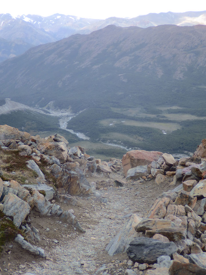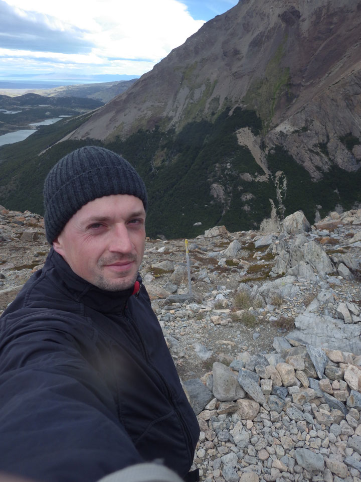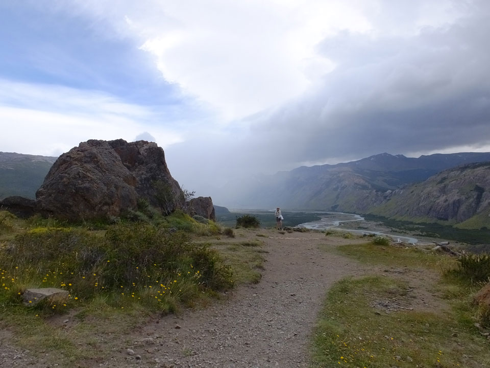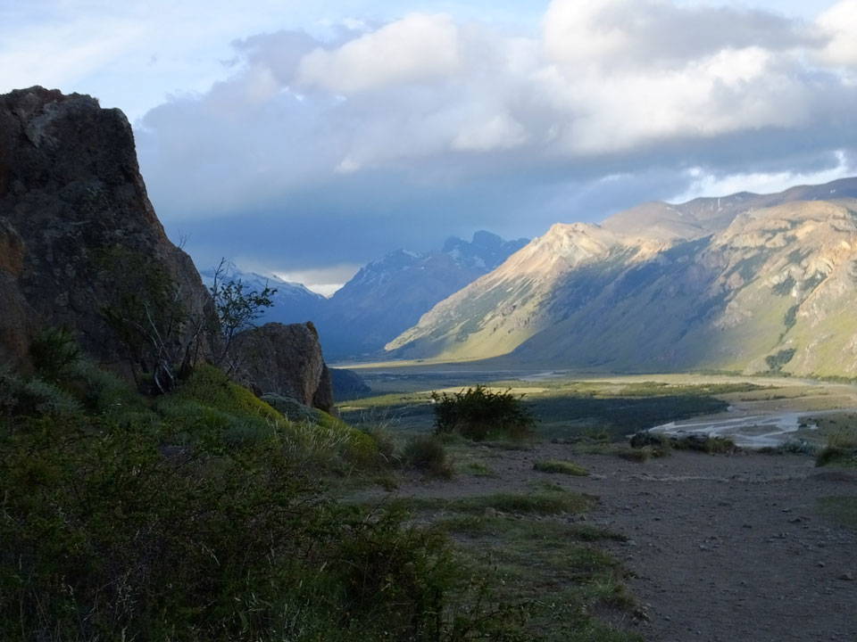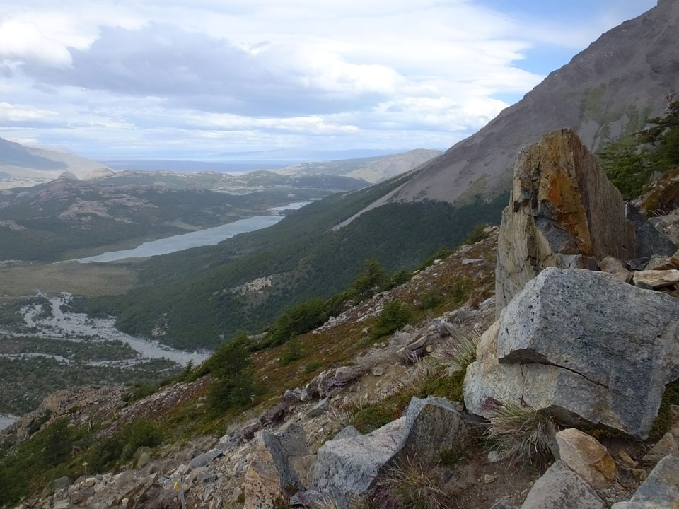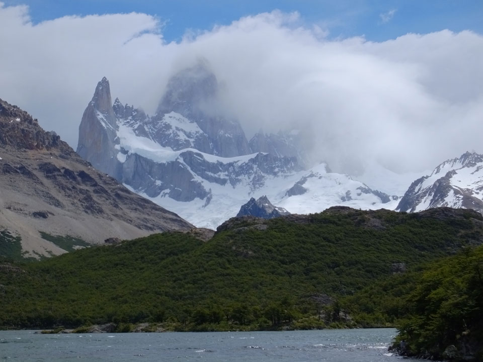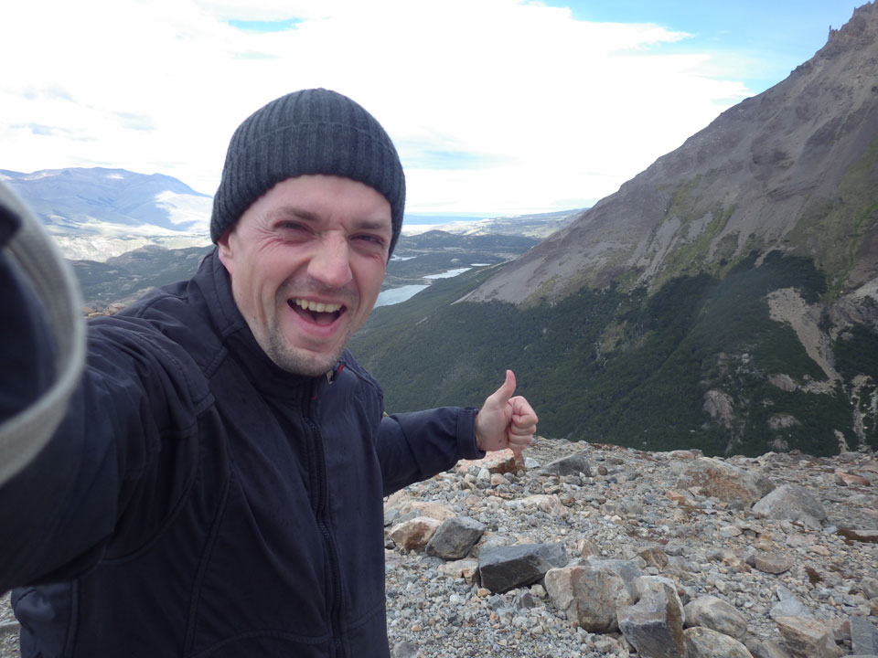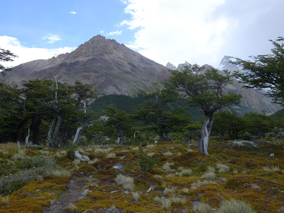 Nach unten ging’s auch OK, langsam aber sicher. Die Strecke zurück kannte ich, nur ging ich eine Alternativ-Route zum Mirador Fitz Roy. Da Sah ich dann nach ein paar Stunden doch noch den Berg. Tja, 2 Stunden später wäre vielleicht doch noch ein nettes Photo herausgekommen aber so ist das mit dem Wetter.