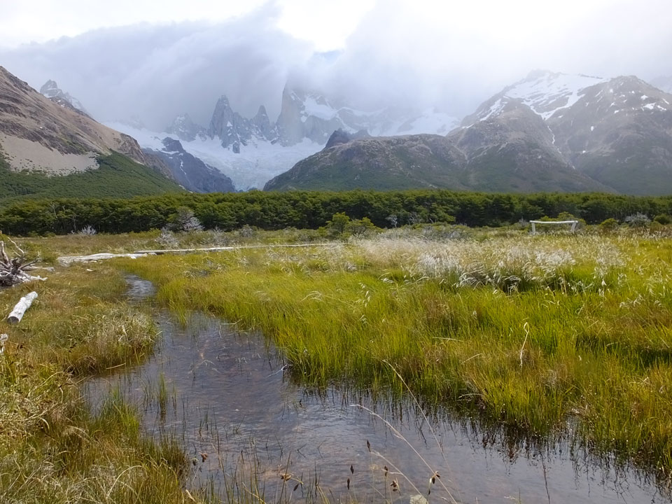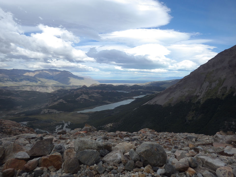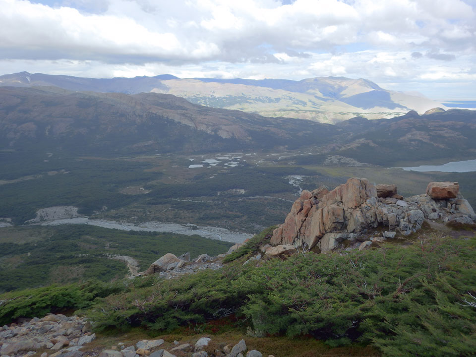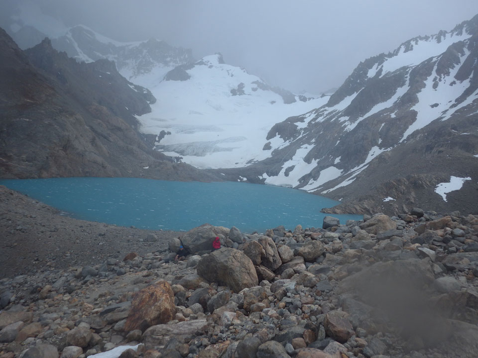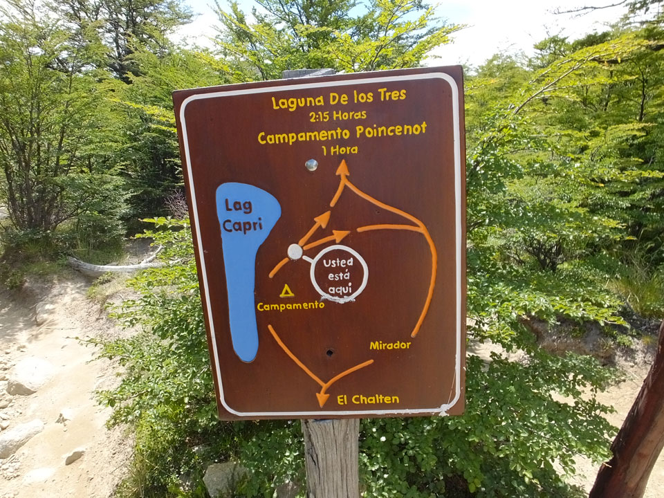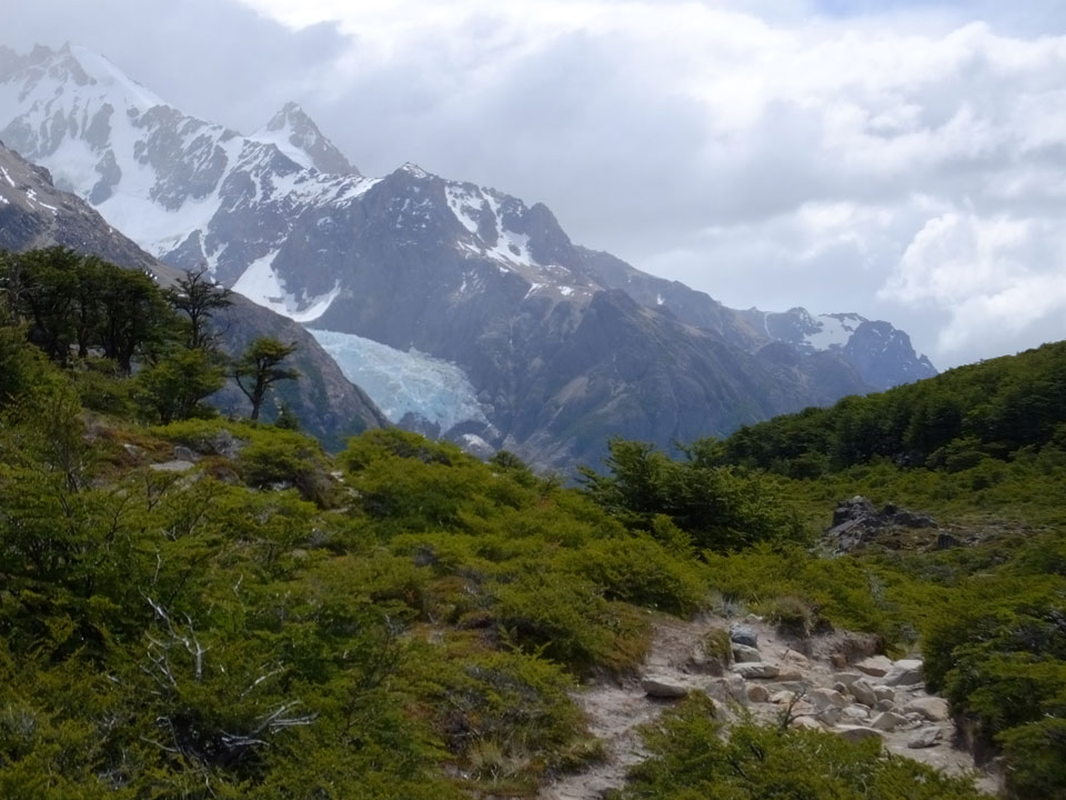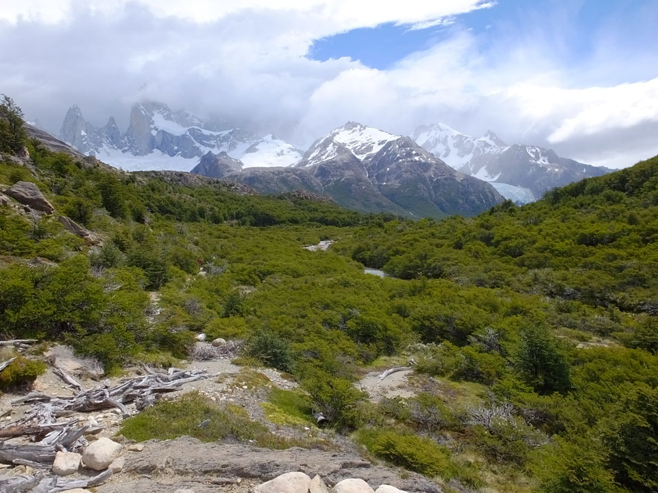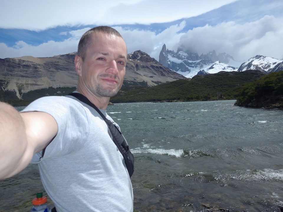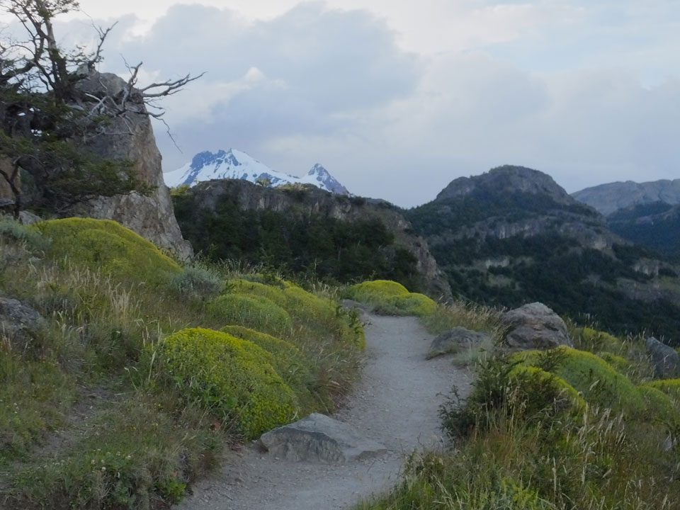 Nach unten ging’s auch OK, langsam aber sicher. Die Strecke zurück kannte ich, nur ging ich eine Alternativ-Route zum Mirador Fitz Roy. Da Sah ich dann nach ein paar Stunden doch noch den Berg. Tja, 2 Stunden später wäre vielleicht doch noch ein nettes Photo herausgekommen aber so ist das mit dem Wetter.
