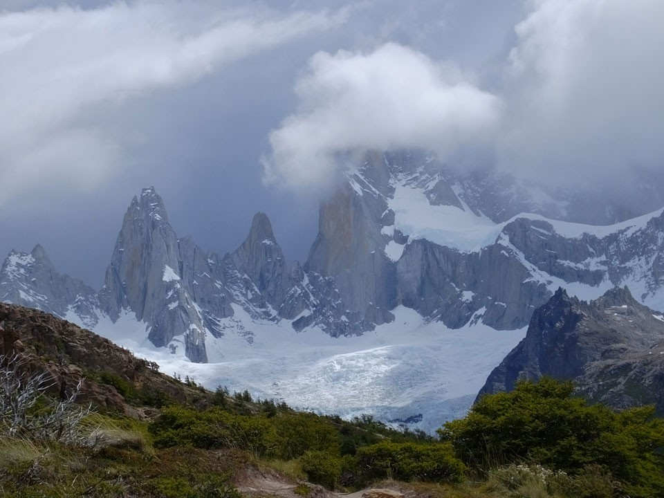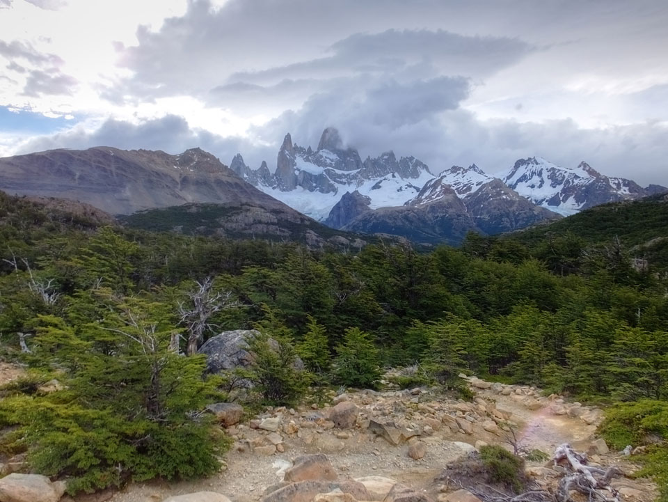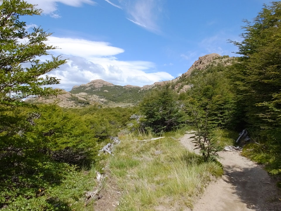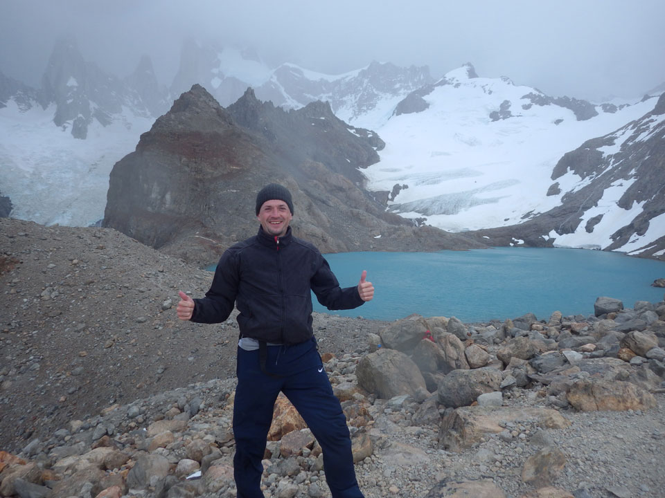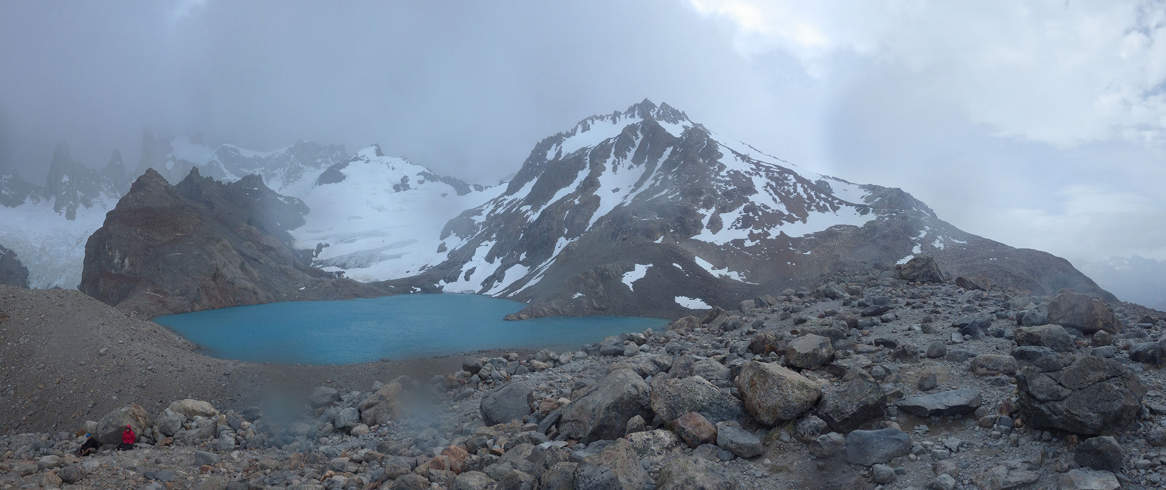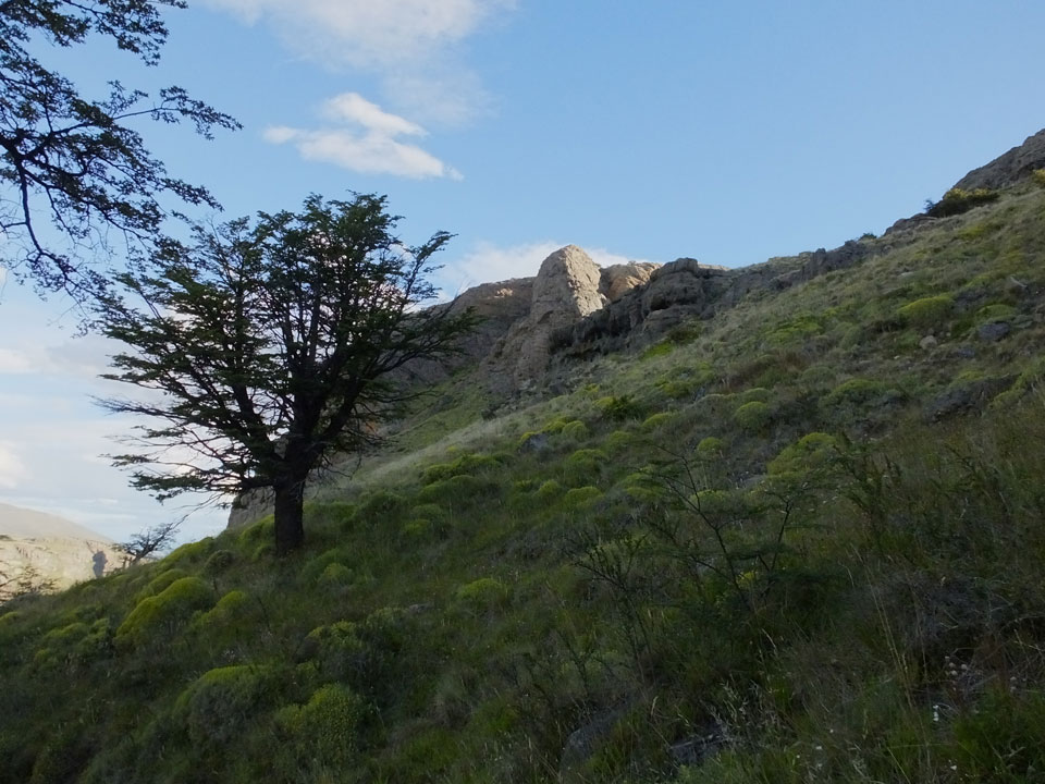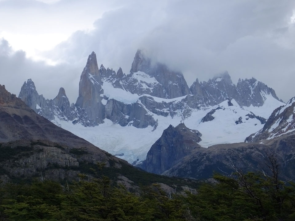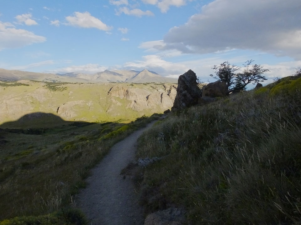 Nach unten ging’s auch OK, langsam aber sicher. Die Strecke zurück kannte ich, nur ging ich eine Alternativ-Route zum Mirador Fitz Roy. Da Sah ich dann nach ein paar Stunden doch noch den Berg. Tja, 2 Stunden später wäre vielleicht doch noch ein nettes Photo herausgekommen aber so ist das mit dem Wetter.