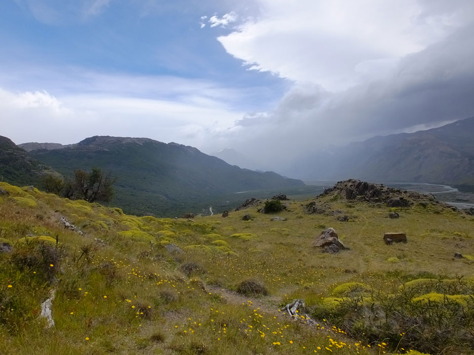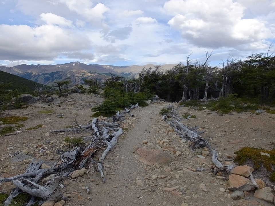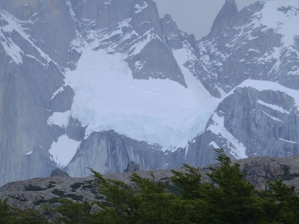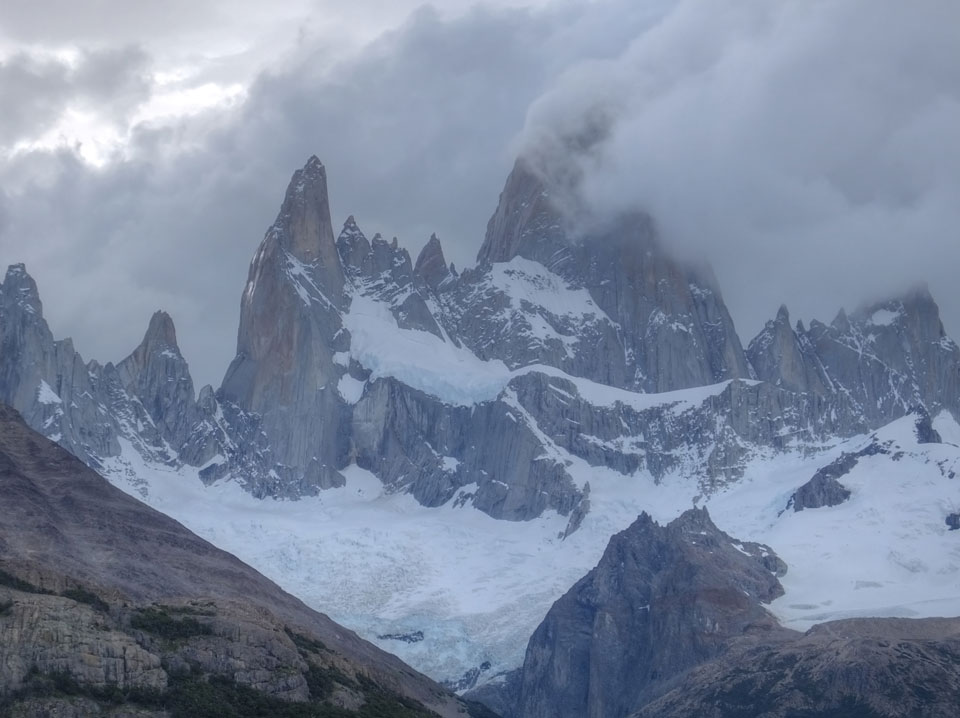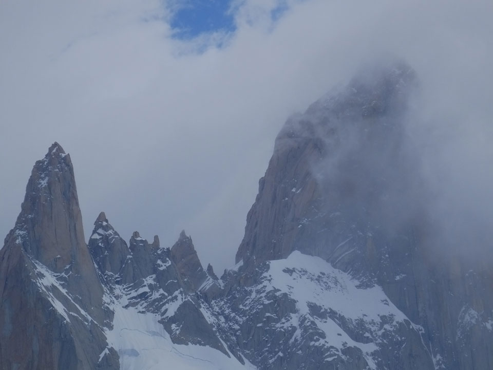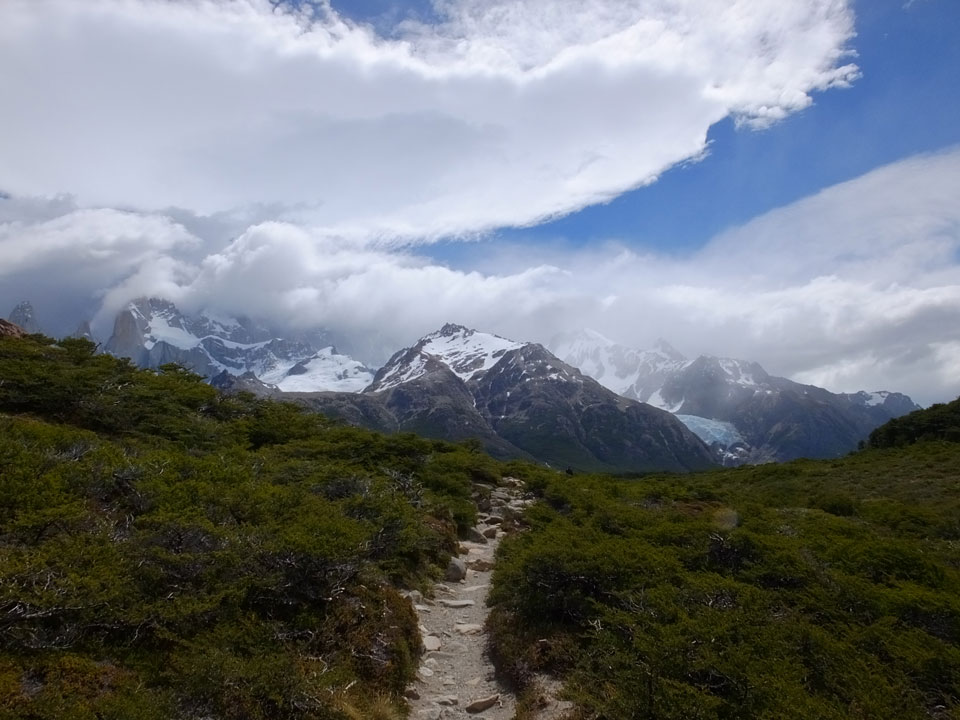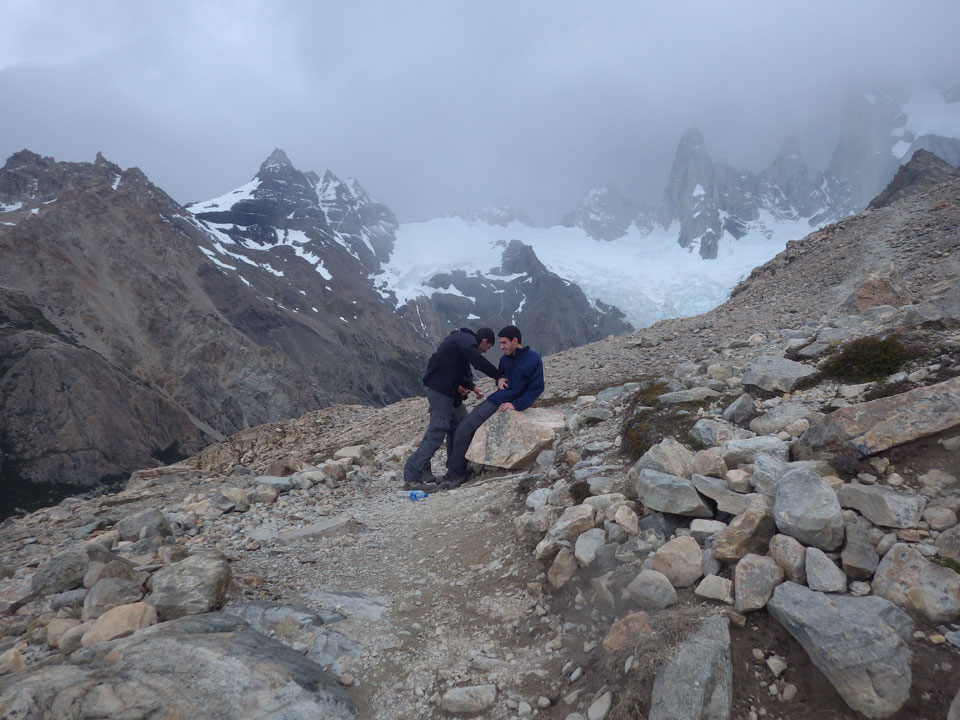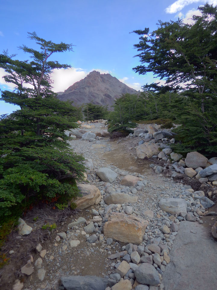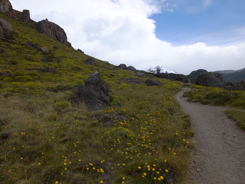 Nach unten ging’s auch OK, langsam aber sicher. Die Strecke zurück kannte ich, nur ging ich eine Alternativ-Route zum Mirador Fitz Roy. Da Sah ich dann nach ein paar Stunden doch noch den Berg. Tja, 2 Stunden später wäre vielleicht doch noch ein nettes Photo herausgekommen aber so ist das mit dem Wetter.