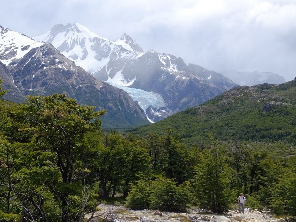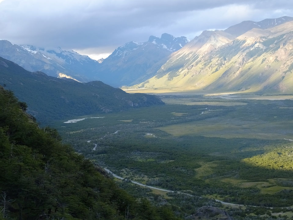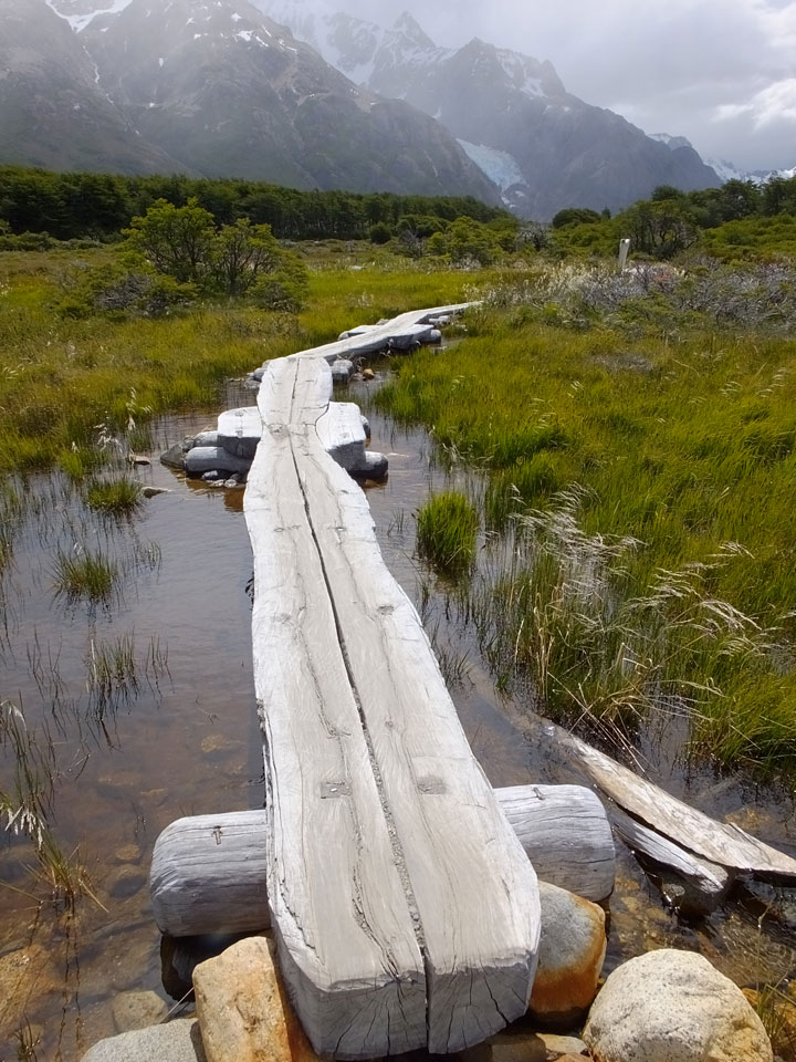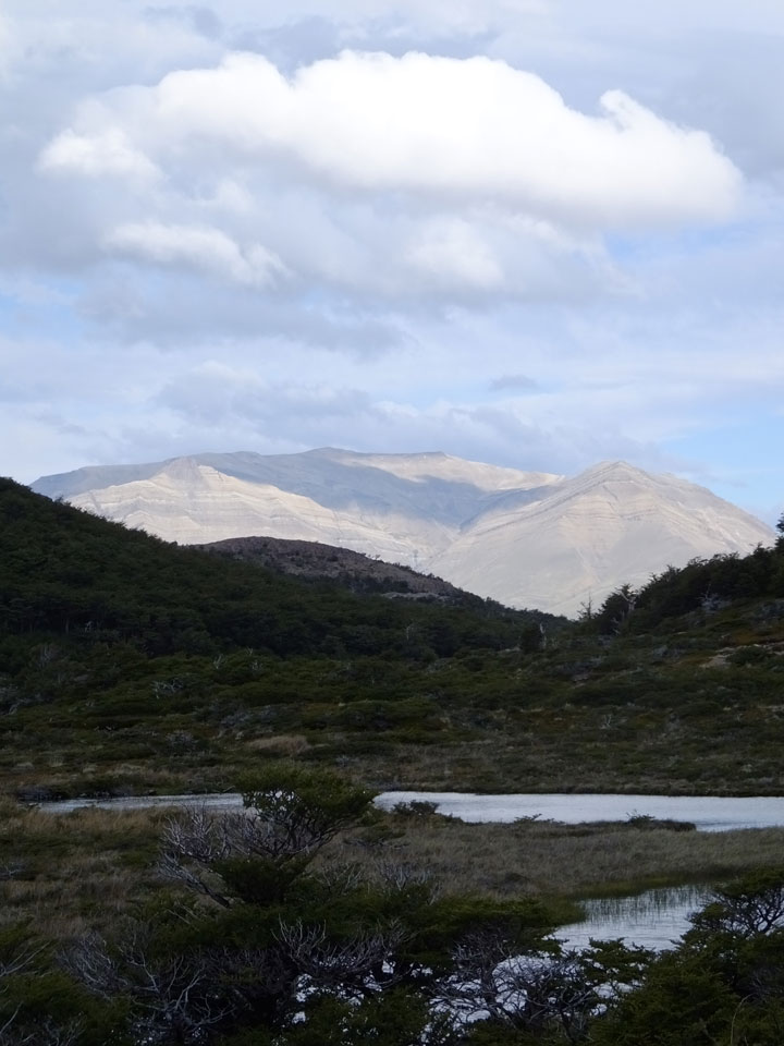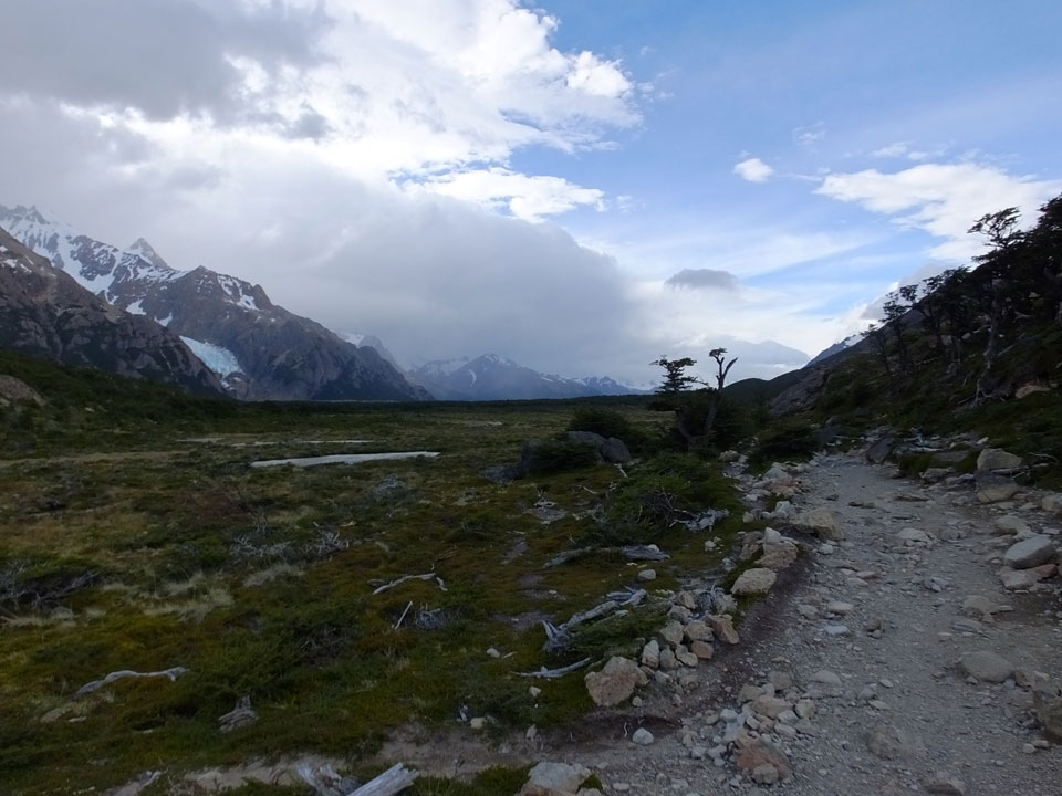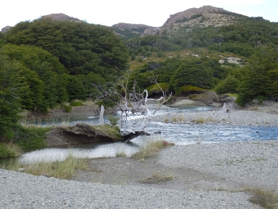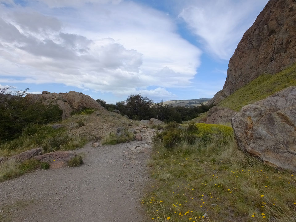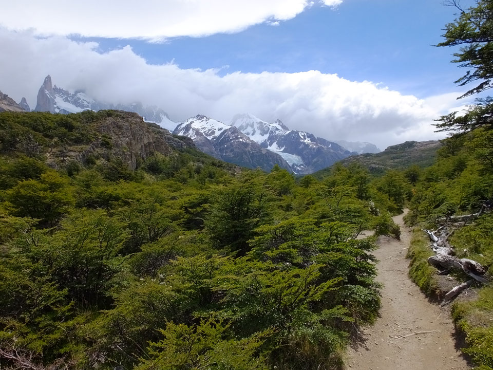 Nach unten ging’s auch OK, langsam aber sicher. Die Strecke zurück kannte ich, nur ging ich eine Alternativ-Route zum Mirador Fitz Roy. Da Sah ich dann nach ein paar Stunden doch noch den Berg. Tja, 2 Stunden später wäre vielleicht doch noch ein nettes Photo herausgekommen aber so ist das mit dem Wetter.