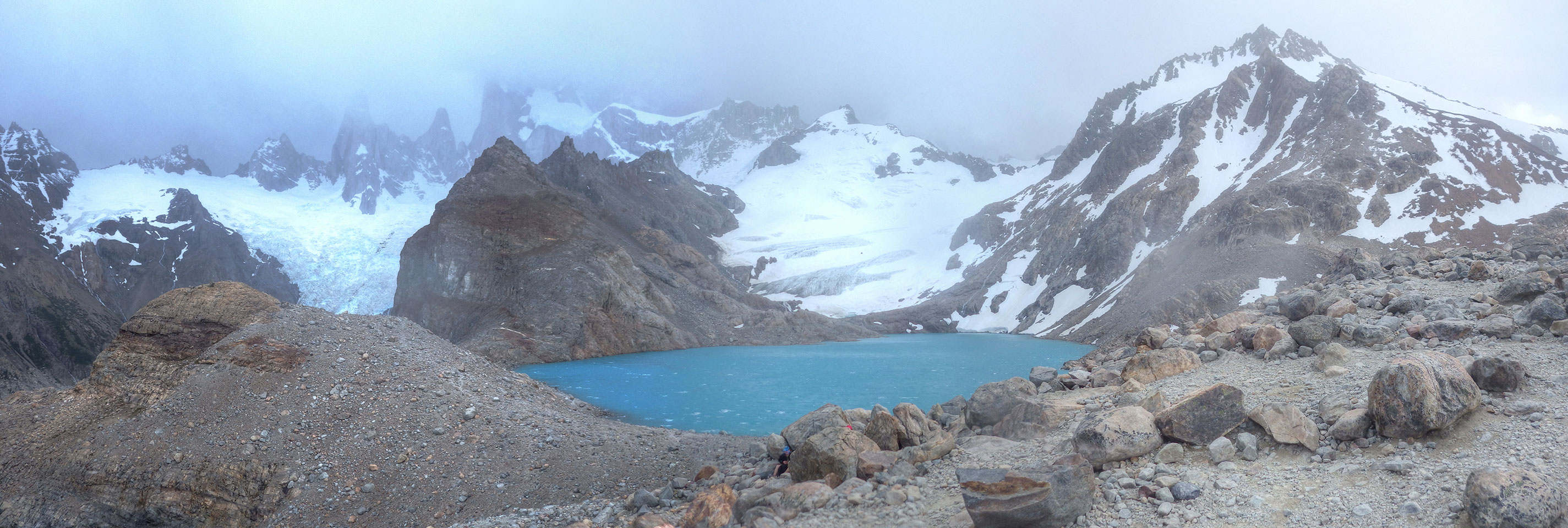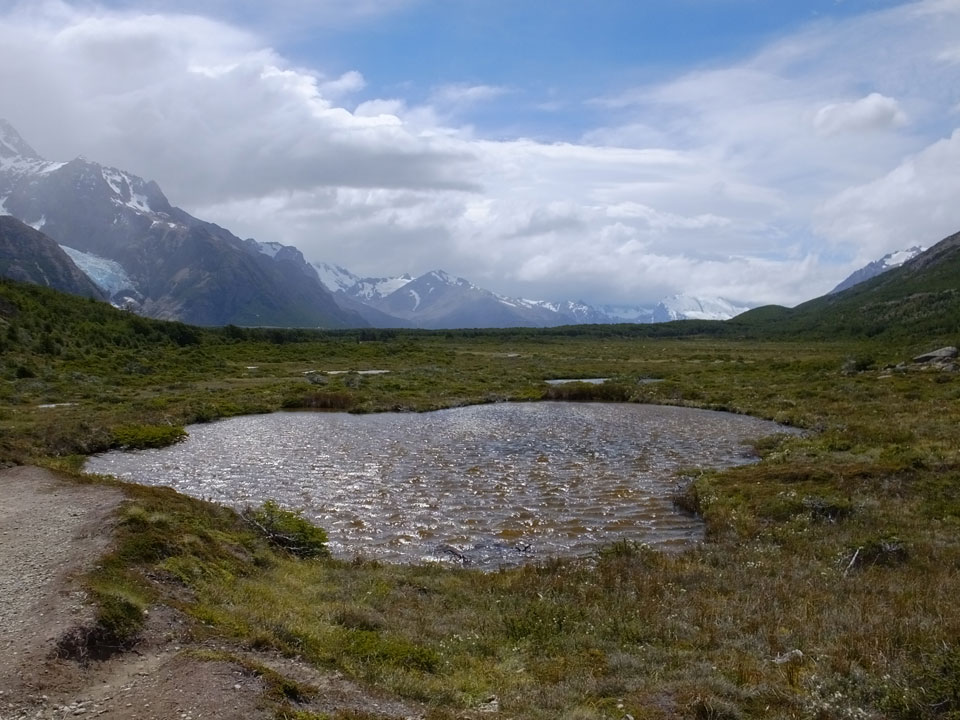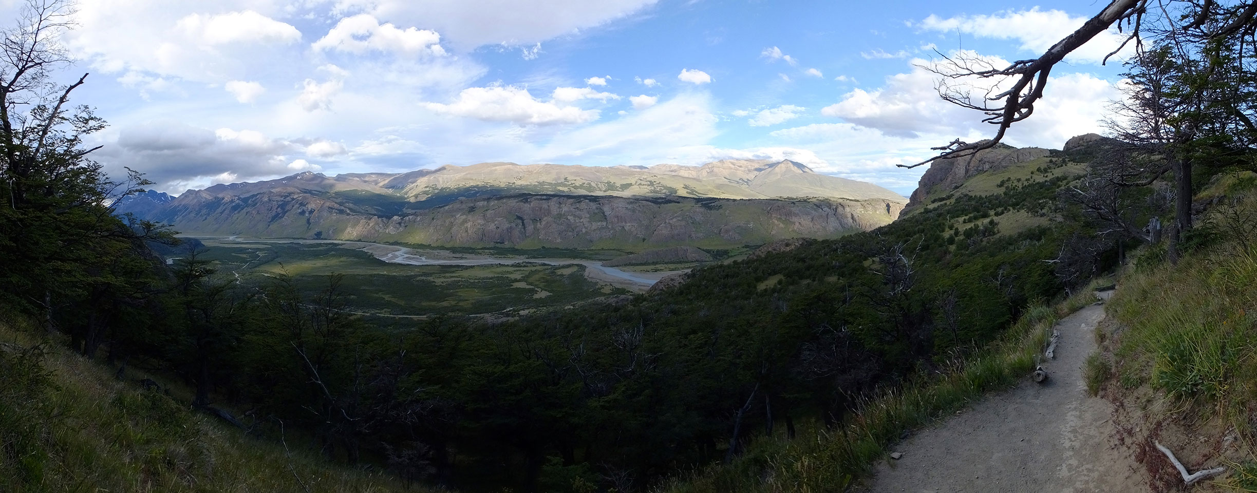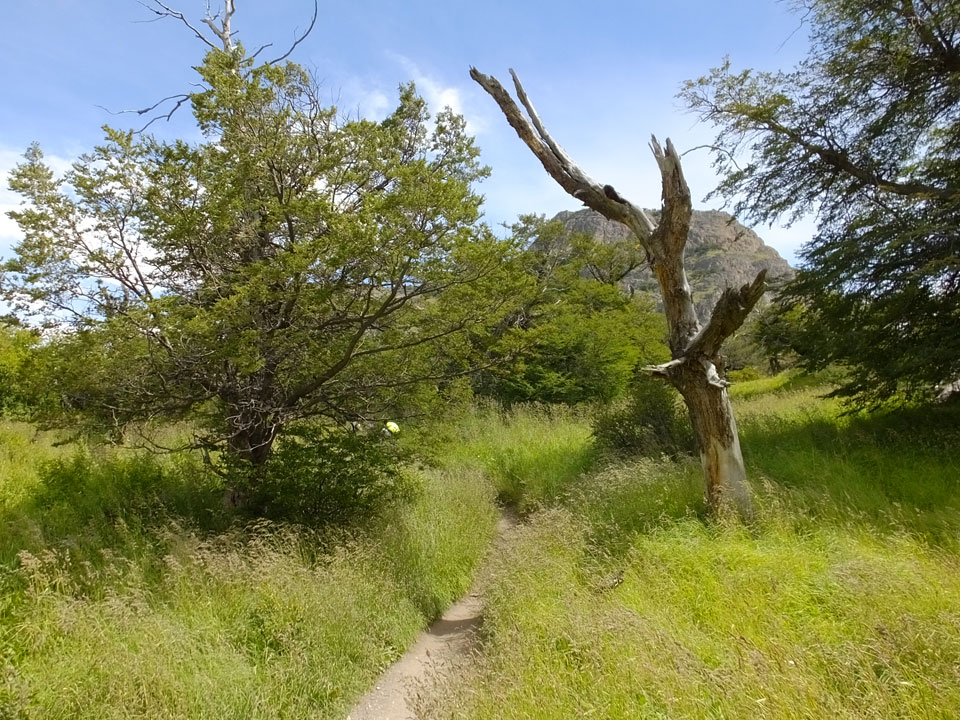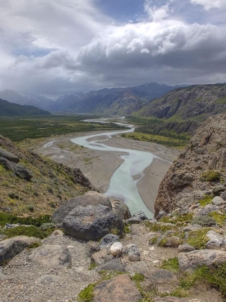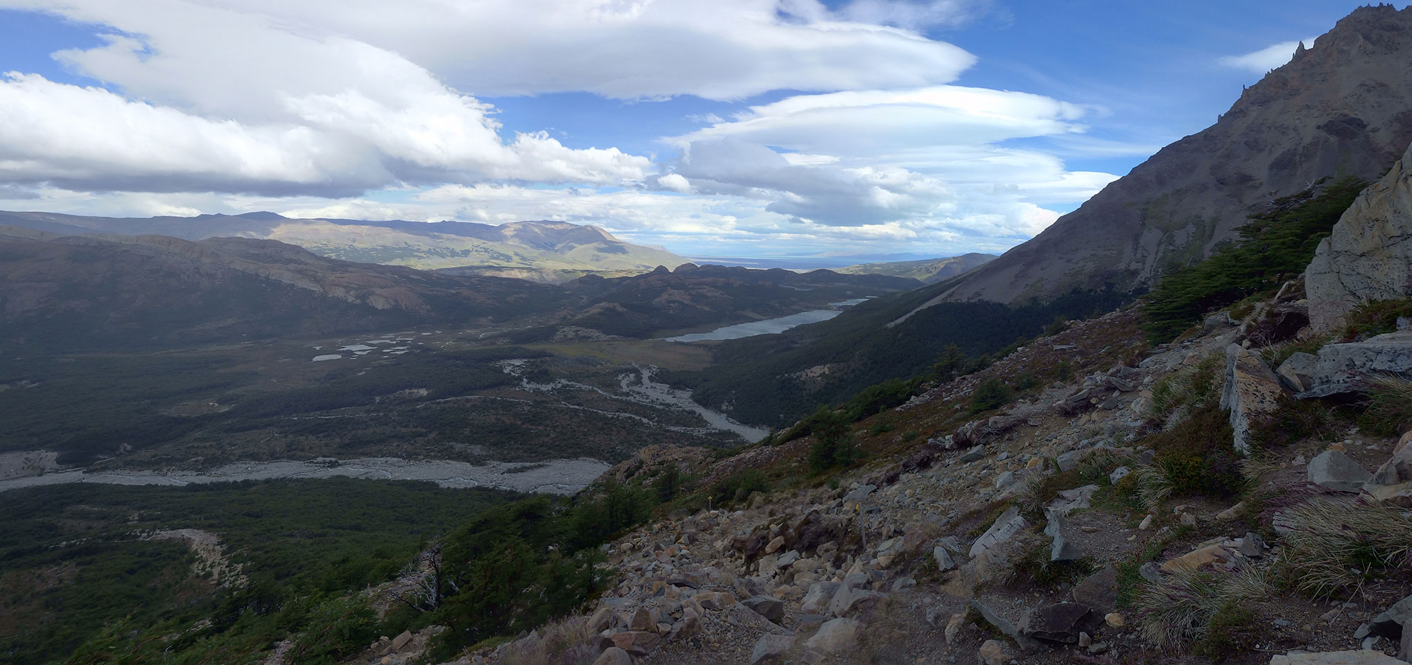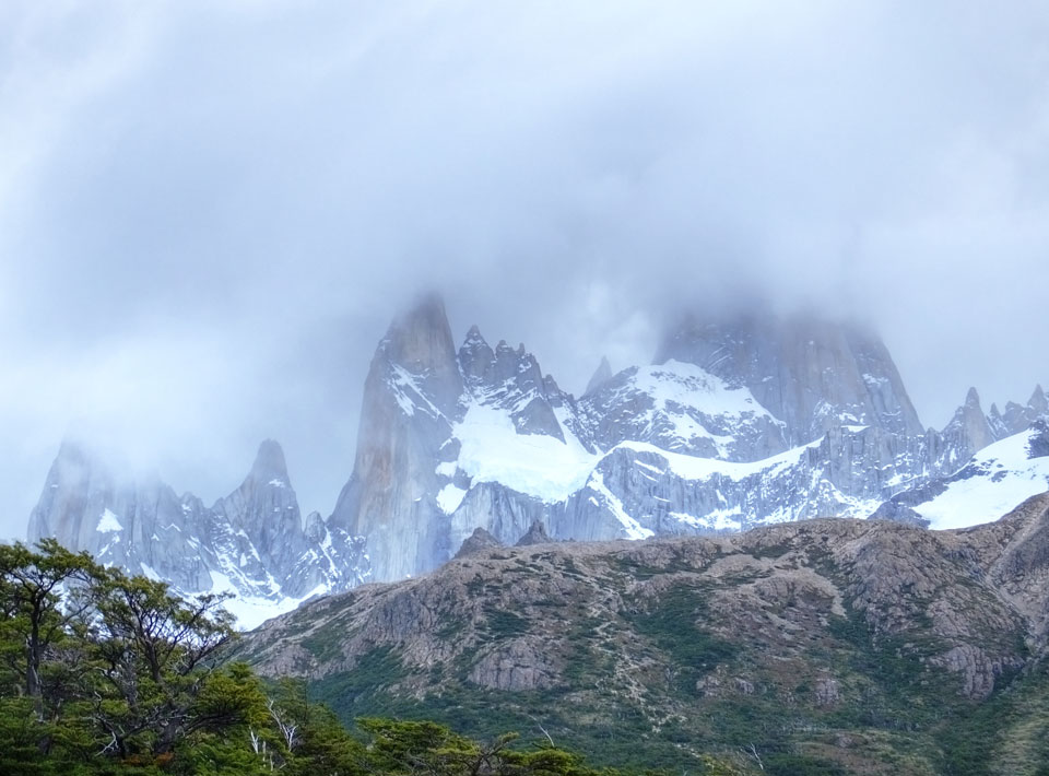 Nach unten ging’s auch OK, langsam aber sicher. Die Strecke zurück kannte ich, nur ging ich eine Alternativ-Route zum Mirador Fitz Roy. Da Sah ich dann nach ein paar Stunden doch noch den Berg. Tja, 2 Stunden später wäre vielleicht doch noch ein nettes Photo herausgekommen aber so ist das mit dem Wetter.