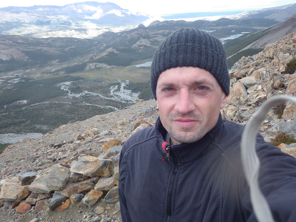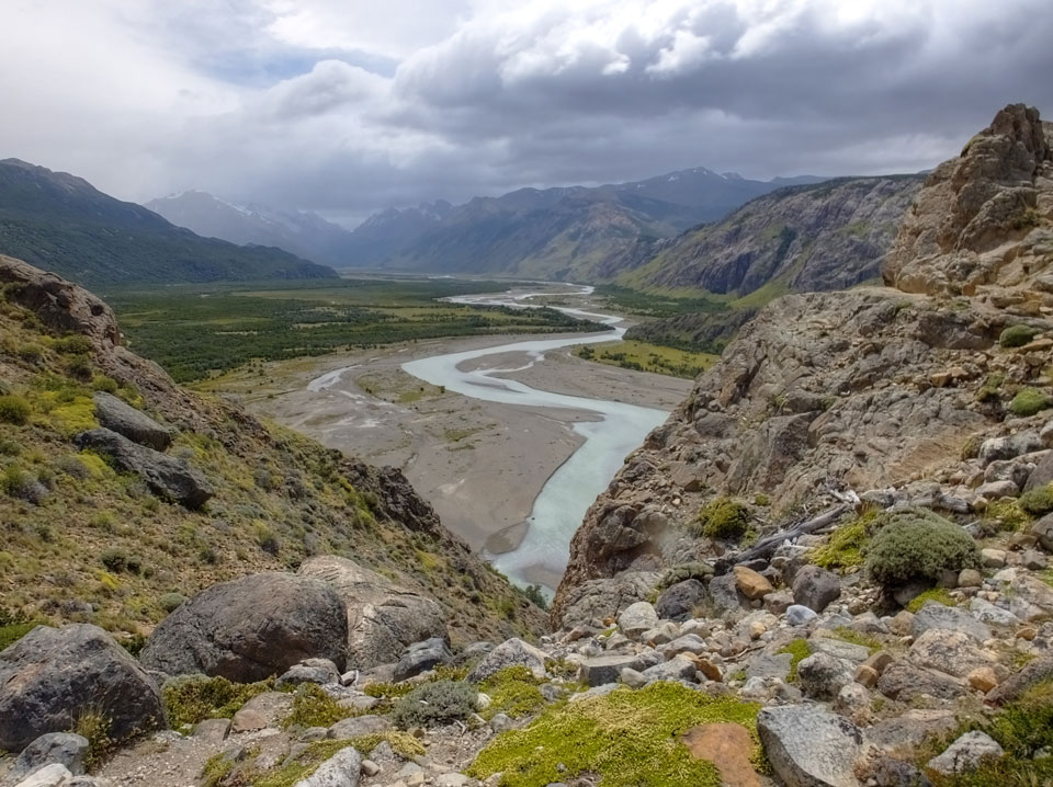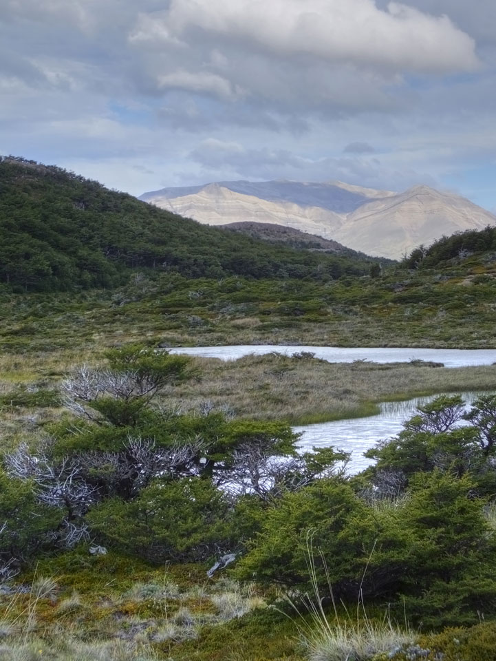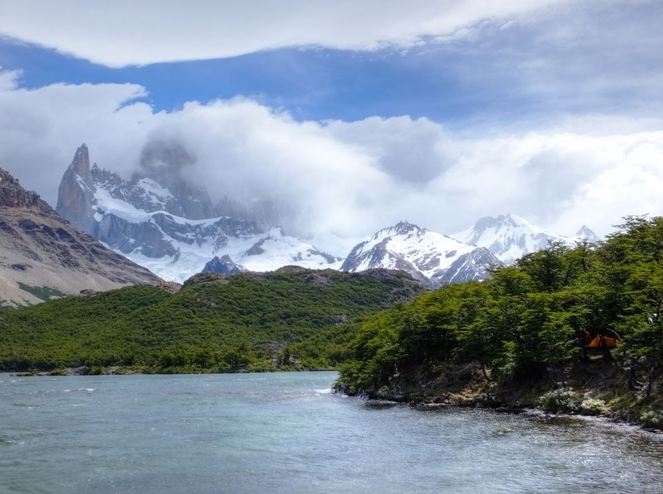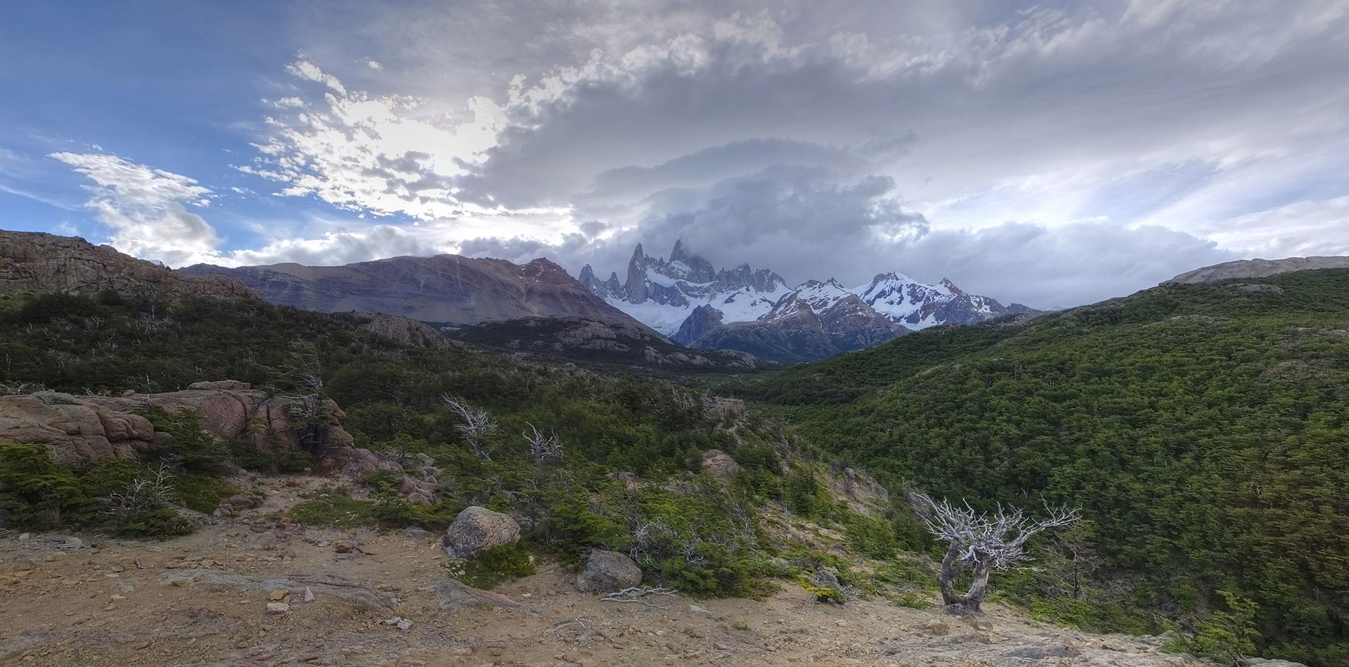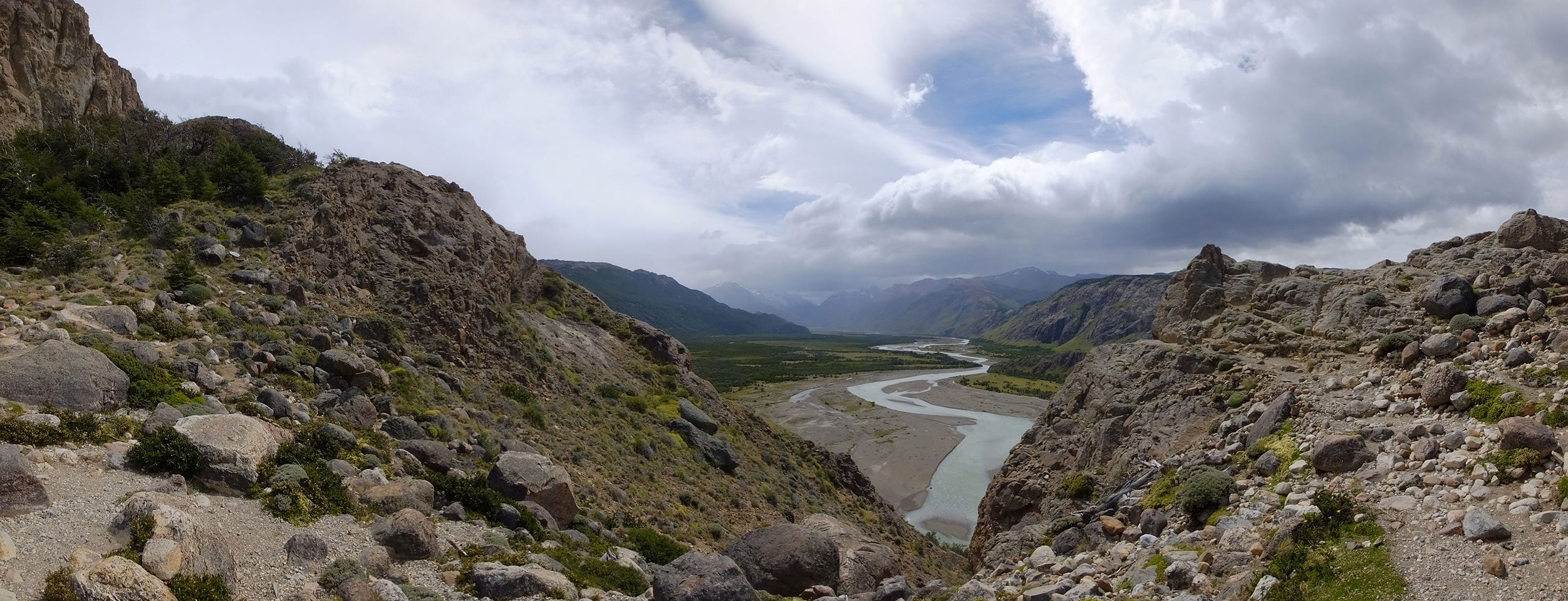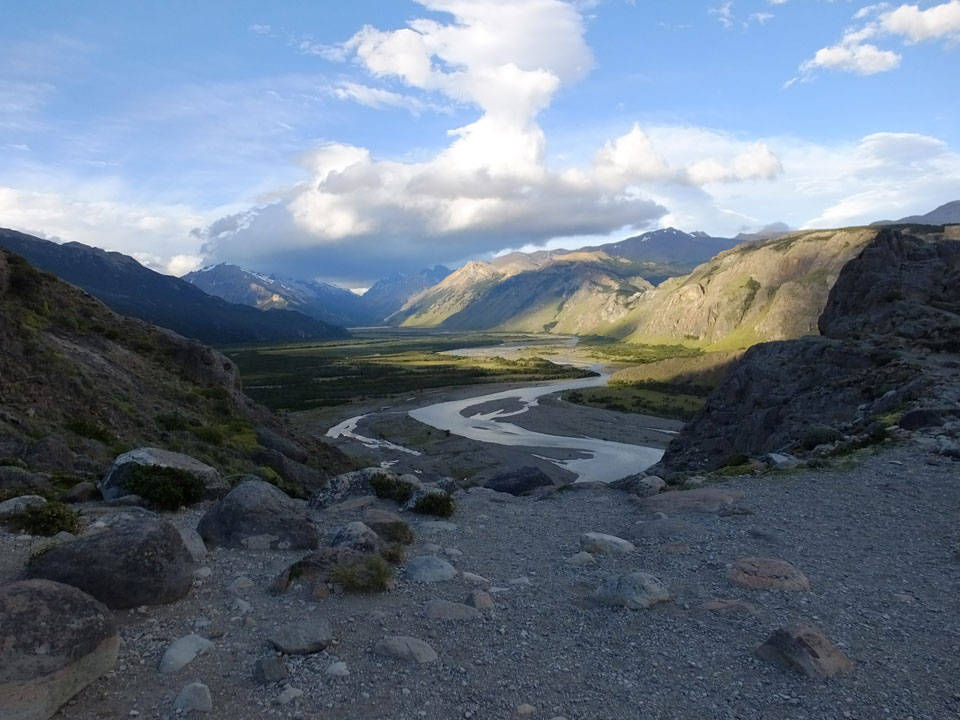 Nach unten ging’s auch OK, langsam aber sicher. Die Strecke zurück kannte ich, nur ging ich eine Alternativ-Route zum Mirador Fitz Roy. Da Sah ich dann nach ein paar Stunden doch noch den Berg. Tja, 2 Stunden später wäre vielleicht doch noch ein nettes Photo herausgekommen aber so ist das mit dem Wetter.