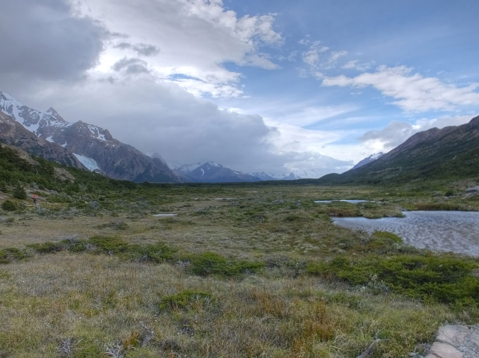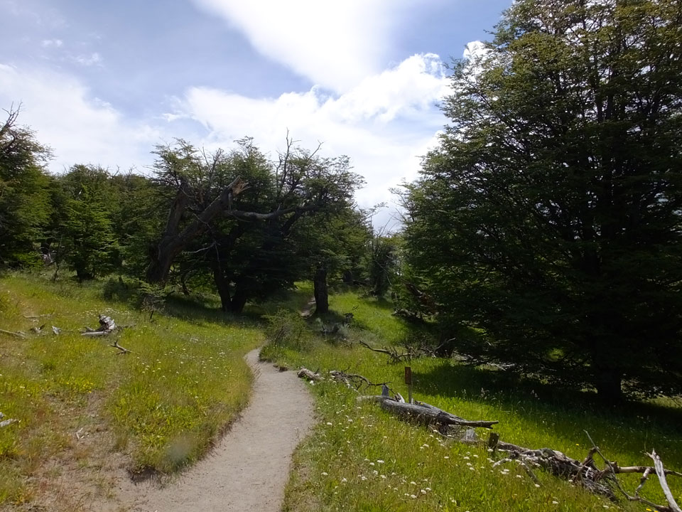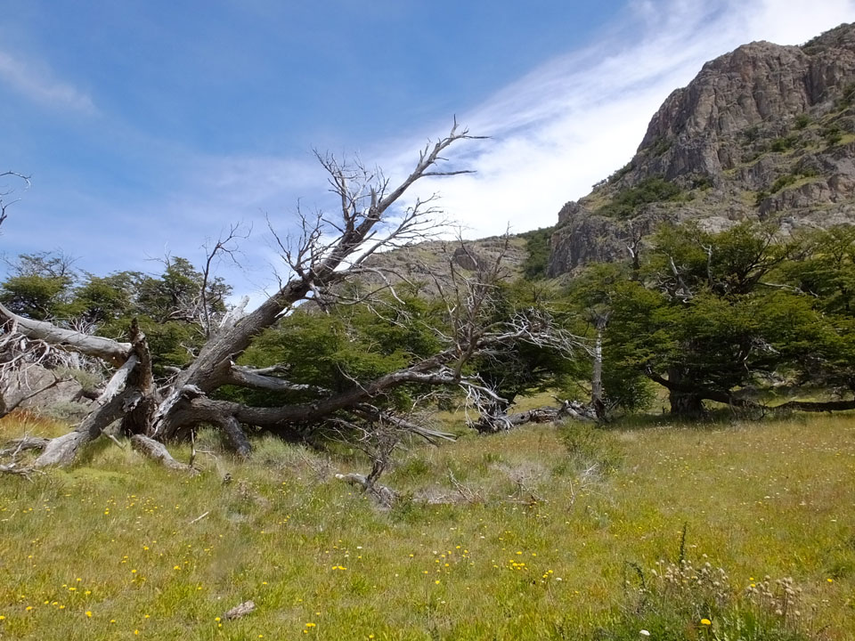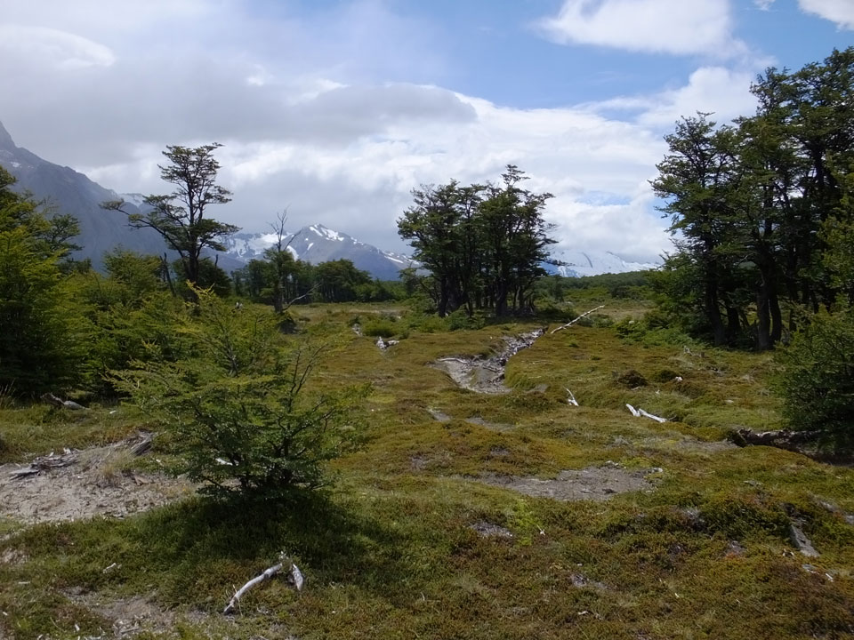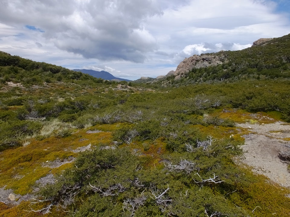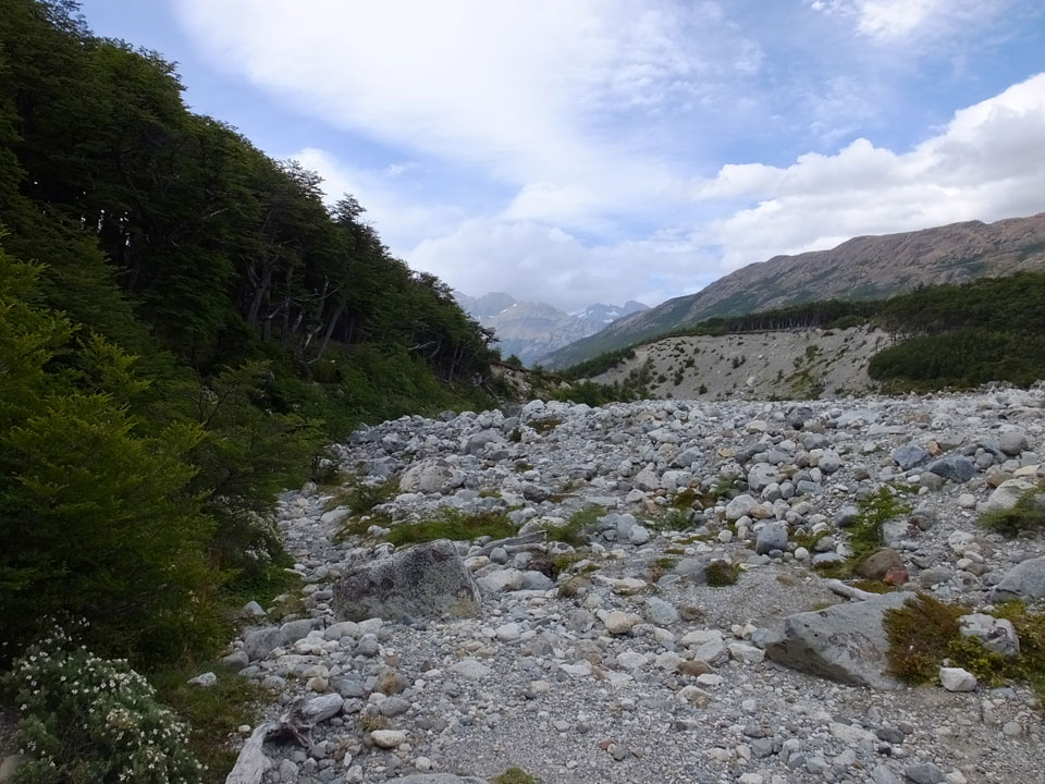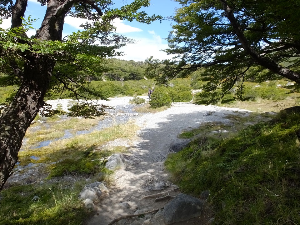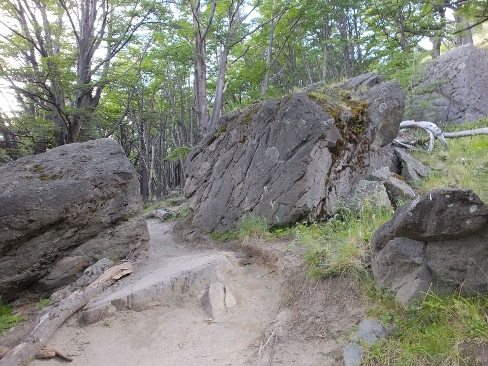 Nach dem Campingplatz Poincenot dann war ich fand am Aufstieg. Nur gut, dass ich hiernicht campe bei dem Wind. Vor dem Aufstieg, der letzten Stunde hoch zur Lagune, machte ich eine kleine Pause. Es nieselte inzwischen und Fitz Roy war heute komplett von Wolken umgeben. Da wird man oben auch nichts sehen aber nach nun 3h Wanderung machte ich auch die letzte Etappe.
