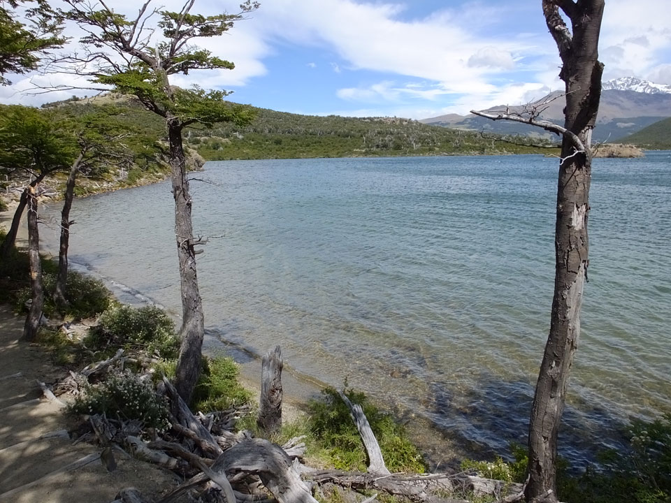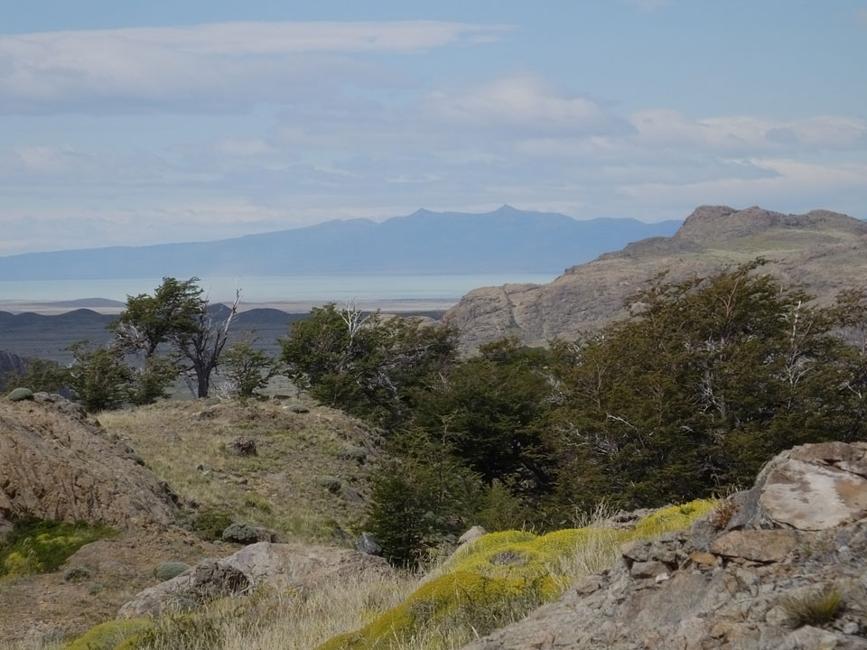 Zunächst lief ich raus aus dem Ort. Der erste Aussichtspunkt kam schnell und ich kam gut voran. Ein Guide erzhählte später von einem roten Haus, was ich in der Ferne sah. ich hörte mit und sah das erste Haus, was hier in der Gegend gebaut wurde – Anfangs des 20. Jahrhunderts. Für Perito Moreno hatte man Schweden, Dänen und Deustche hergelockt, die mit dem extremen Wetter besser zurecht kommen. Ein Däne blieb hier, baute das erste Haus und brachte später seine Freundin auch hierher. Ganz alleine also in der Landschaft, allerhand. Sein Sohn wurde der erste Ranger des Parks.