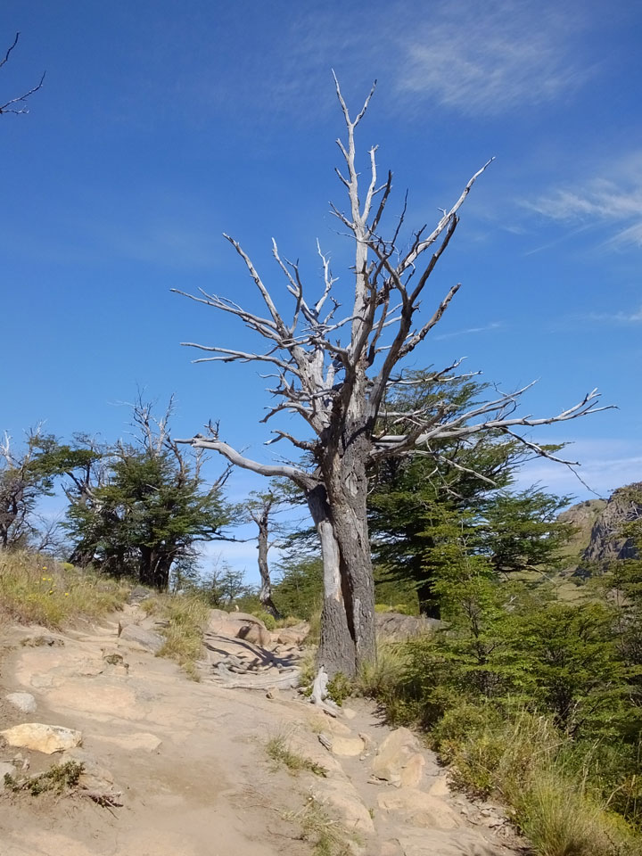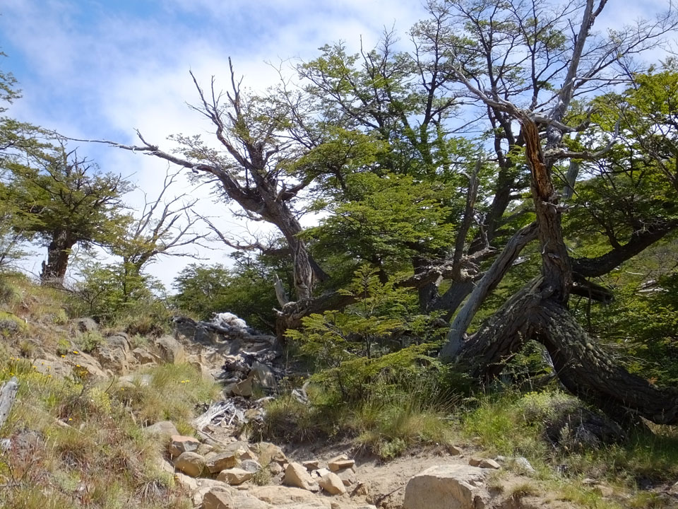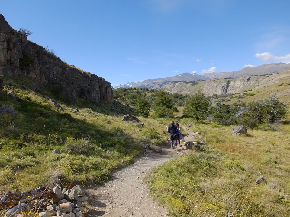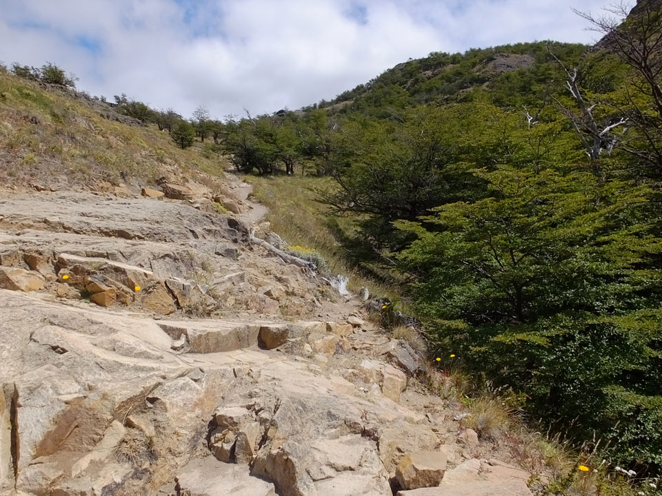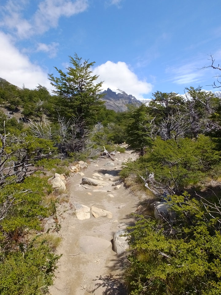 Ich fand den Start zum Laguna Torre Trek und der ging zunächst stark bergauf. Jetzt merkte ich meine Beine. Die vielen Kilometer stecken in den Knochen. Die Motivation für die 6 Stunden Wanderung sank etwas. Es musste aber weitergehen – und es ging weiter.
