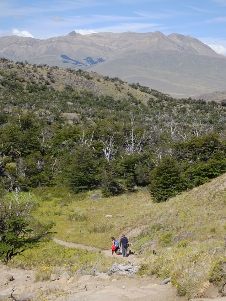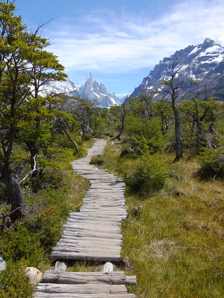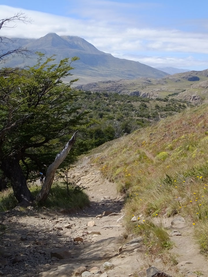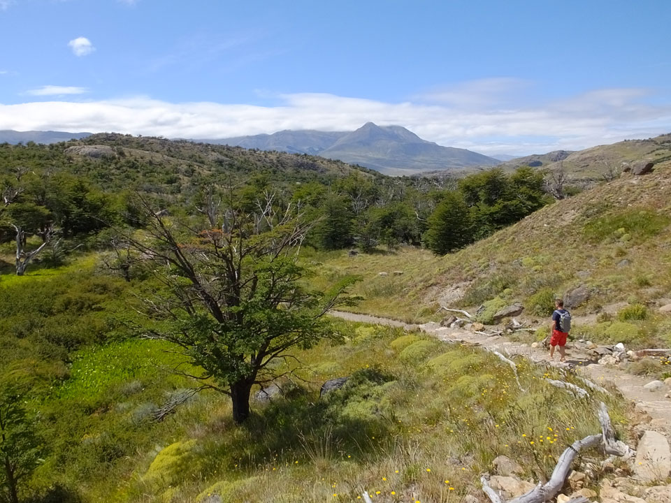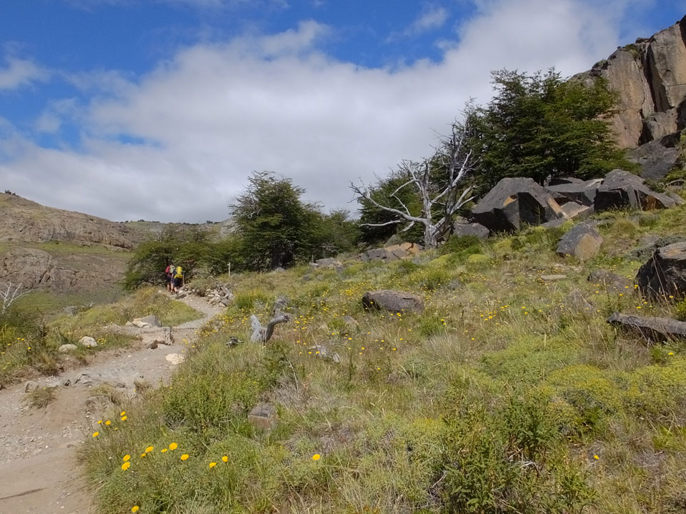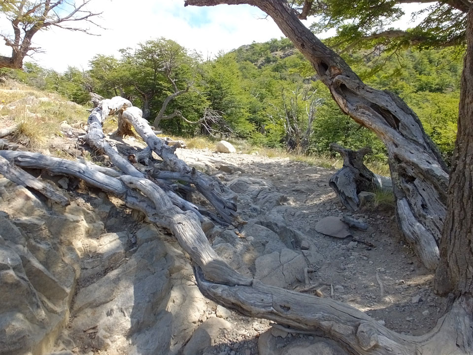 Ich fand den Start zum Laguna Torre Trek und der ging zunächst stark bergauf. Jetzt merkte ich meine Beine. Die vielen Kilometer stecken in den Knochen. Die Motivation für die 6 Stunden Wanderung sank etwas. Es musste aber weitergehen – und es ging weiter.