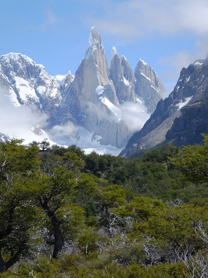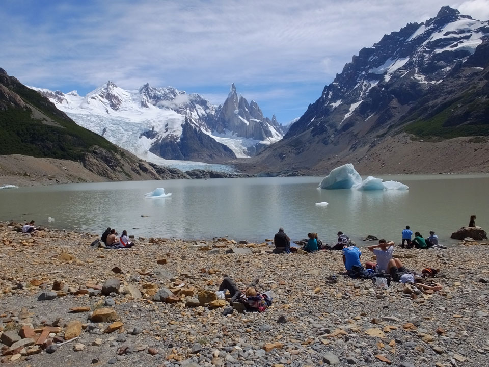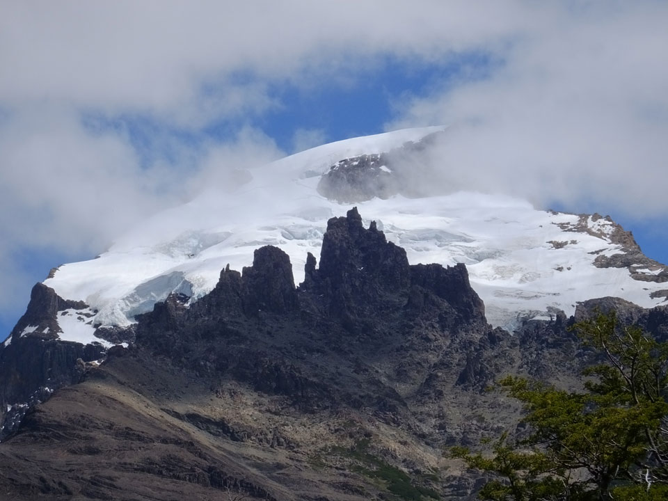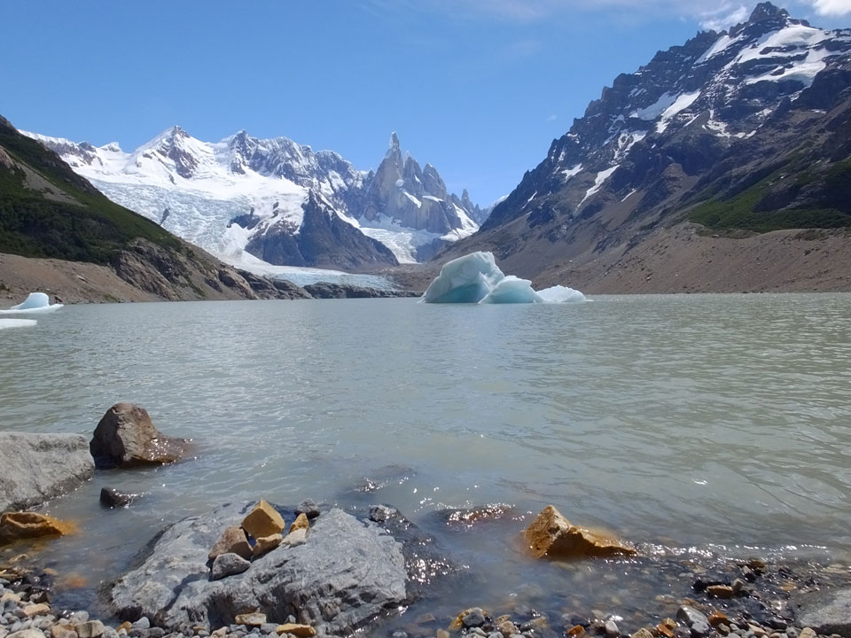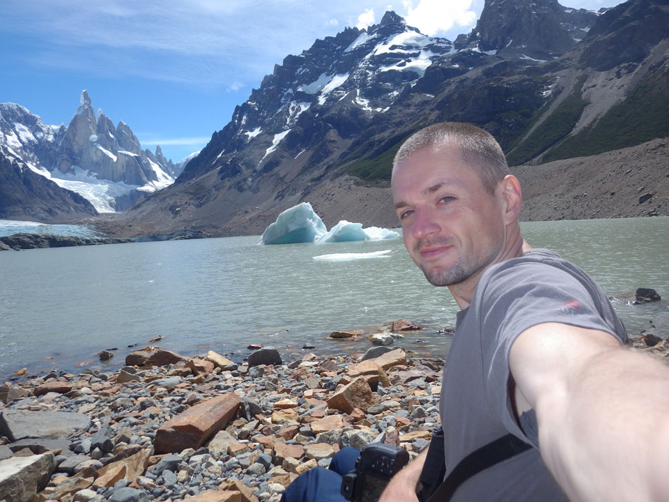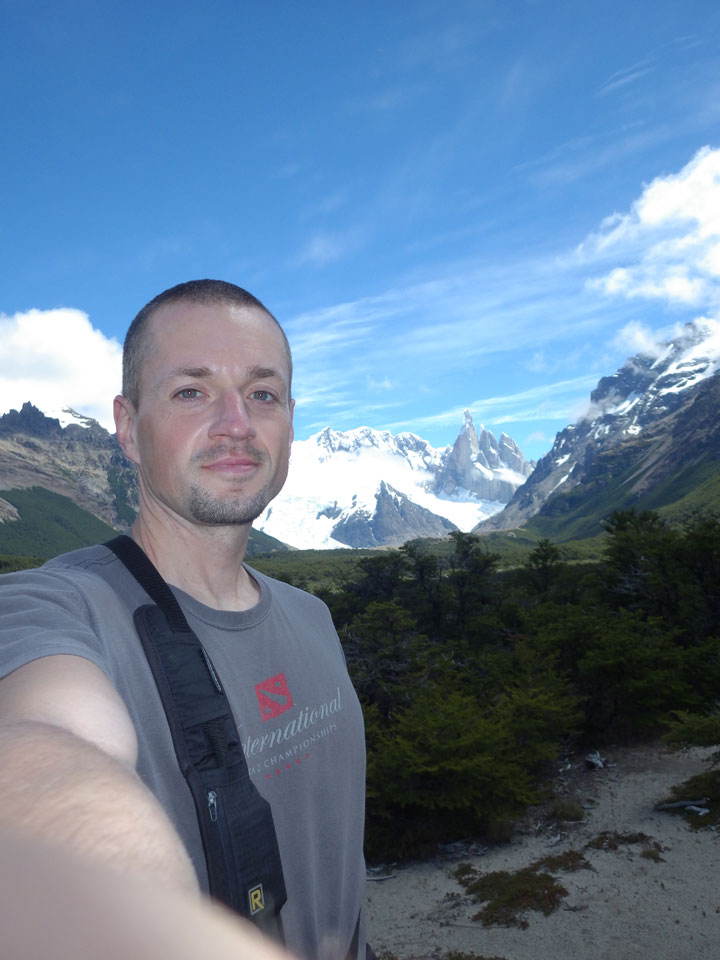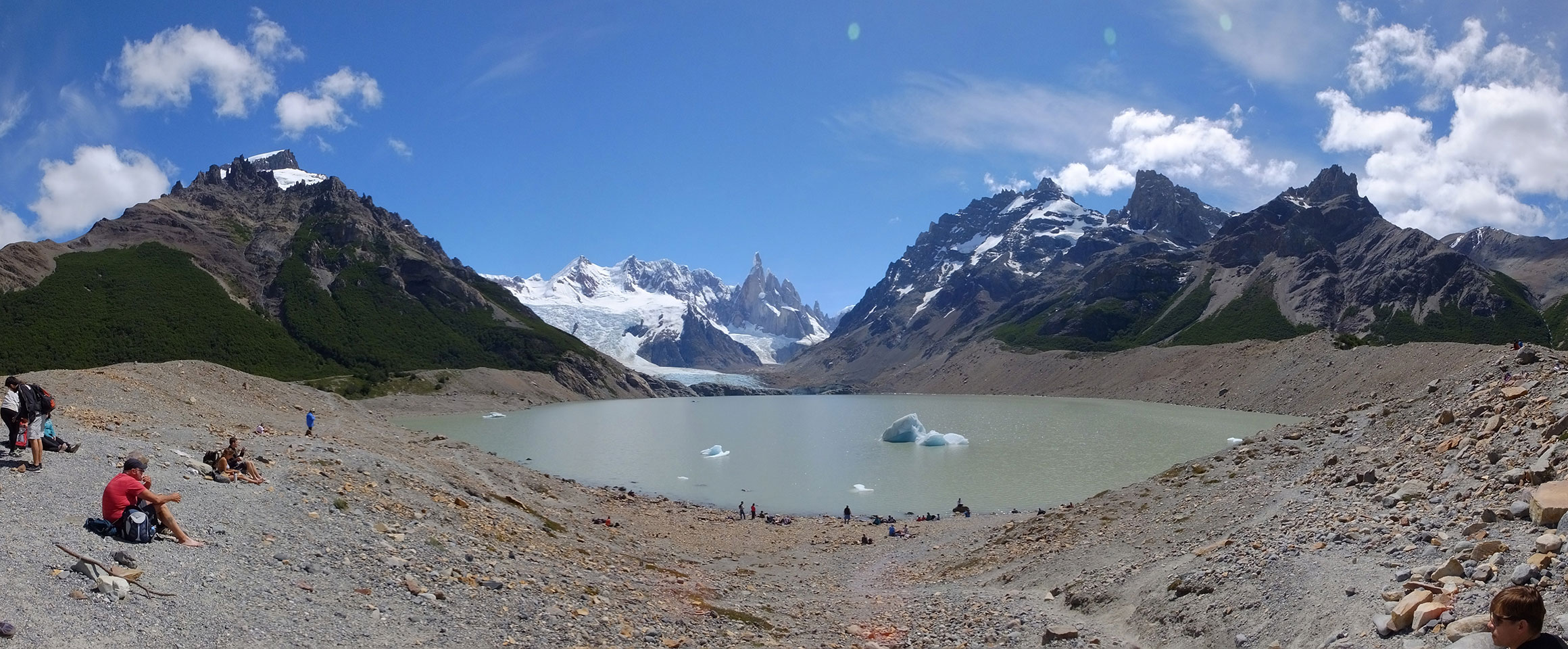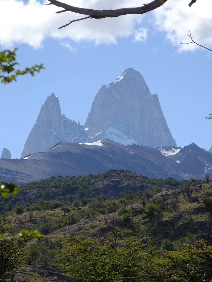 Nach einer Stunde an einem Aussichtspunkt sah ich ein Loch in der Wolkendecke. Es sollte aber aufklaren. Das Wetter war super und wurde immer besser. Klare Sicht auf Cerro Torre schließlich und nach 3 Stunden, wie geplant an der Lagune.