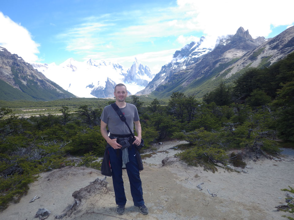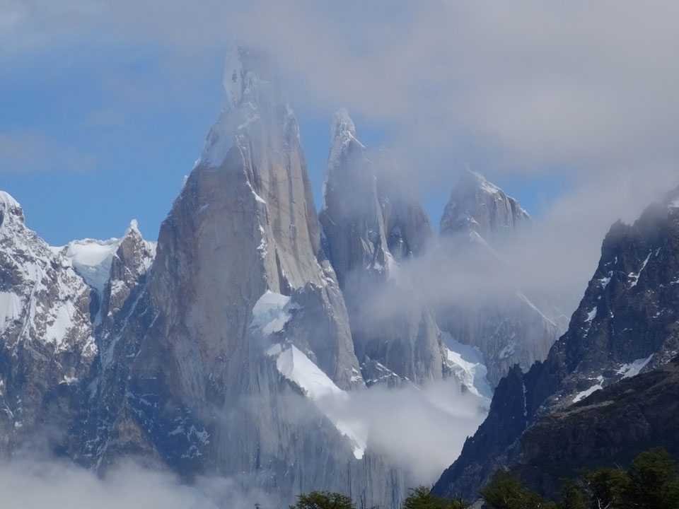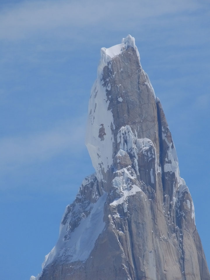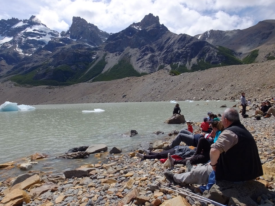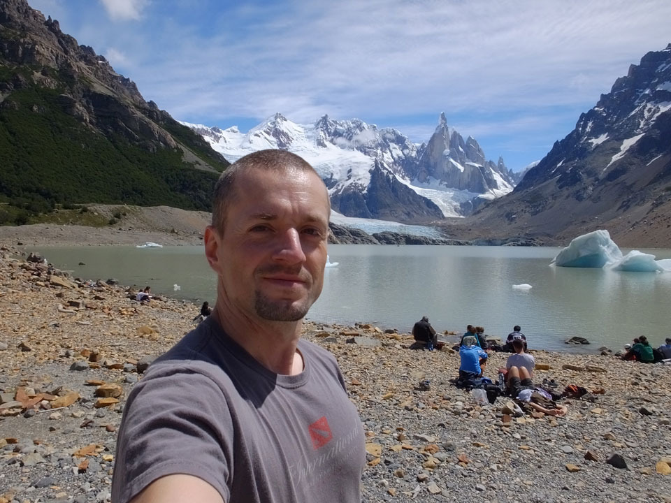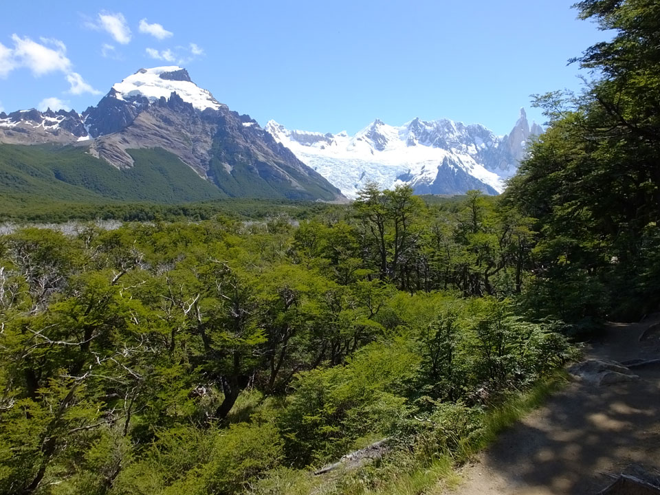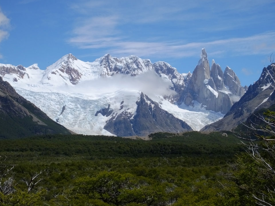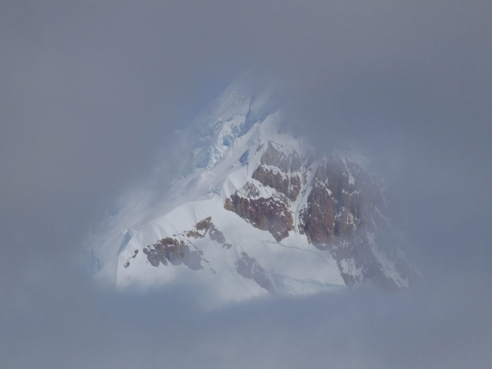 Nach einer Stunde an einem Aussichtspunkt sah ich ein Loch in der Wolkendecke. Es sollte aber aufklaren. Das Wetter war super und wurde immer besser. Klare Sicht auf Cerro Torre schließlich und nach 3 Stunden, wie geplant an der Lagune.