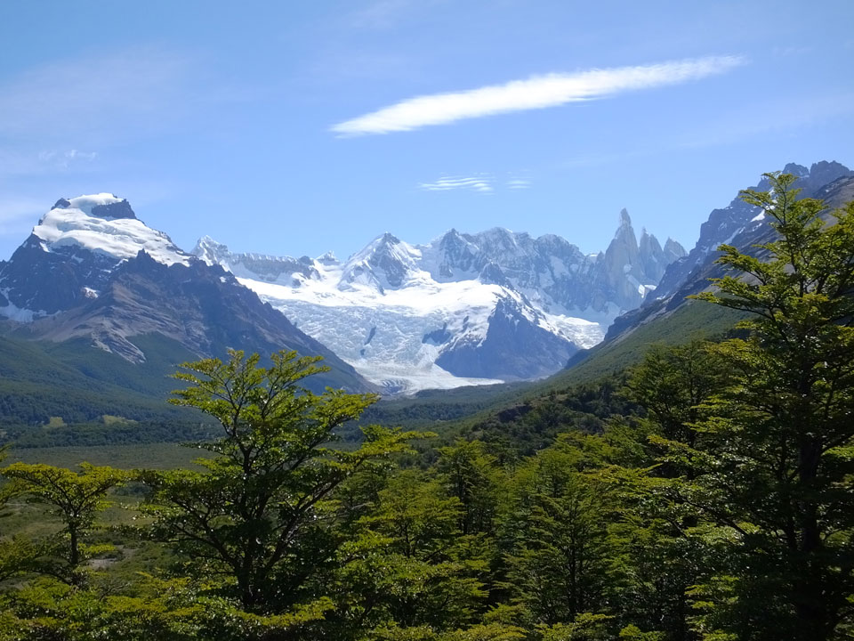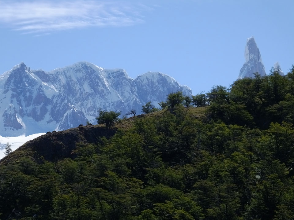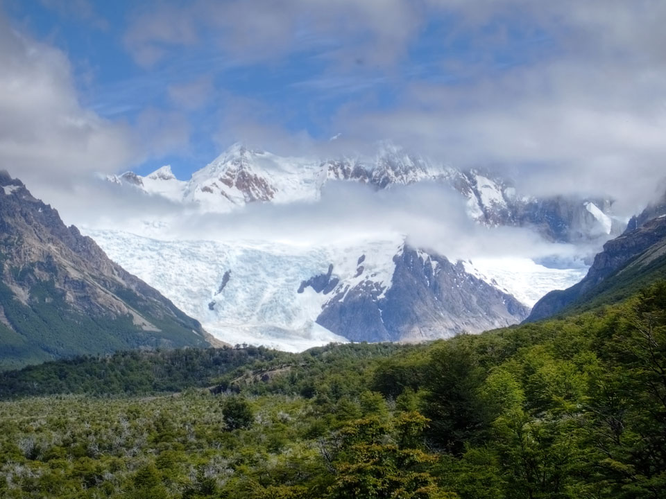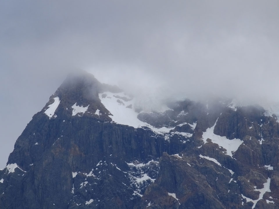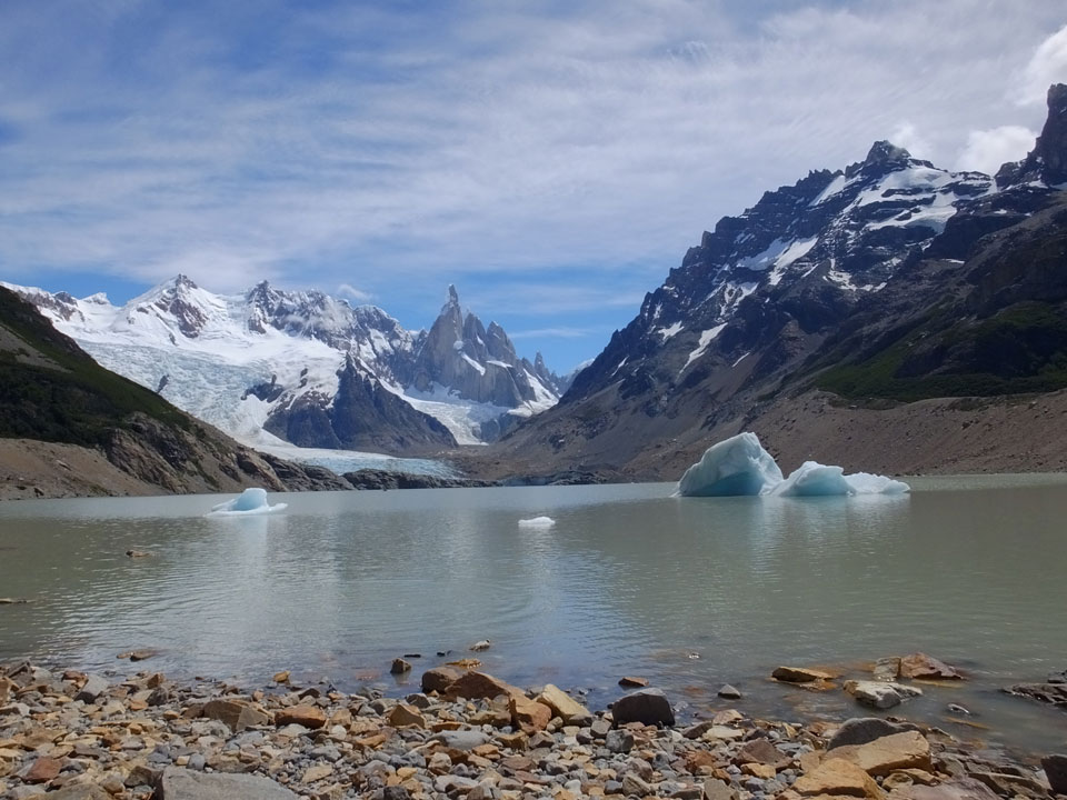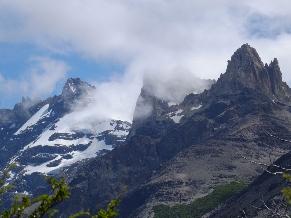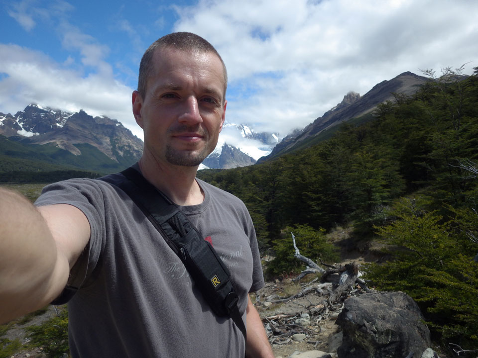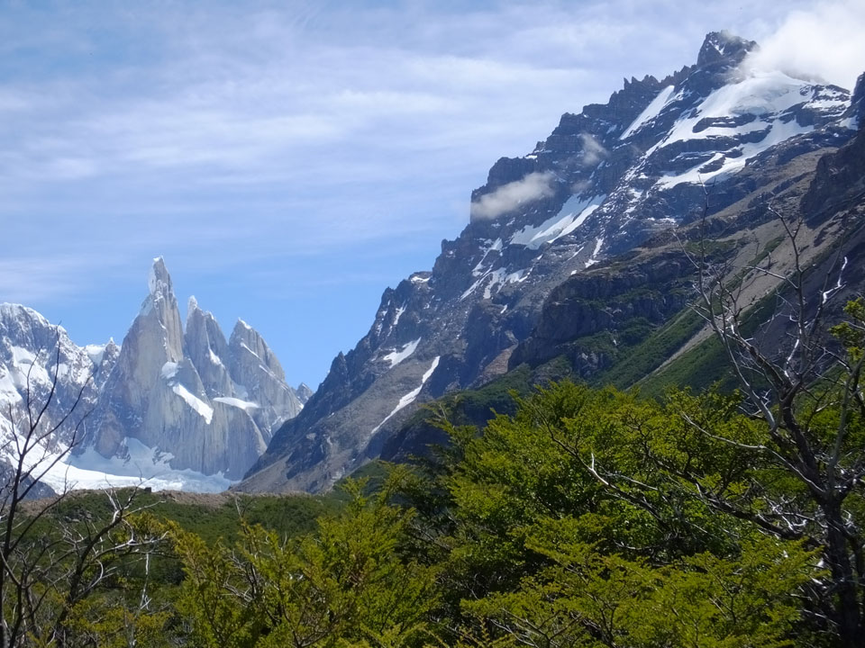 Nach einer Stunde an einem Aussichtspunkt sah ich ein Loch in der Wolkendecke. Es sollte aber aufklaren. Das Wetter war super und wurde immer besser. Klare Sicht auf Cerro Torre schließlich und nach 3 Stunden, wie geplant an der Lagune.