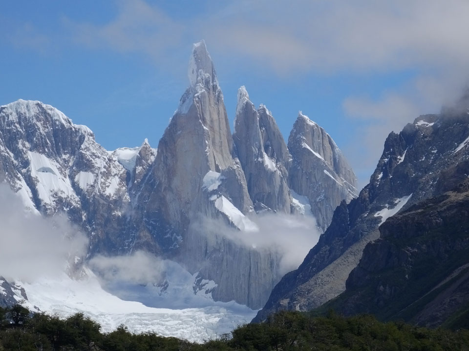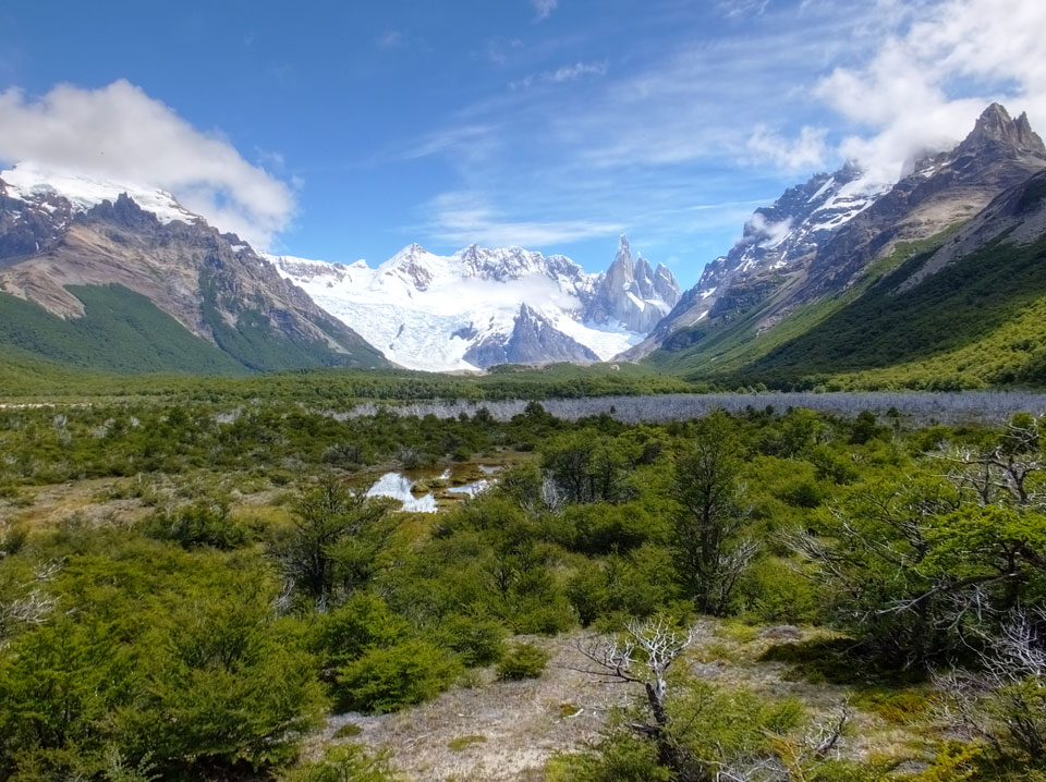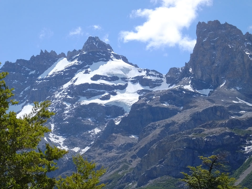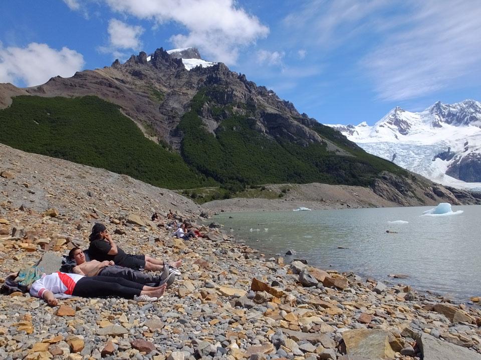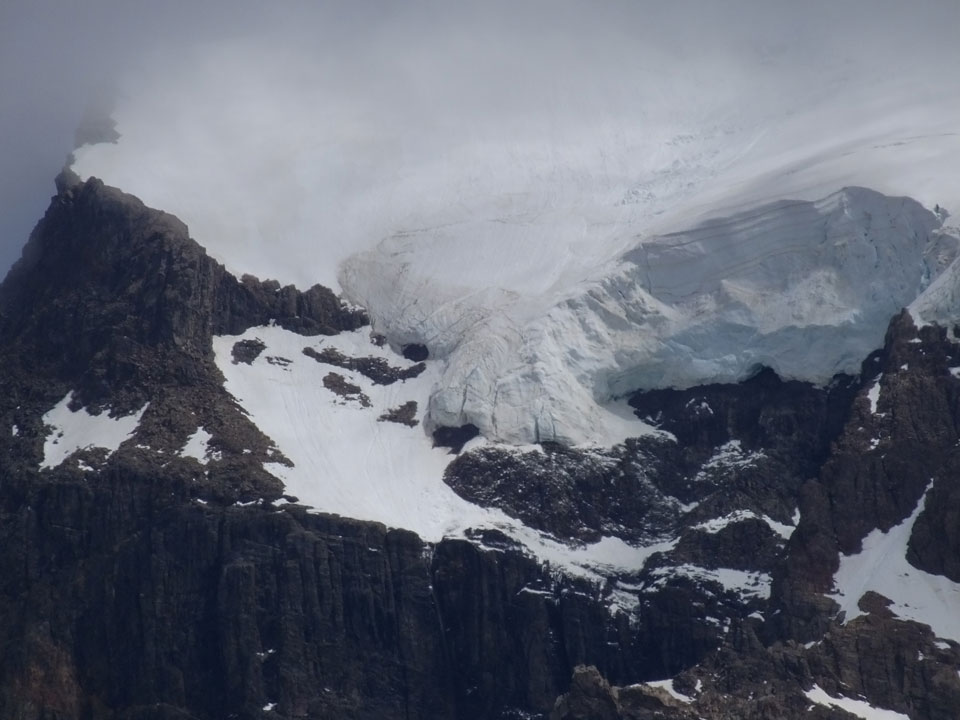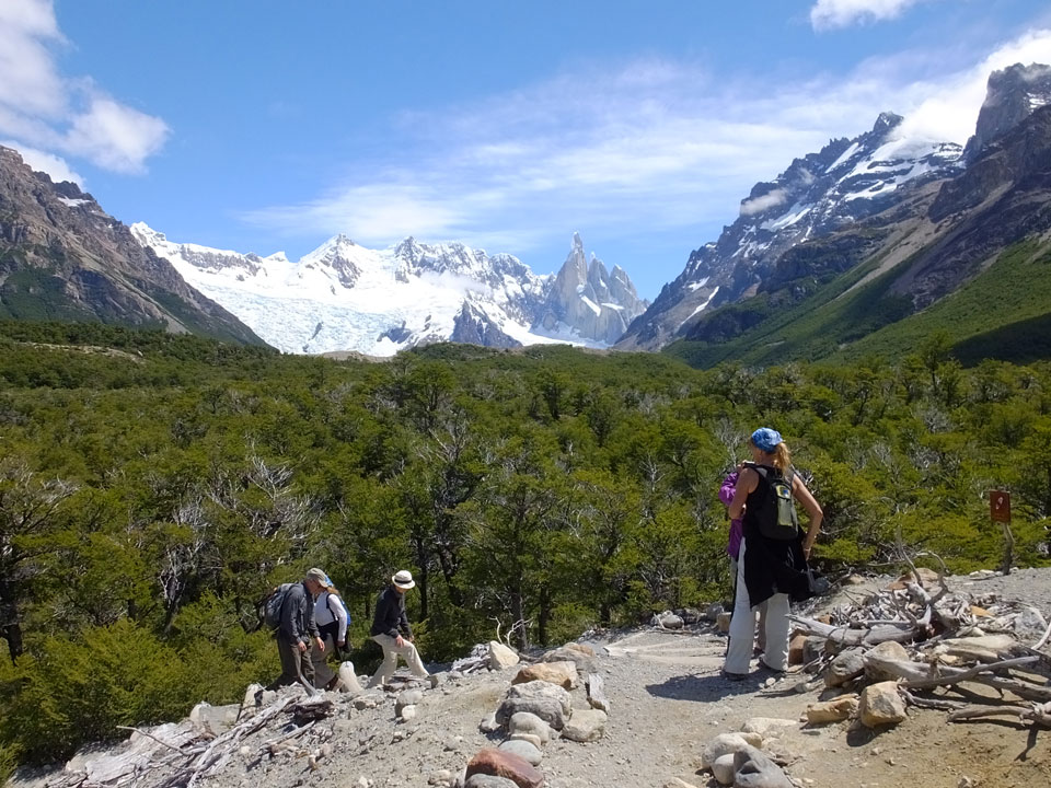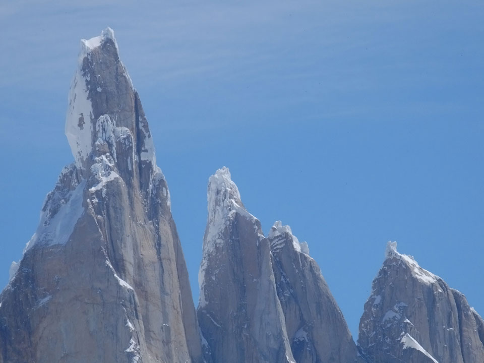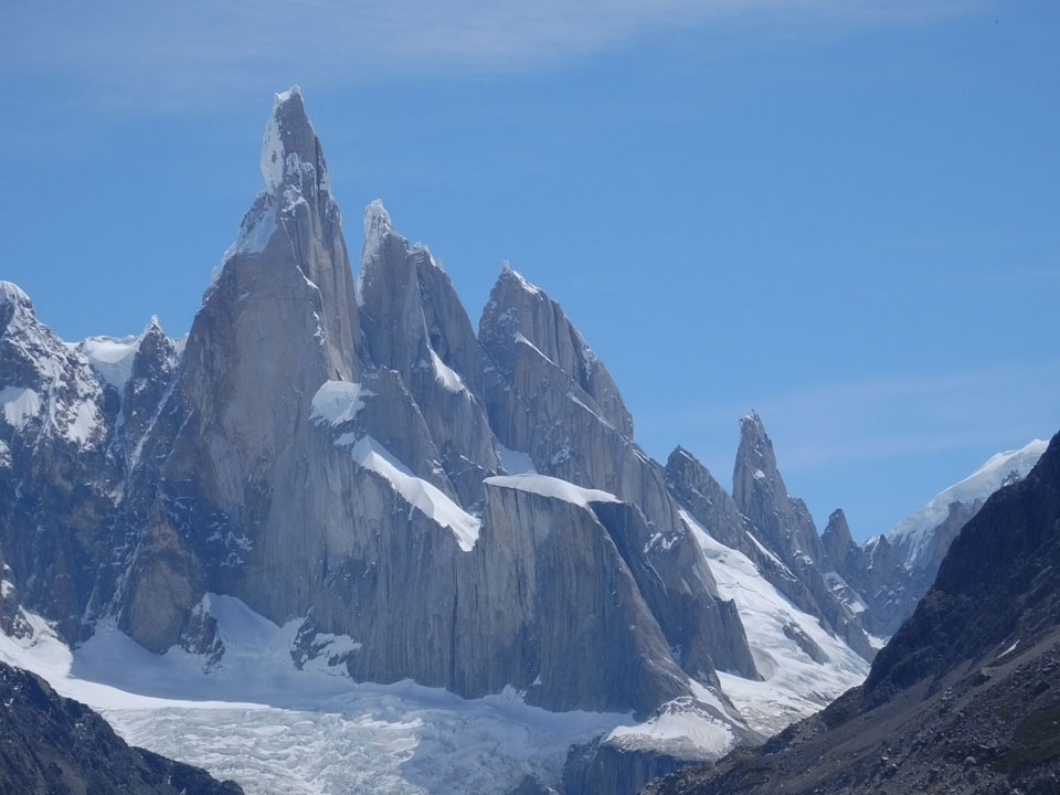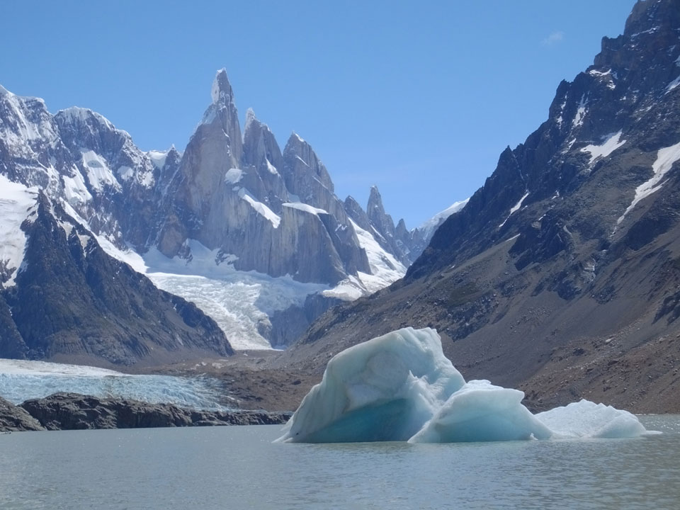 Nach einer Stunde an einem Aussichtspunkt sah ich ein Loch in der Wolkendecke. Es sollte aber aufklaren. Das Wetter war super und wurde immer besser. Klare Sicht auf Cerro Torre schließlich und nach 3 Stunden, wie geplant an der Lagune.