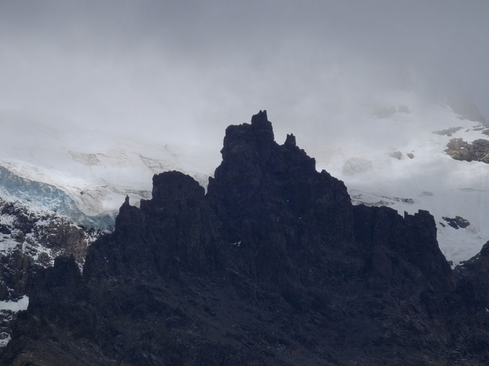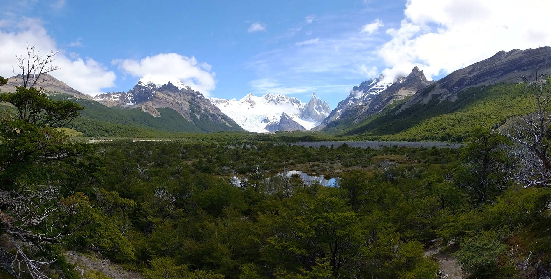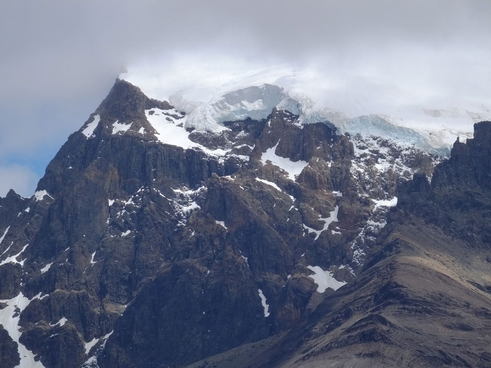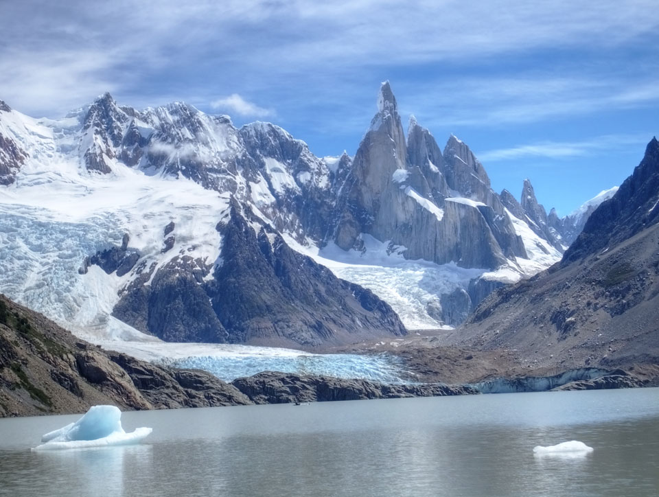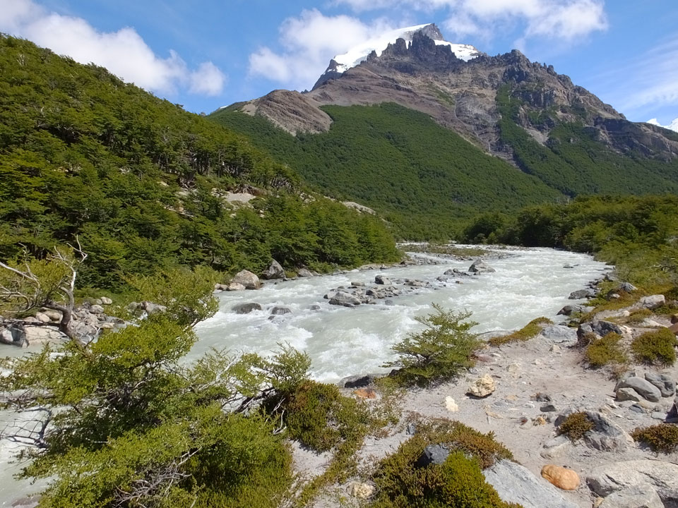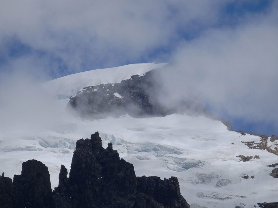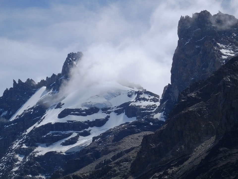 Nach einer Stunde an einem Aussichtspunkt sah ich ein Loch in der Wolkendecke. Es sollte aber aufklaren. Das Wetter war super und wurde immer besser. Klare Sicht auf Cerro Torre schließlich und nach 3 Stunden, wie geplant an der Lagune.