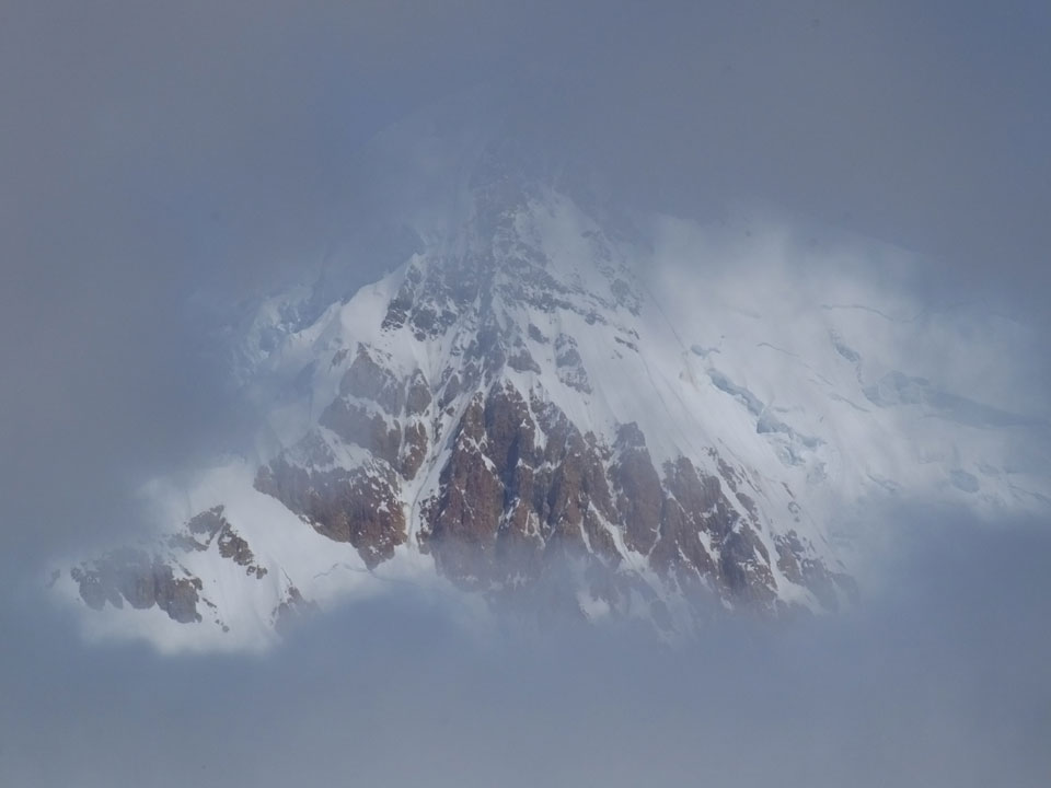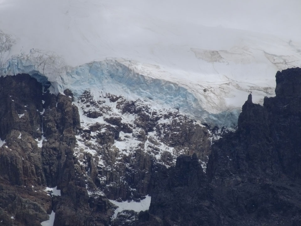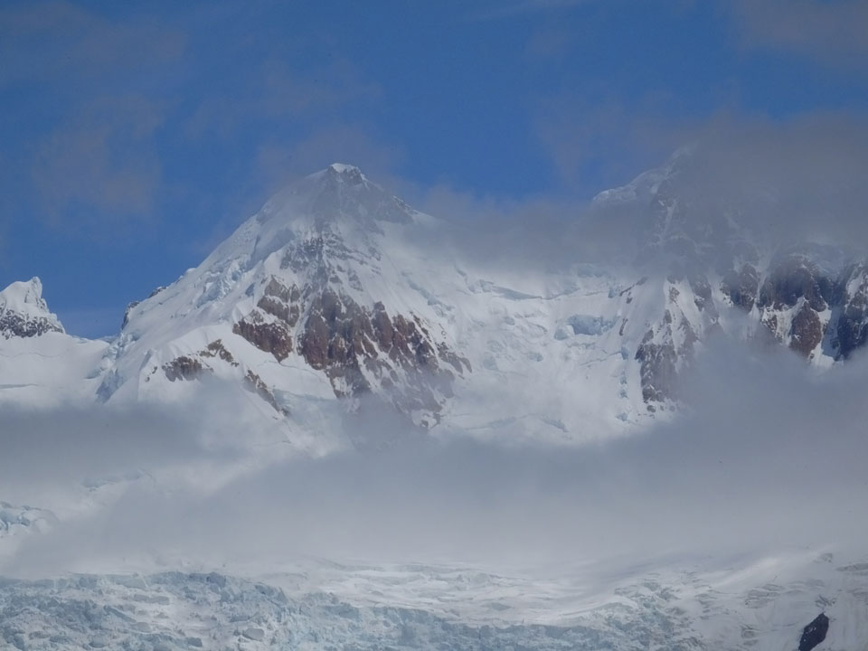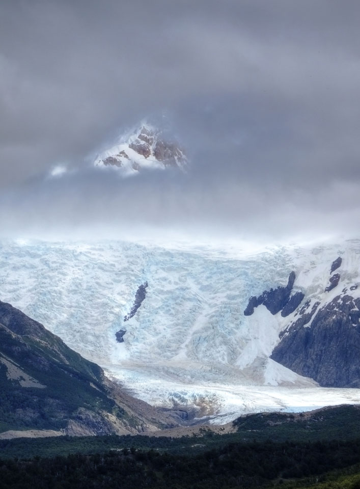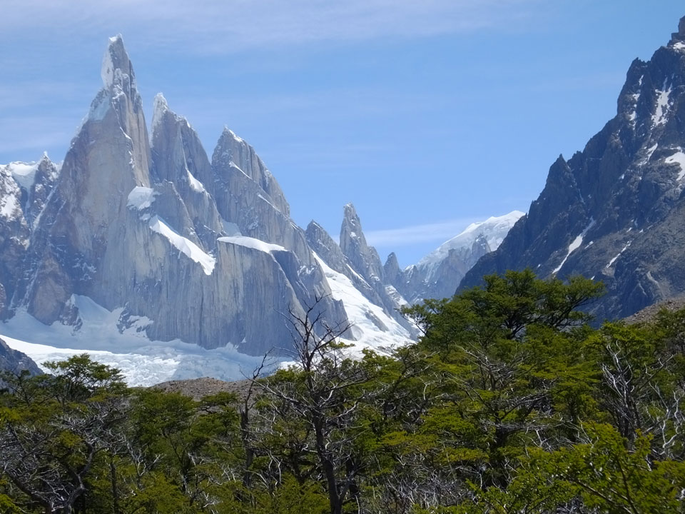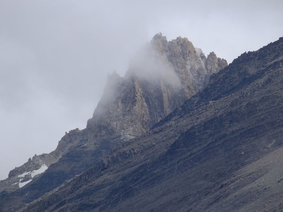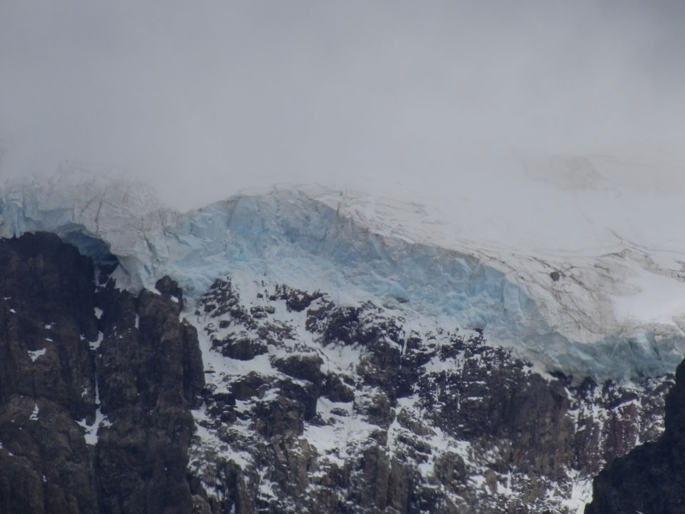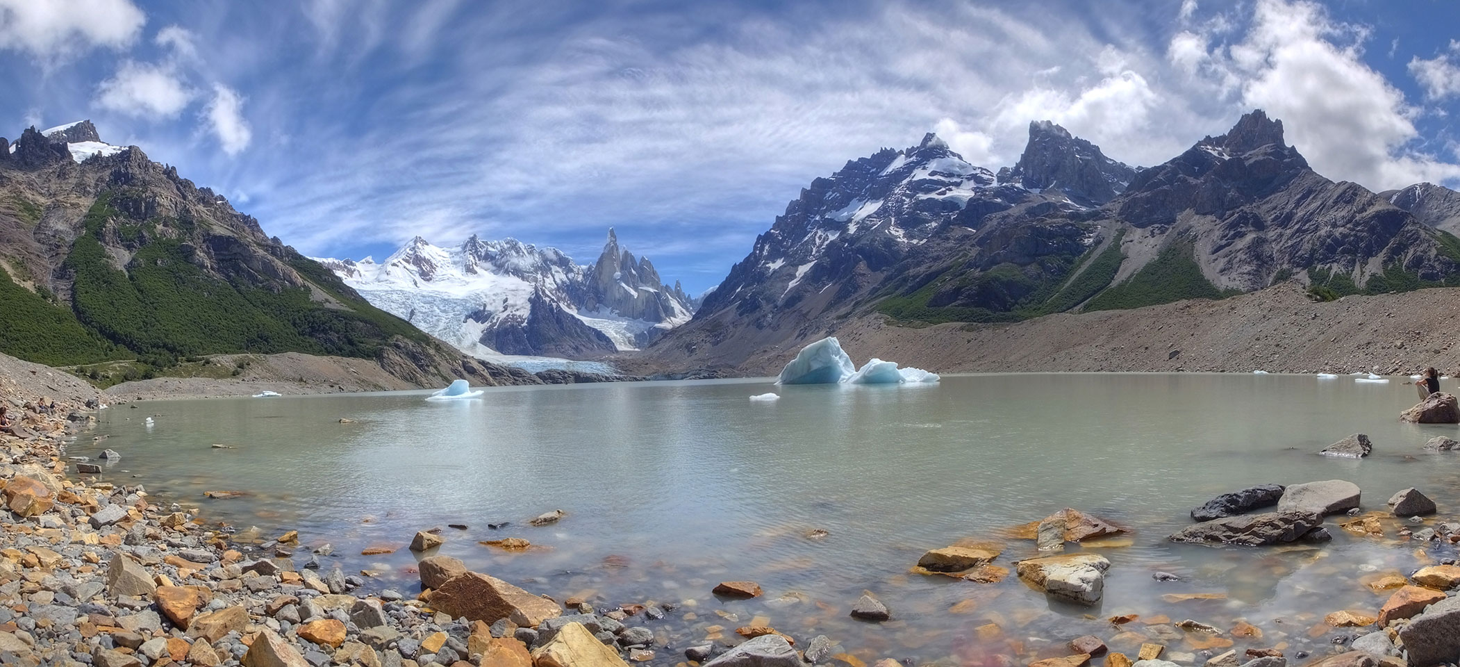 Nach einer Stunde an einem Aussichtspunkt sah ich ein Loch in der Wolkendecke. Es sollte aber aufklaren. Das Wetter war super und wurde immer besser. Klare Sicht auf Cerro Torre schließlich und nach 3 Stunden, wie geplant an der Lagune.