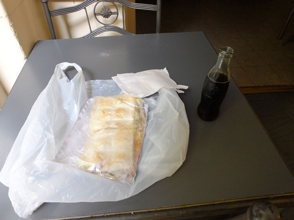 Mittags dann nochmals ein Imbiss von nebenan – ein Steak Sandwich mit Coke (ARS 53), während ich auf die Abholung wartete. Der Peruaner war langsam auf dem Weg zum Flughafen Richtung Santiago. Zeitlich passte alles perfekt. Es ging ruck-zuck und dann kam die Tour auch.