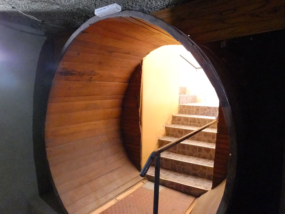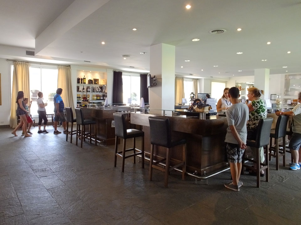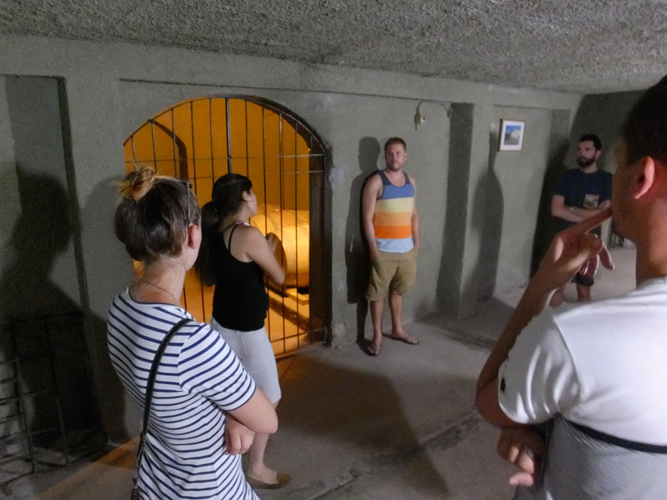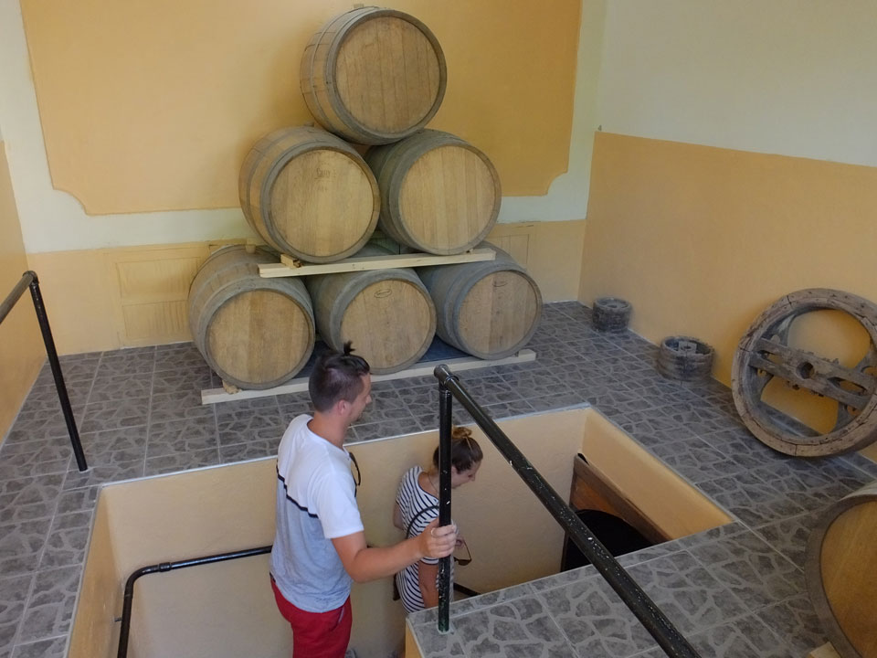 Als letztes kam eine kleine Winery dran. Alles überschaubar – um die 100 Jahre alt und selbst der Besitzer stand hinter dem Tresen. Dort konnten wir ganze 4 Weine probieren – ausschließlich rote. Der letzte war der Beste und so kauften dann viele Leute auch mehr da ein als in der ersten industriellen Anlage. Hier war alles nett aber obwohl ein Premium Wein unter €10 nach inoffiziellem Kurs zu haben ist, kaufte ich nichts. Ich will nichts schleppen und selber trinken .. da gibt’s eben auch den kostenlosen Hostel-Wein, der mir gut schmeckt.