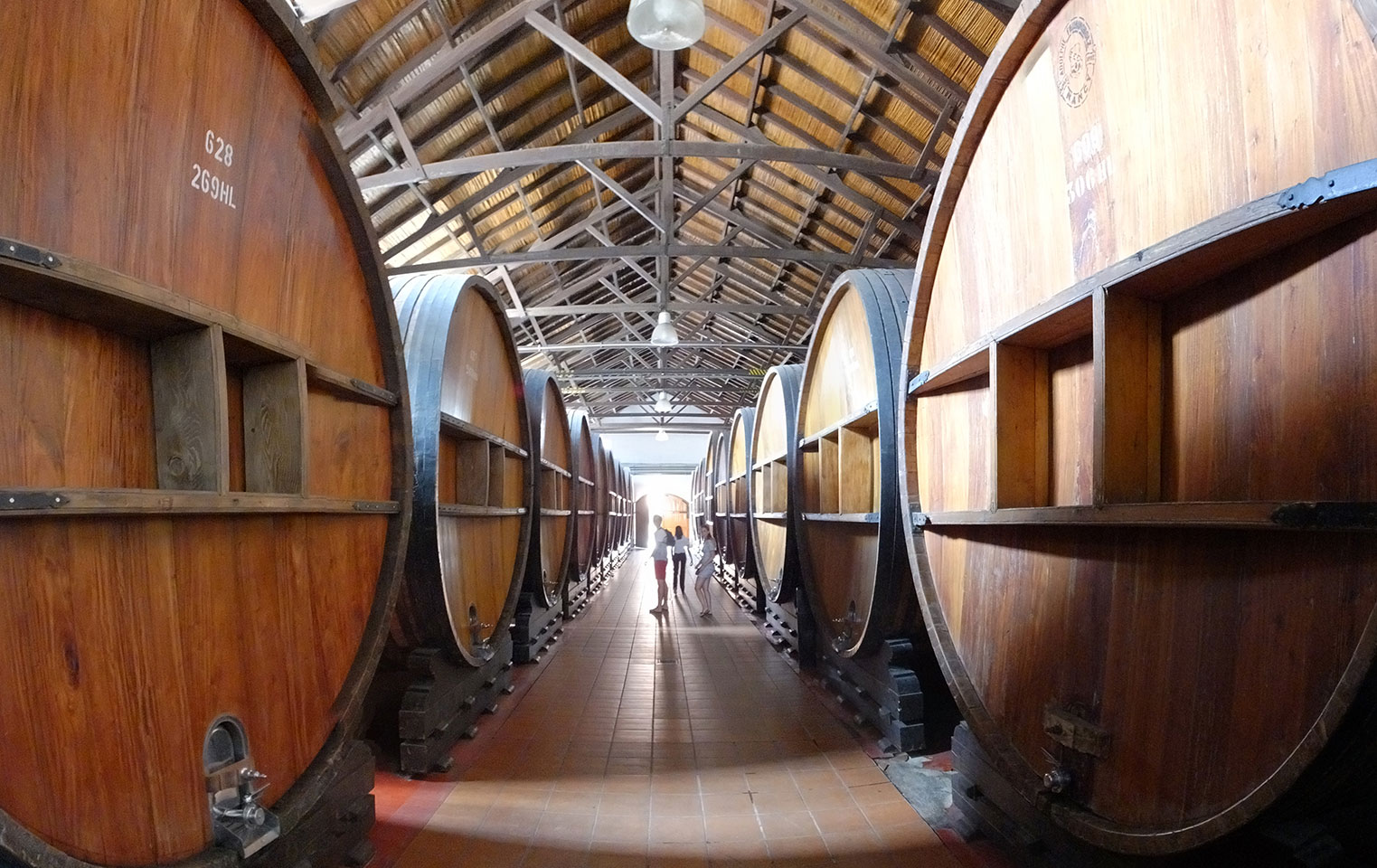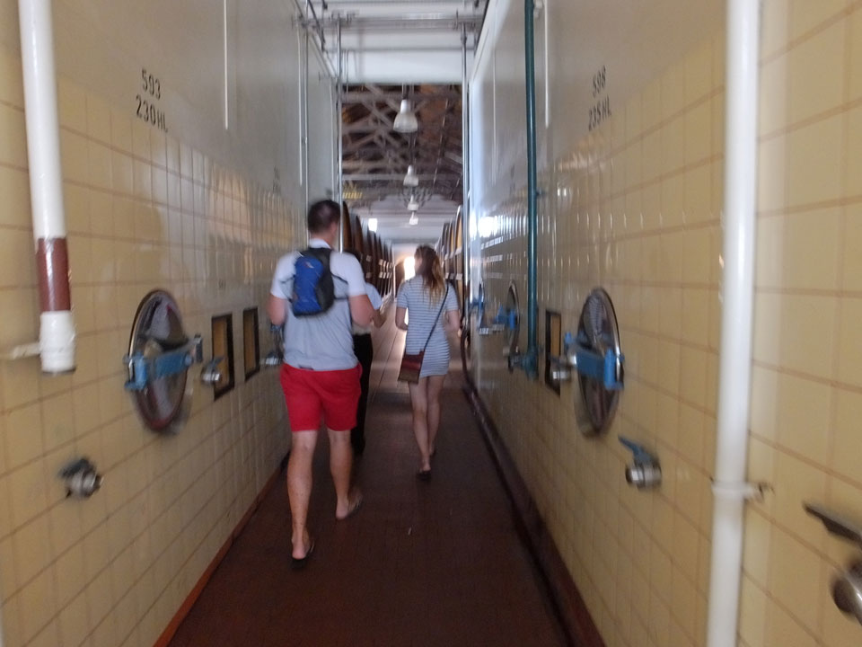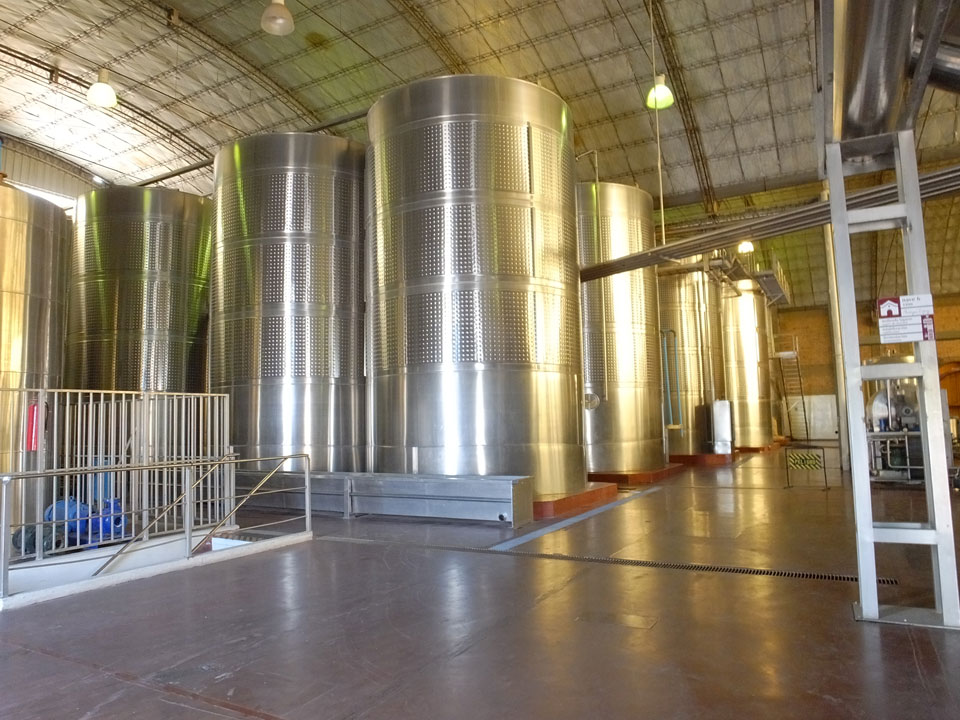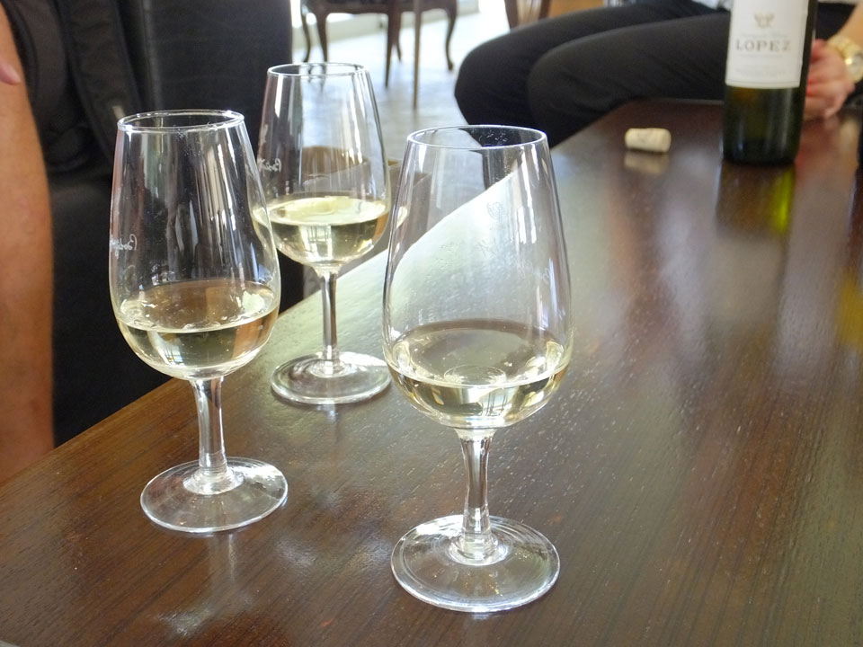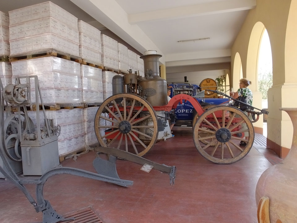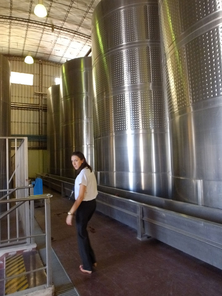 Nur ein australischen Paar als weitere Englsih-Speaker, der Rest aus Spnien und Brasilien. Die erste Winery war eine industrielle Anlage mit dem Namen Lopez. Die hatten dort moderne Technik und gigantische Fässer. Mal interessant zu sehen, wie das hier läuft. Die Produktion dort für den heimischen Markt. Die Weine waren dann auch nur soso – und nur zwei.