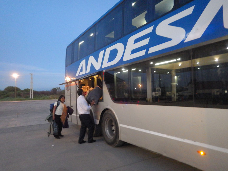 Früh halb 7 im Morgengrauen wurden alle Passiere nach Salta umgesattelt. Ich musste also auch raus – schlaftrunken wollte ich nichts vergessen. Der neue Bus dann hatte mehr Platz, ein paar hatten Cama-Sitze.