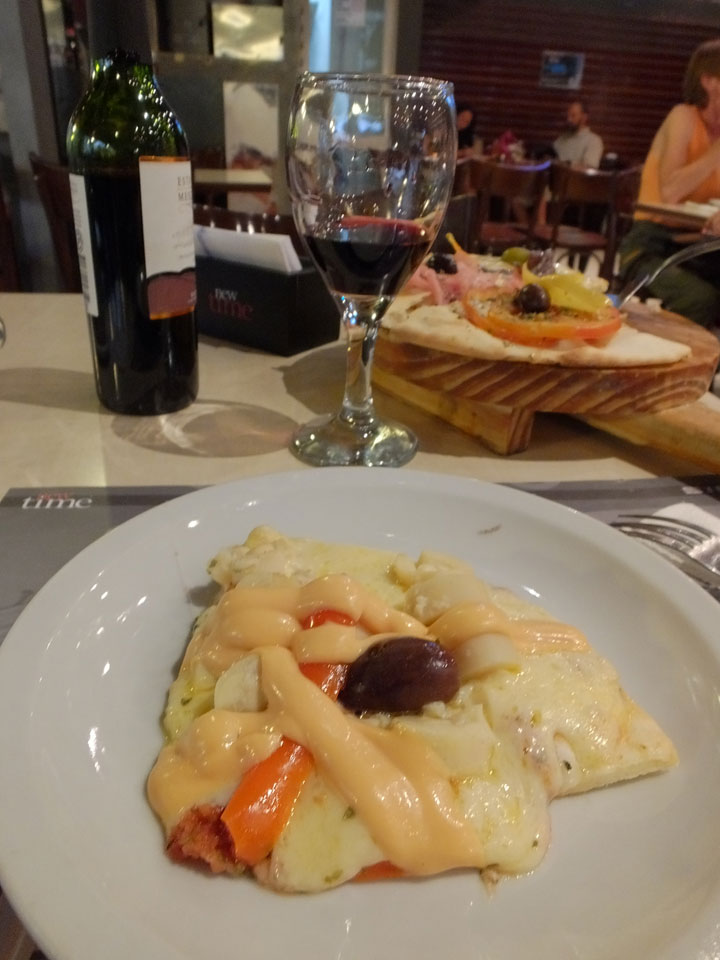 Als später anfing zu regnen, ging ich in ein Restaurant am Plaza und holte mir ’ne Pizza samt kleinem Wein. Die 375ml brachten mich ordentlich in Drehung, sodass ich langsam wieder zurück ging und den Rest des Abends happy war.