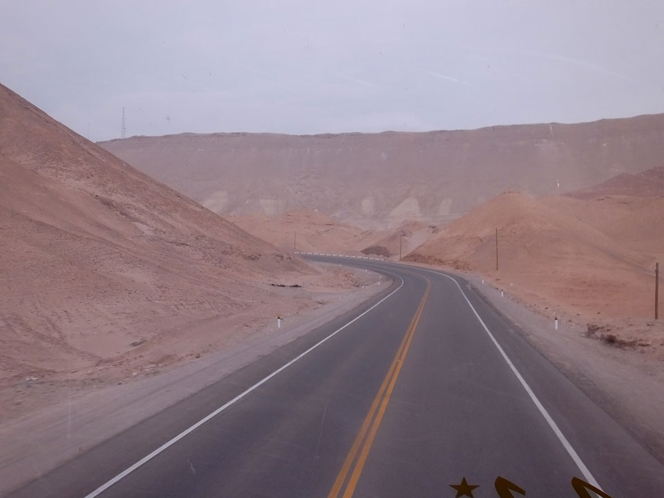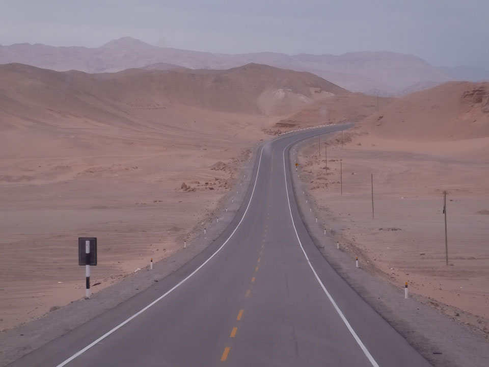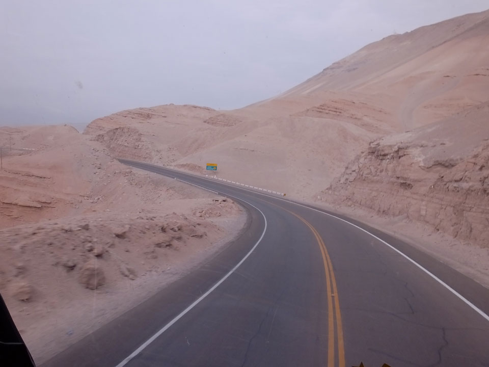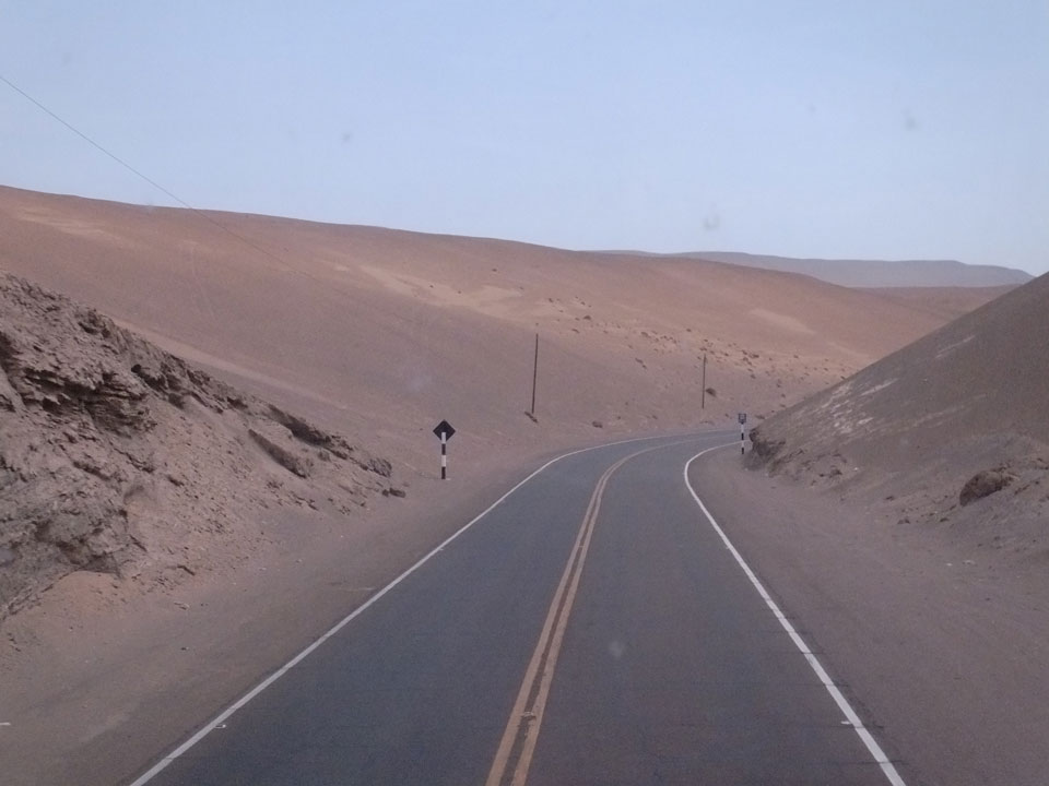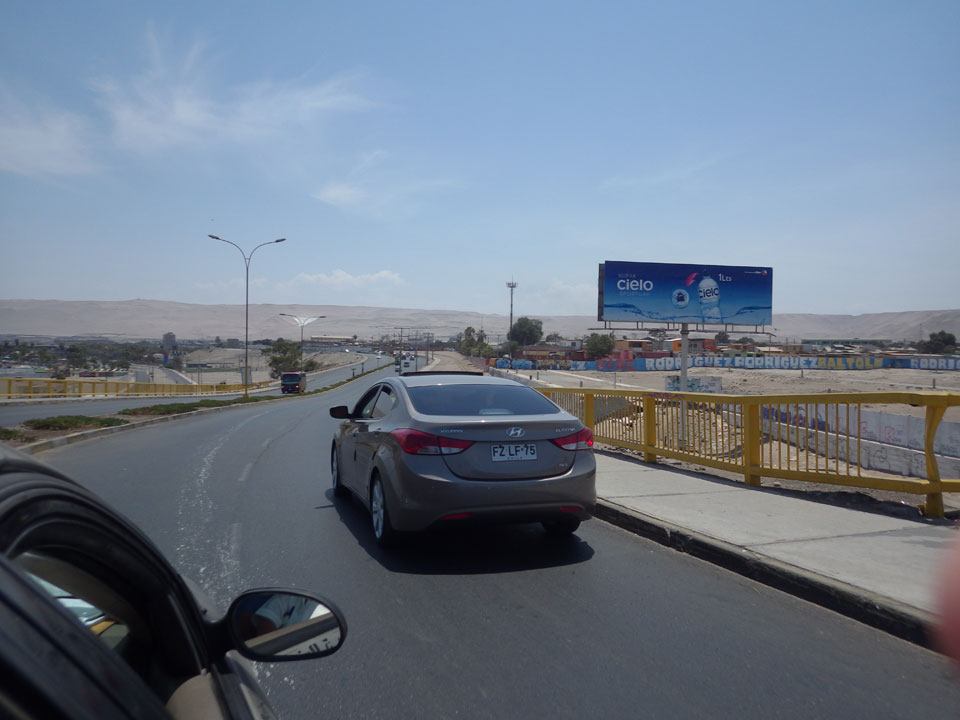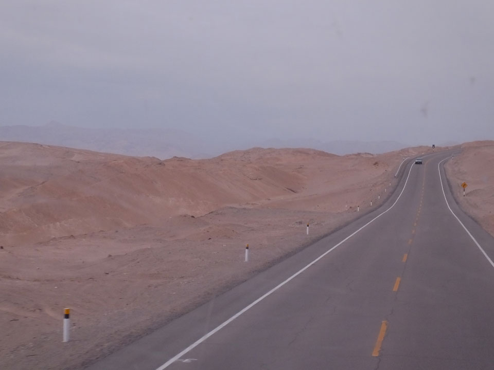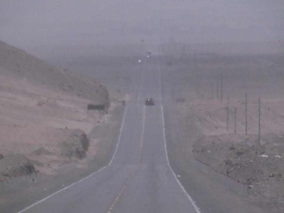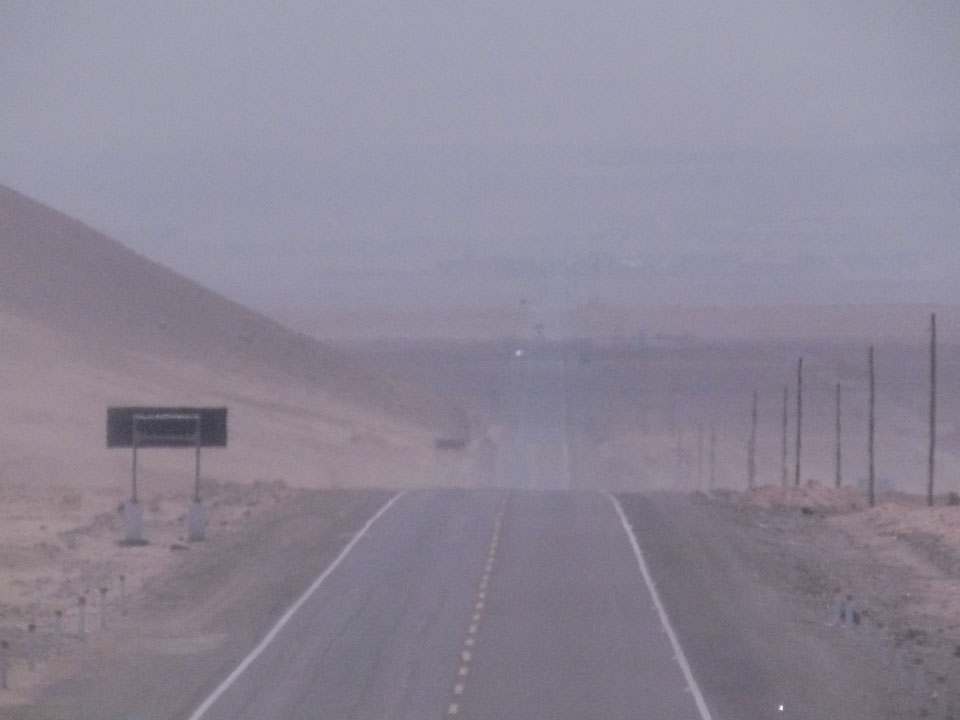 Raus aus Tacna startete schnell die Wüste. Interessant ist, dass viele leere Plätze mit kleinen Hütten besiedelt sind. Die sind zu klein, um als Haus zu gelten und ohne Wasser oder Strom kann dort kaum jemand leben. Ich fragte die Frau, was das sei. Da seien Spekulanten oder eben arme Leute, die das Land in Besitz nehmen – soweit ich das verstand.