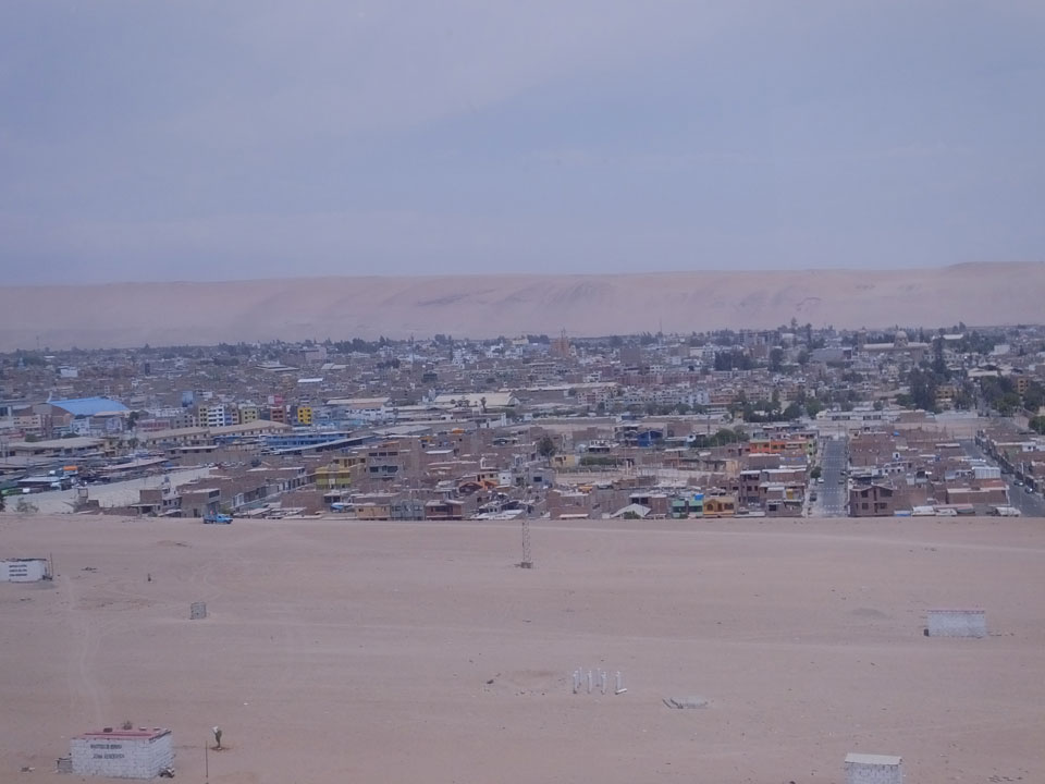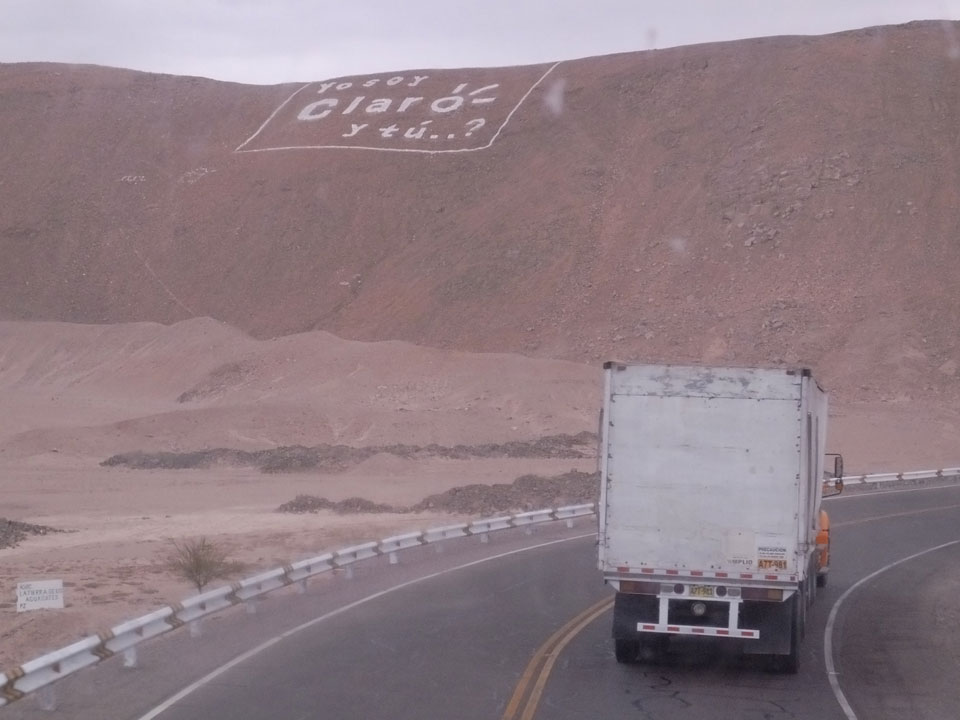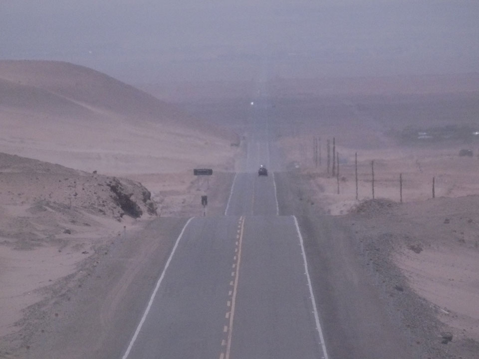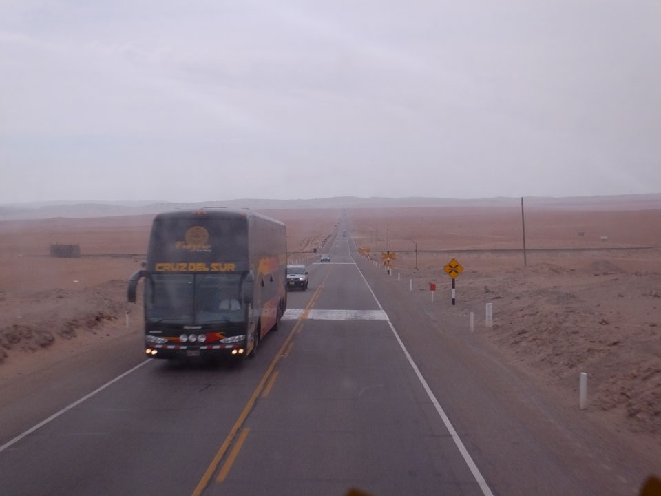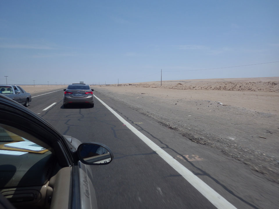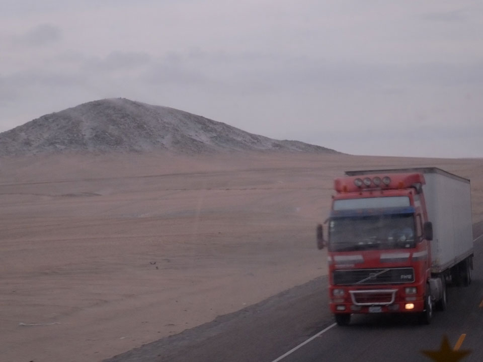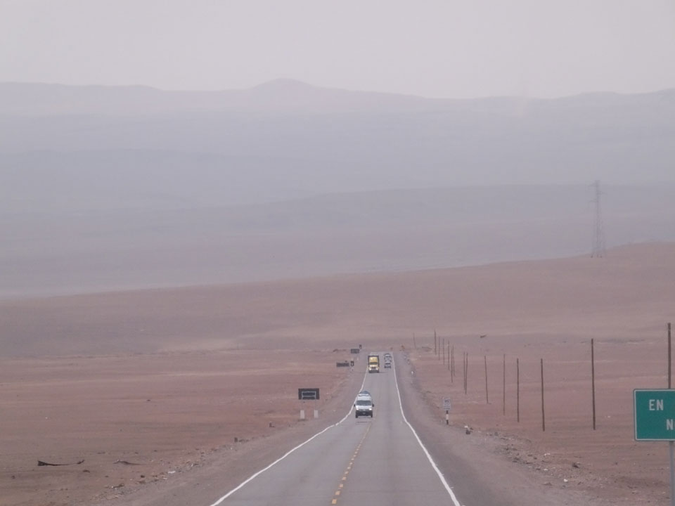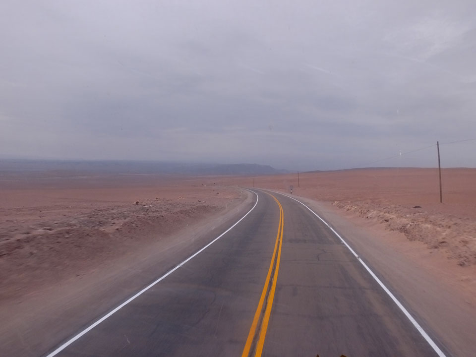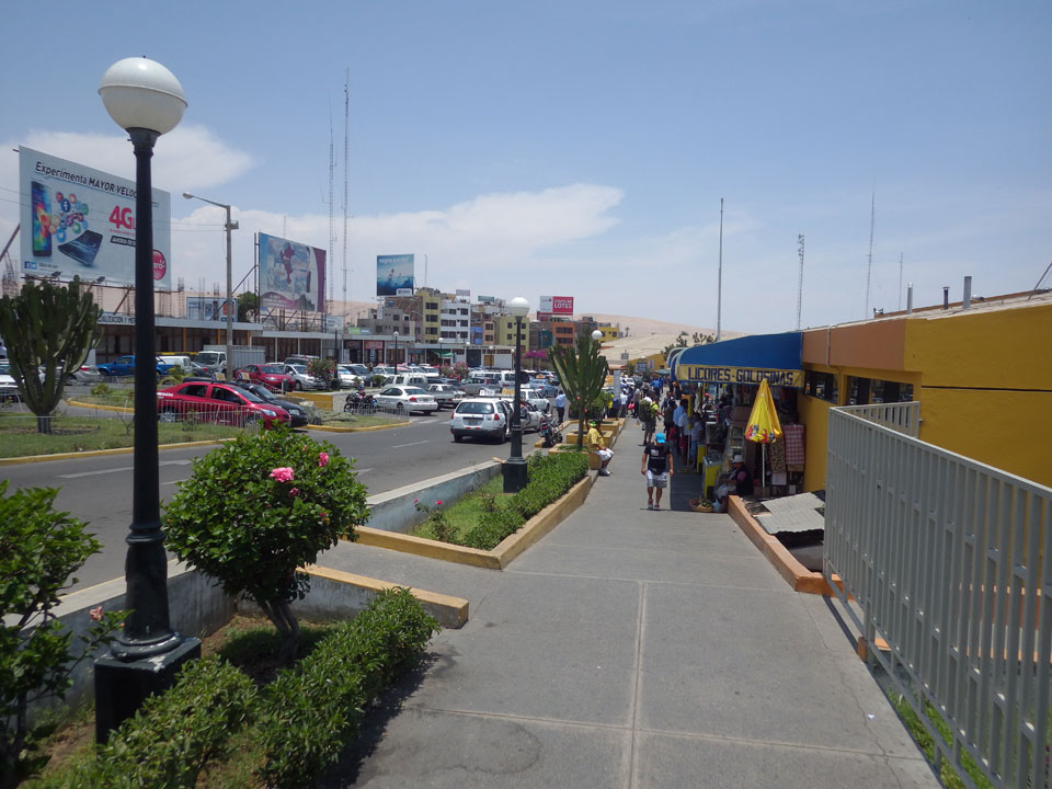 Raus aus Tacna startete schnell die Wüste. Interessant ist, dass viele leere Plätze mit kleinen Hütten besiedelt sind. Die sind zu klein, um als Haus zu gelten und ohne Wasser oder Strom kann dort kaum jemand leben. Ich fragte die Frau, was das sei. Da seien Spekulanten oder eben arme Leute, die das Land in Besitz nehmen – soweit ich das verstand.