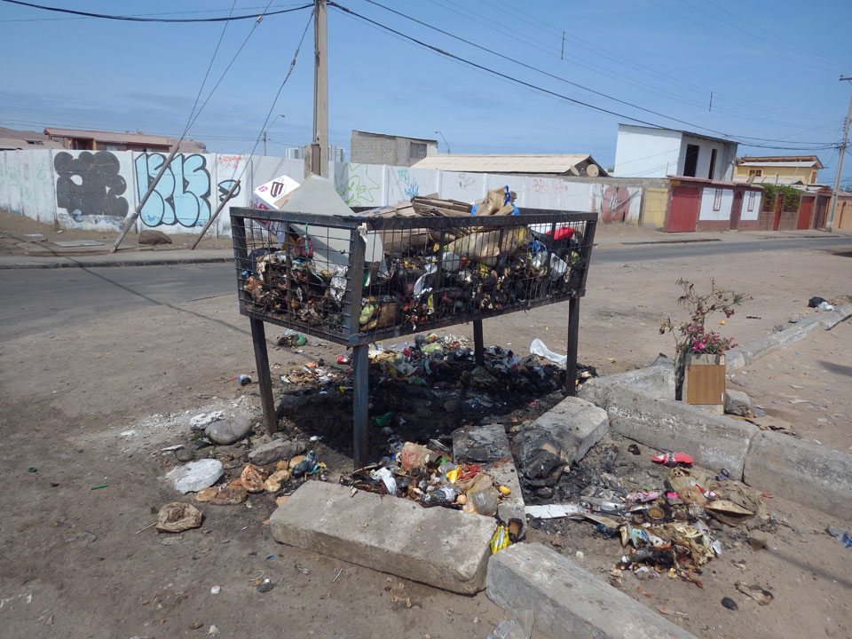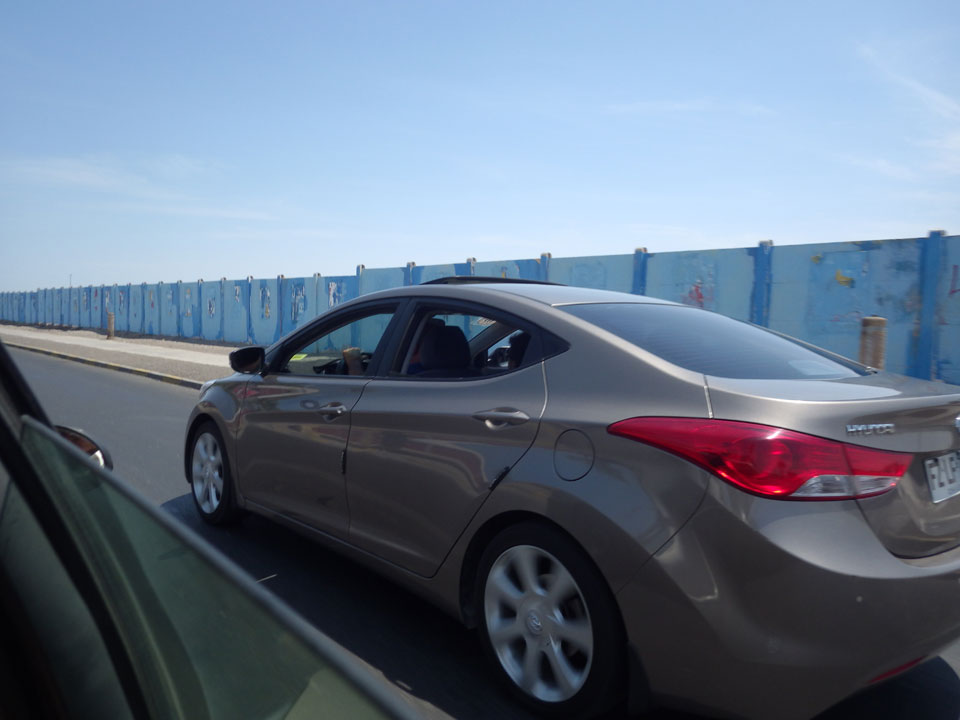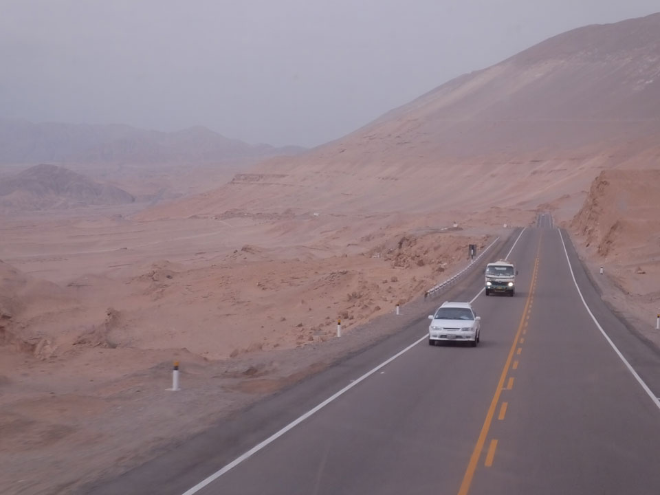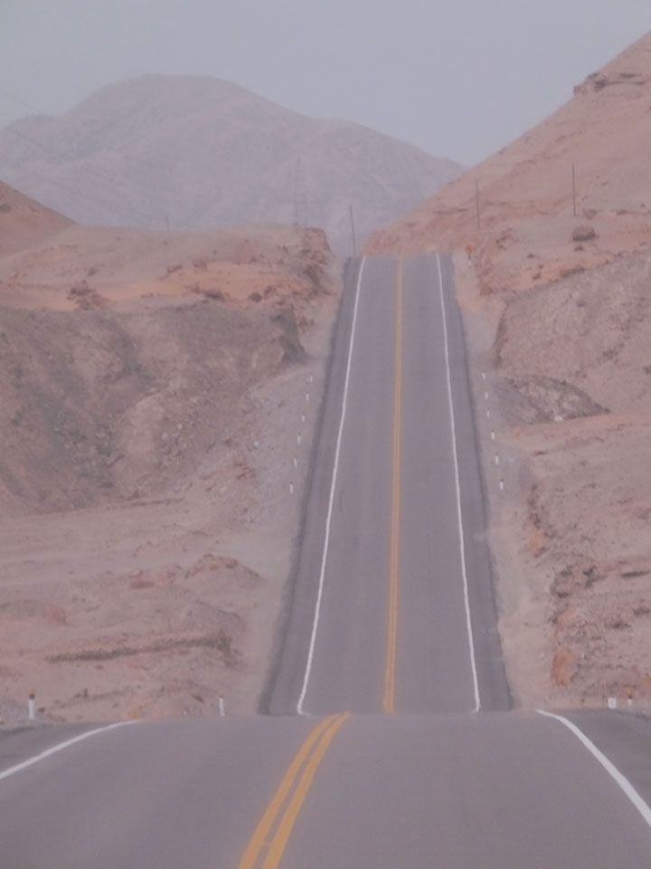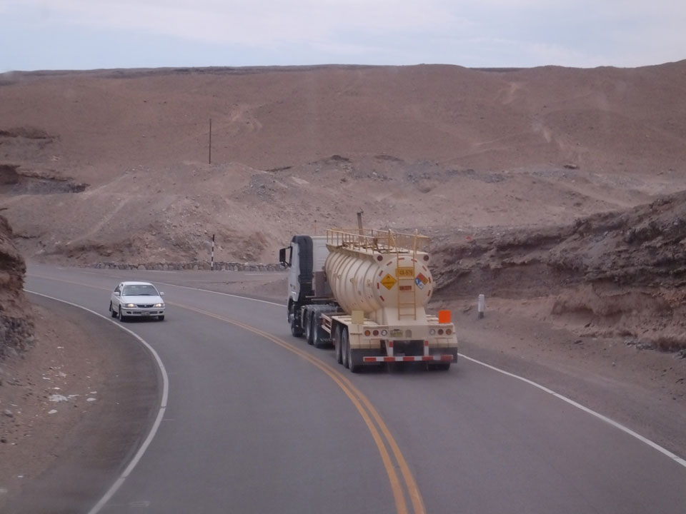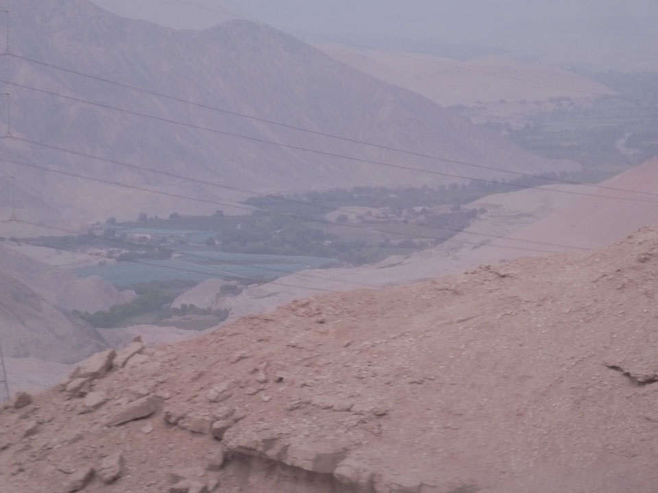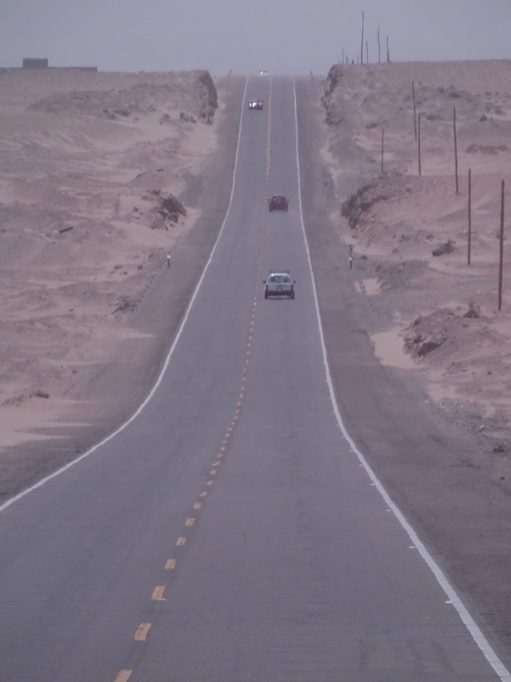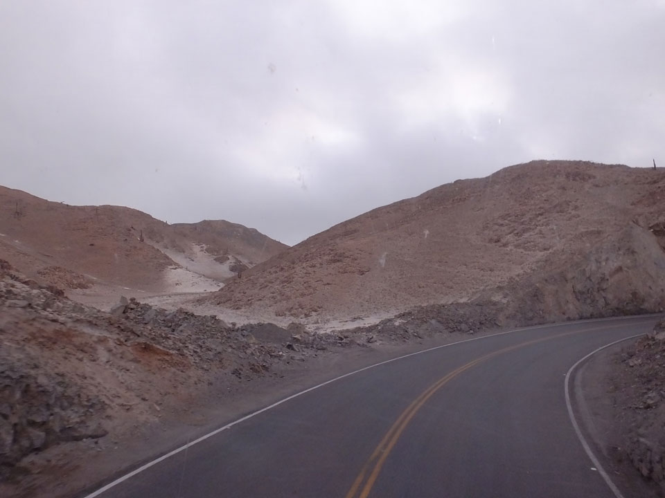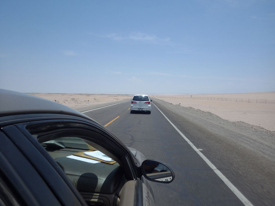Raus aus Tacna startete schnell die Wüste. Interessant ist, dass viele leere Plätze mit kleinen Hütten besiedelt sind. Die sind zu klein, um als Haus zu gelten und ohne Wasser oder Strom kann dort kaum jemand leben. Ich fragte die Frau, was das sei. Da seien Spekulanten oder eben arme Leute, die das Land in Besitz nehmen – soweit ich das verstand.