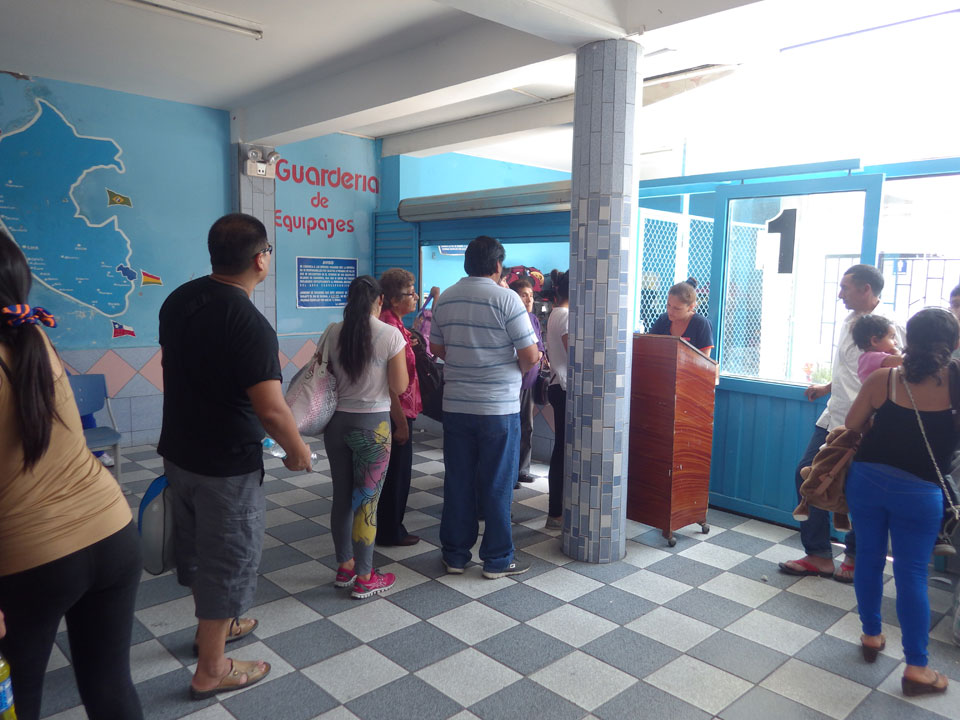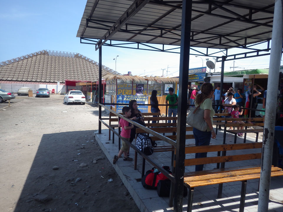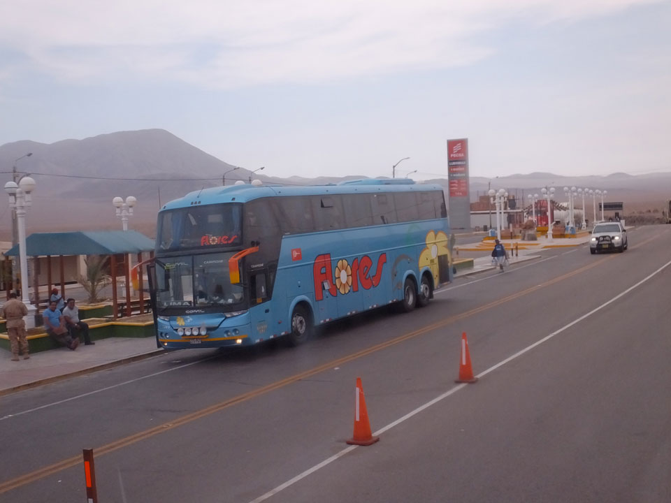 Das übliche Exit-Ticket für den Busbahnhof (1 Sol) hätte ich mir sparen können, denn Flores legte außerhalb der Station ab. Ich stand eine Weile, checkte mein Gepäck ein und dann ging’s auch schon los. Geplante Abfahrtszeit 12:30 – leicht verspätet.
