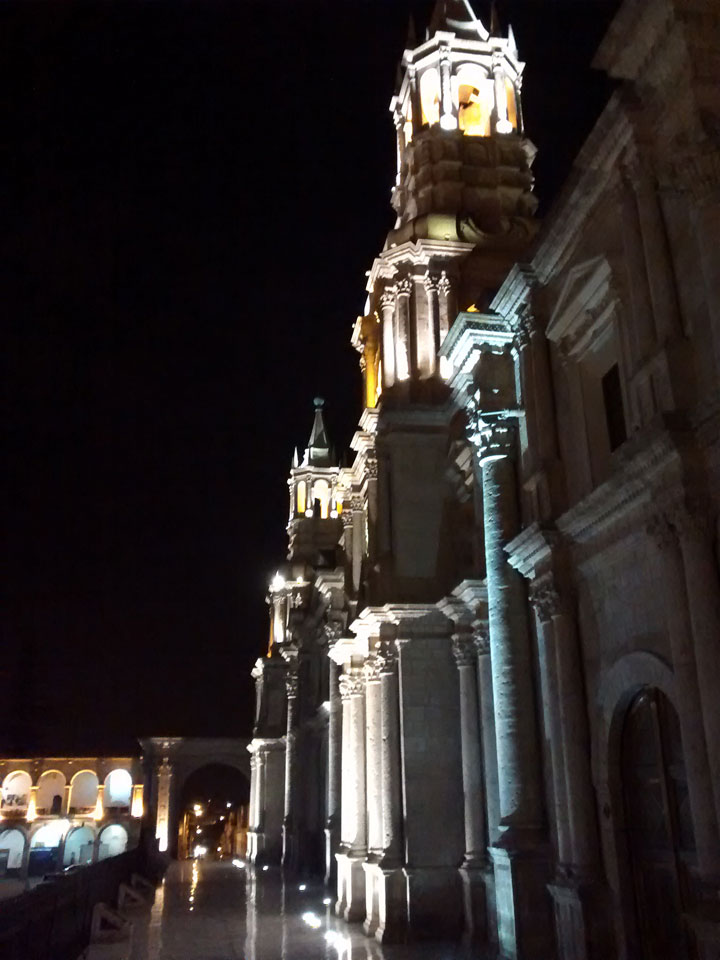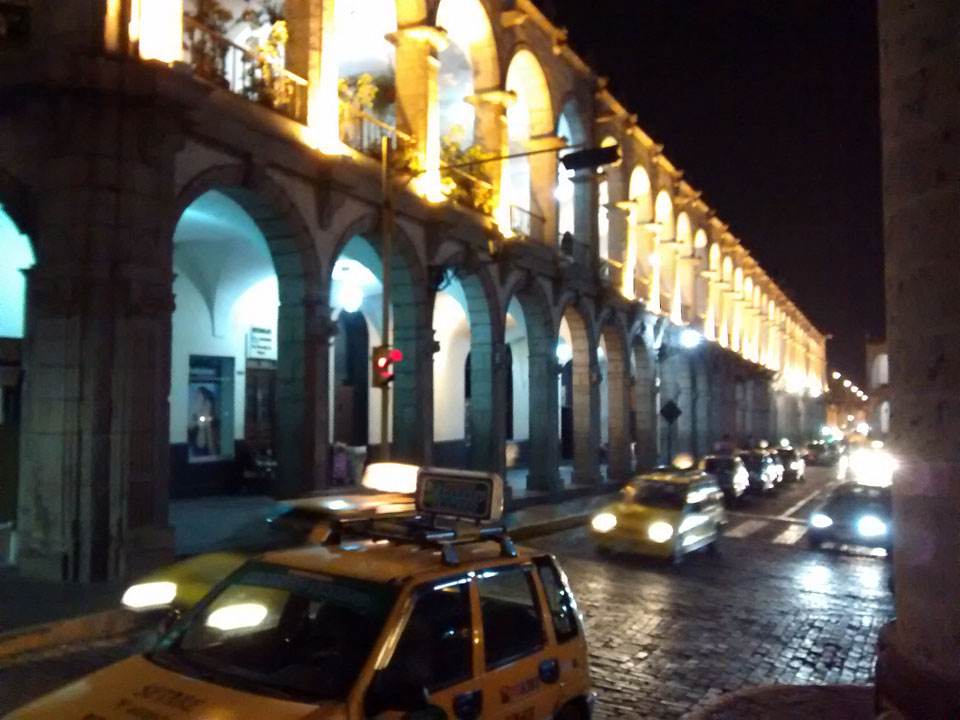 Der Bus kam in knapp 6h in Arequipa an. Mit dem Taxi (9 Soles = €2,60) in’s Hostal „Le Foyer“ gleich in der Partyzone. Mein Zimmer ganz OK aber für die $30 die Nacht kann man auch nicht so viel erwarten. Wieder Privatsphäre und abends etwas Nightlife. Ich war müde aber ganz happy.
