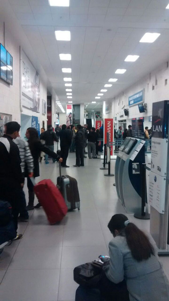 So saß ich wegen Internet in einem Café und chattete etwas herum. Um 21 Uhr wurde die Flugentscheidung nochmal auf 21:30 verschoben und dann kam die schlechte News: Der Flug war gecancelt. Es dauerte eine Weile, bis alle Passagiere ihr Gepäck zurück bekamen. LAN flog aber der Peruvian Airlines Flieger kam wohl nicht mal aus Lima an.
