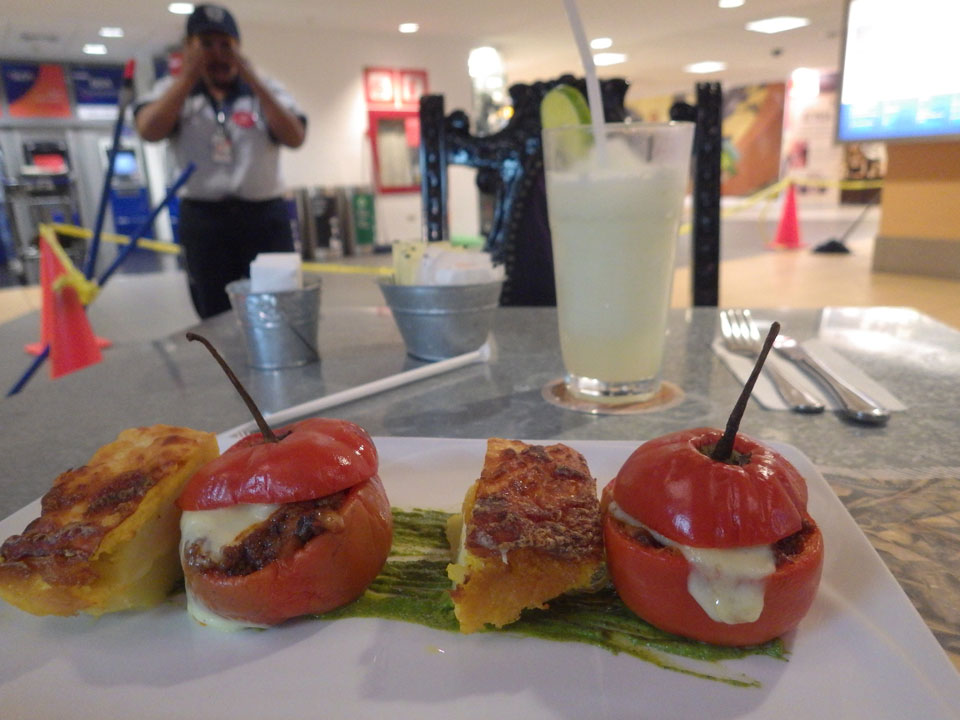 Wegen WiFi und etwas Hunger holte ich mir die Rocoto Rellenos. Mit Frozen Lemonade kam das dann 33.60+3 Tip – also mehr als €10. Teuer auf dem Flughafen aber so hatte ich das in Arequipa verpasste.