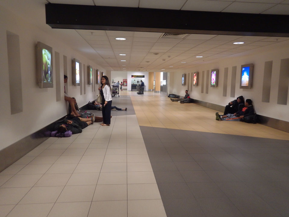 Als ich dann auf dem Flughafen sah, dass der Flug um 2 Stunden verspätet sei, war die Stimmung wieder leicht dahin. Ich war inzwischen wieder extrem müde, checkte meinen Rucksack ein und versuchte mich irgendwo hinzulegen. Wenig erfolgreich.