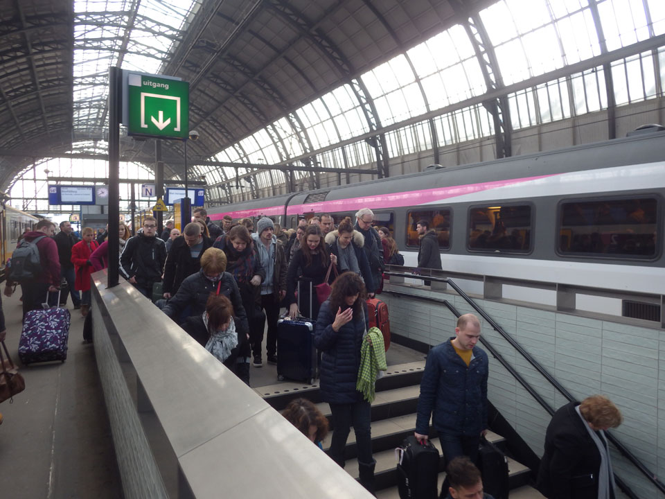 Pünktlich und problemlos ging früh die Einreise über die Bühne. Merklich frischer in Europa. Ich holte etwas Cash und wartete lange auf einen Zug nach Centraal. Viele Züge fielen aus, was das Warten auf dem kalten Bahnsteig ungemütlich machte.