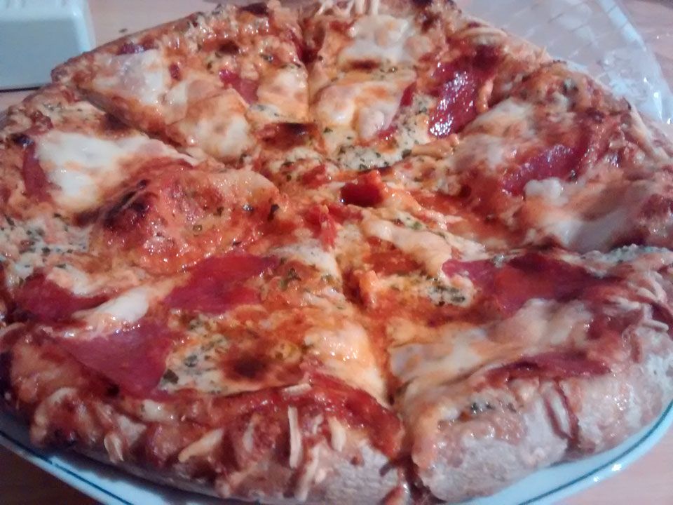 Abends dann zu REWE ca. €38 Einkauf. Ein neuer Herd funktioniert und so machte ich mir doch ’ne Pizza statt zu kochen.