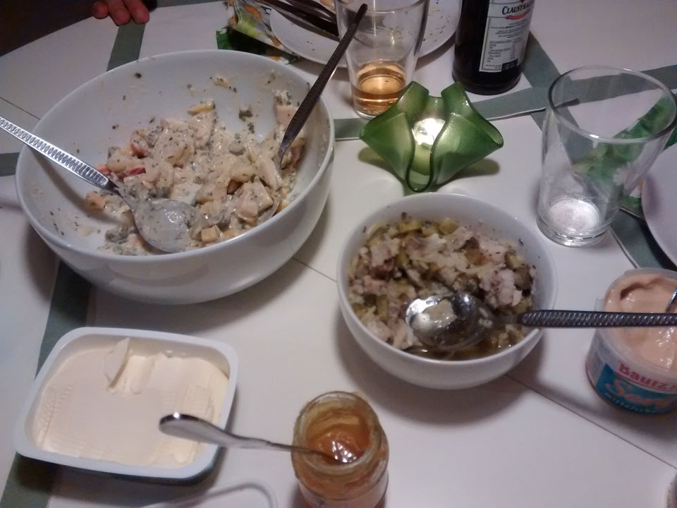 Mit einer 2 Stunden-Nacht kam ich heute endlich mal wieder in die richtige Zeitzone. Wir fuhren Abends zur Oma. Treffen beim Abendessen. Wenig neues, viel Kartoffelsalat.