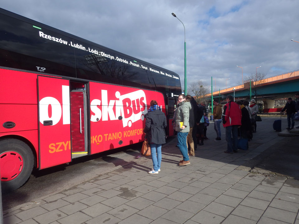 Viel Zeit bis zum Bus nach Lodz. Ich ließ mir ein Taxi rufen, wollte nicht laufen. Das Taxi kam und ich war echt froh, dass ich das hatte. Der Polskibus startete weit weg vom Zentrum.