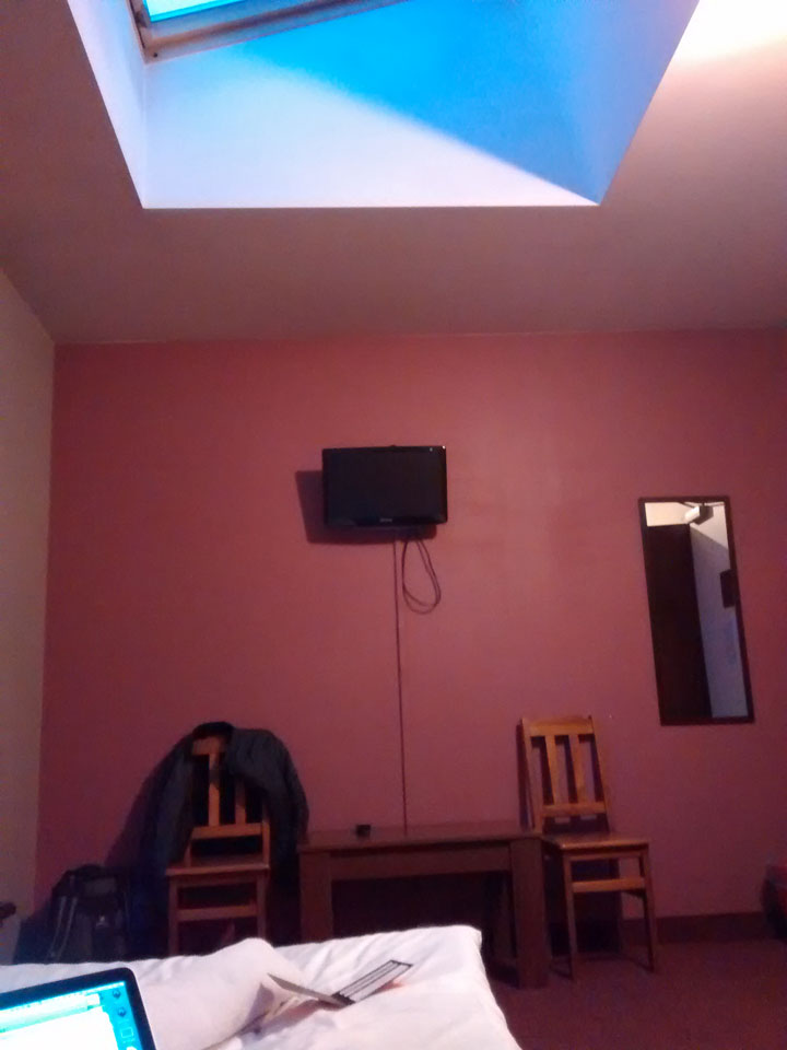 Das Flamingo Hostel in Lodz hat die Rezeption im Erdgeschoss, die Zimmer in der vierten Etage. Ganz schönes Treppensteigen. Da oben dann hatte ich ein nettes Privates 2-Bett-Zimmer. Für €15/Nacht echt gut. Da ging ich auch nicht mehr raus. Schlief wieder schnell ein, und wachte viel zu früh auf.