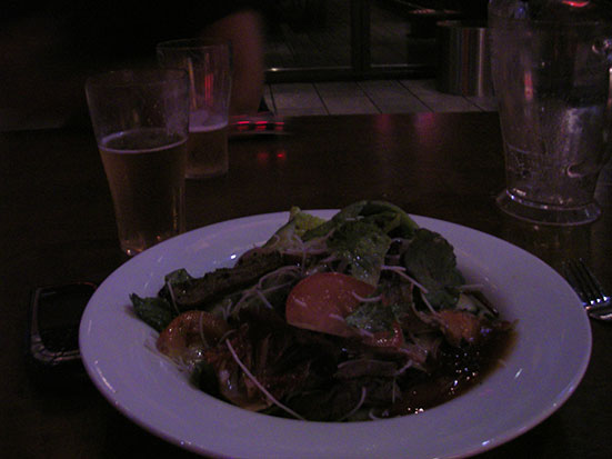 Wir gingen was essen. Gilligans war damals am ersten Abend schon gut. Dieses Mal auch – Thai Beef Salasd Ich gewann die erste Runde Pool, verlor die zweite haushoch. Cider und Bier – langsam muss ich kürzer treten. Body beats back. Will im Gilligans einchecken.