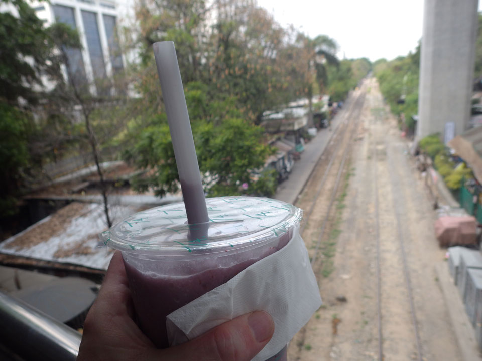 Mit der City Line ging’s in die Innenstadt. Ich holte mir ’nne Dumpling (25 THB und dann noch einen Berry Smoothie 60 THB) – zusammen also €2,50. Dann mit der MRT zur Nana-Station, wobei ich hier zuerst mal die falsche Richtung erwischte. ich hatte viel Zeit und schaffte es bis gegen 12 dann zum Hostel.