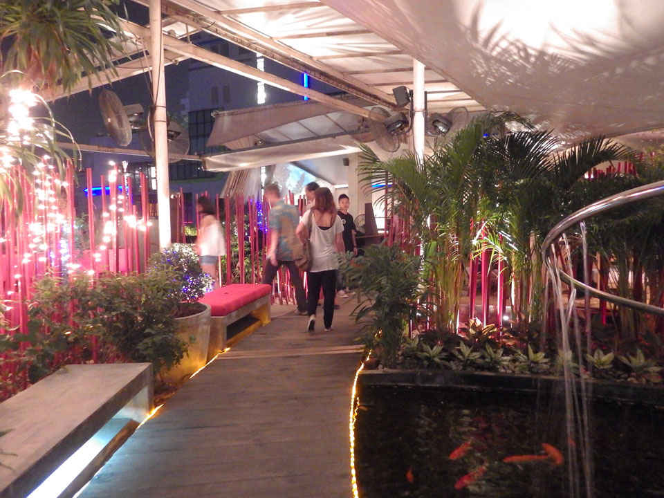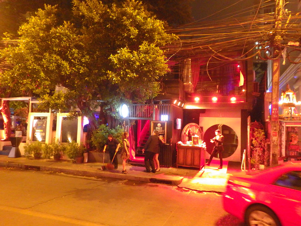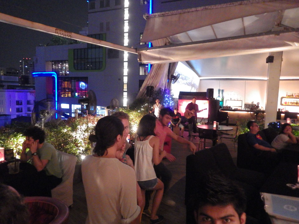 Mit dem Hostel ging ich dann in eine echt coole Rooftop Bar „Nest“. Ich erzählte etwas von anderen Reisen. Zu Fünft war die Runde klein bei zwei großen Drinks zu Live Musik. Nach Mitternacht gingen wir nochmal was essen und dann in die Soi Cowboy, für die, die es noch nicht gesehen hatten.