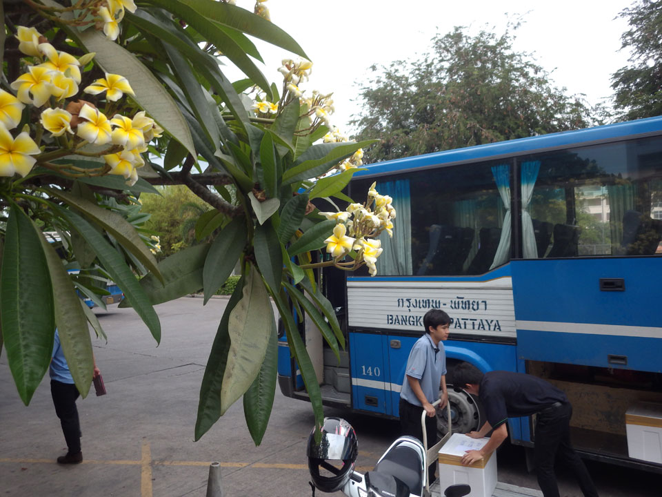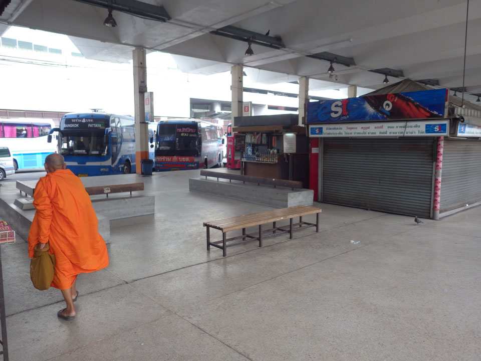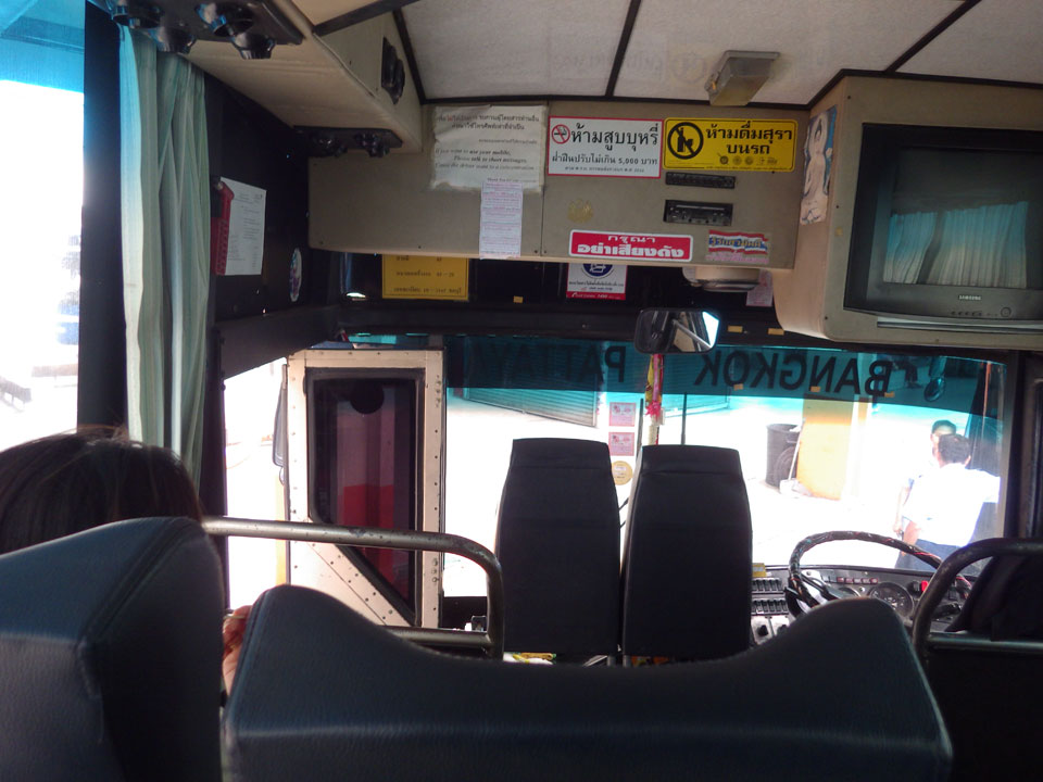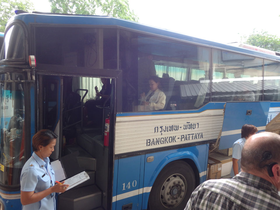 Mit dem Taxi zu 120 THB zur Ekamai Bus-Station. Dort dann 119 THB für den Bus nach Pattaya um 15:00, gerade mal in ’ner Viertelstunde.