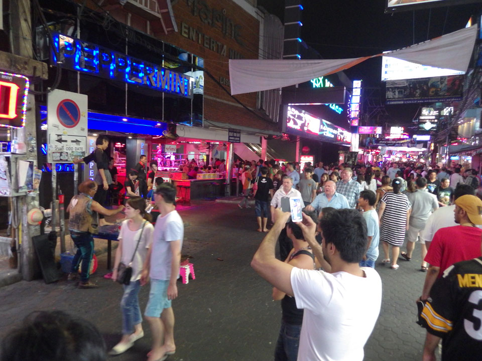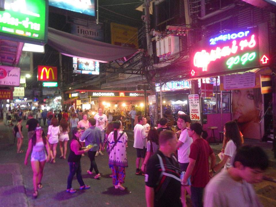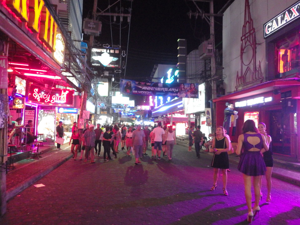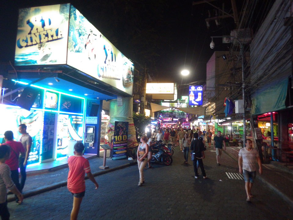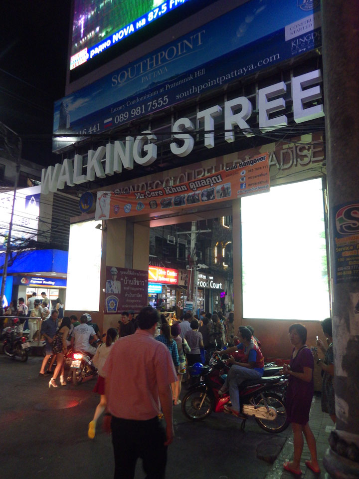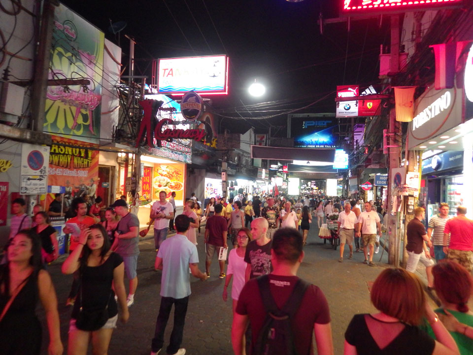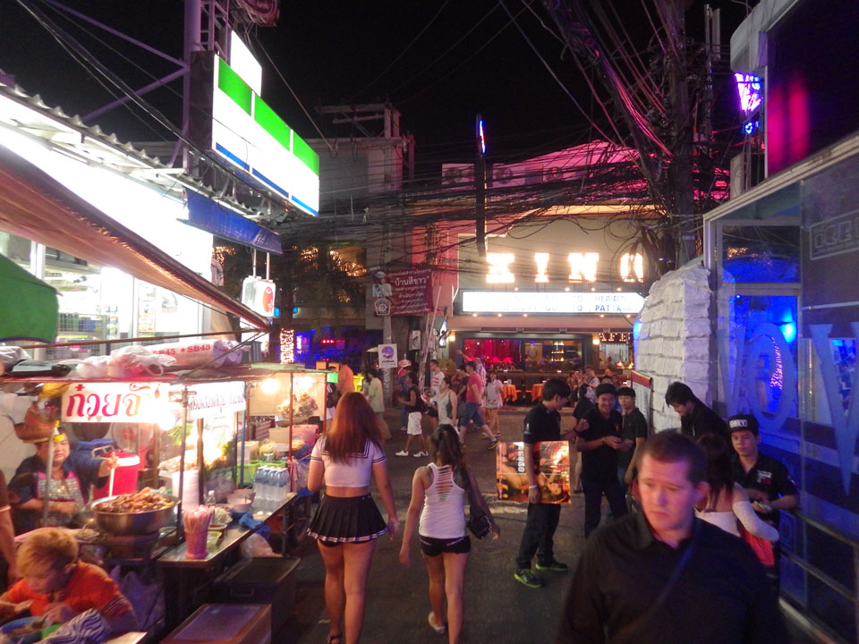 Als erstes aß ich was – Tom Yum mit Kokosnuss – machte 200 THB. Etwas teurer als Bangkok hier, Urlaubsgegend halt. Dann checkte ich die Walking Street und die imponierte schon. So viele Bars, Clubs und Touristengeschäfte. Vieles auf Russisch, Restaurants und Strip Bars.