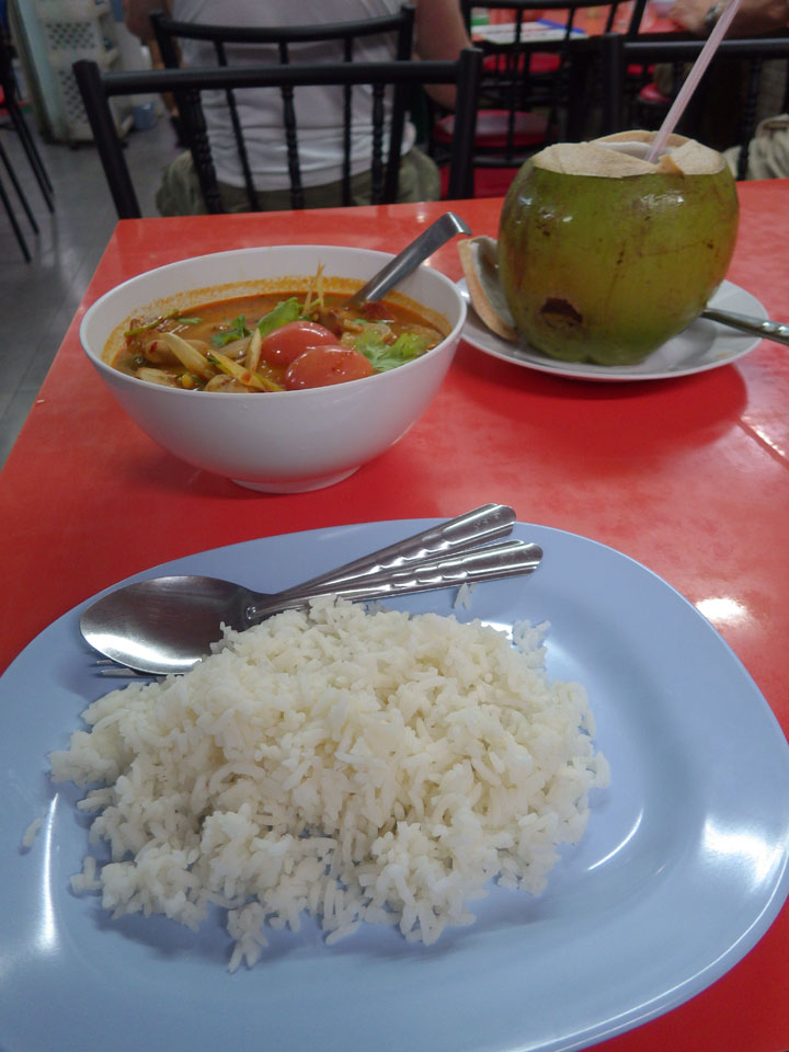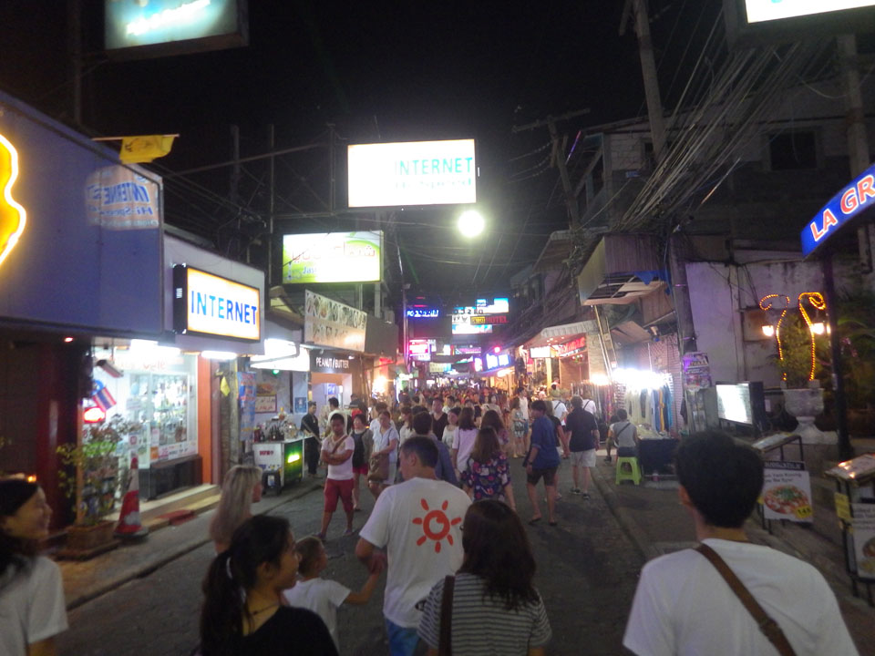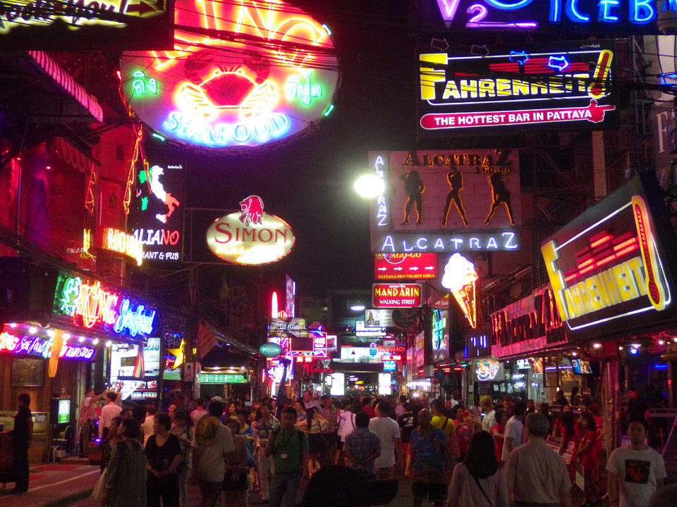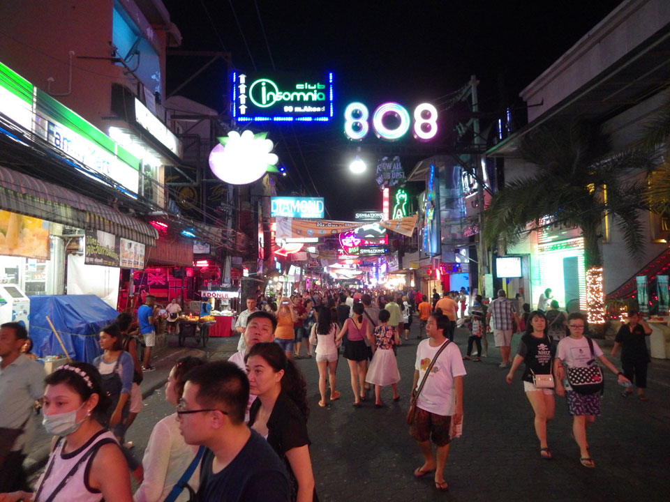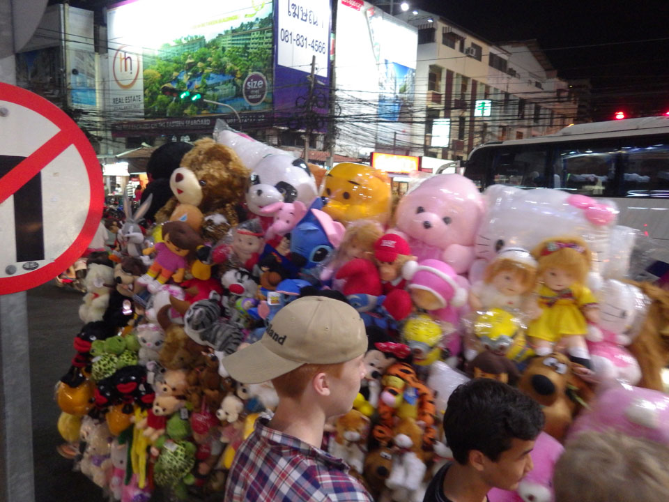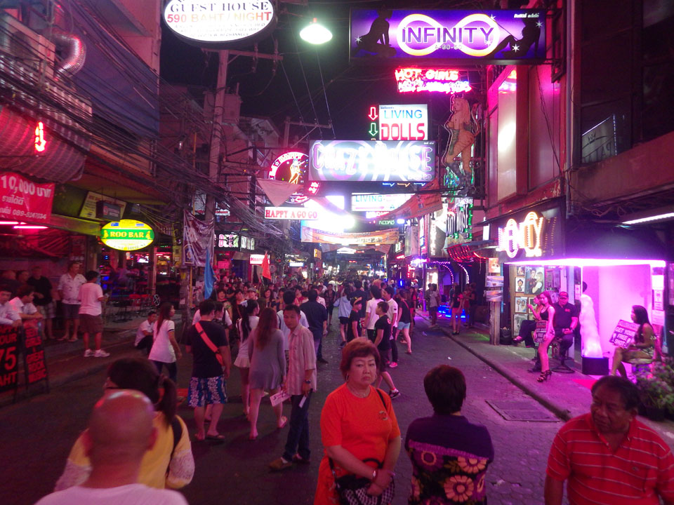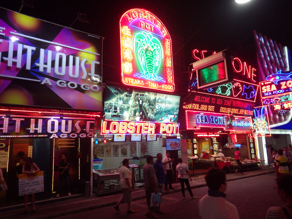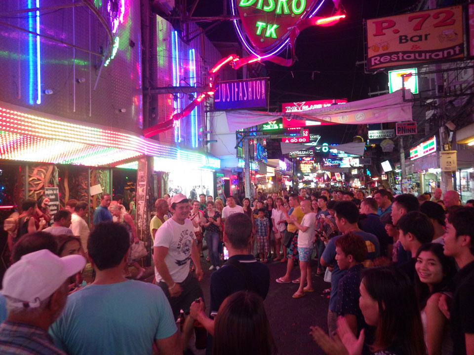 Als erstes aß ich was – Tom Yum mit Kokosnuss – machte 200 THB. Etwas teurer als Bangkok hier, Urlaubsgegend halt. Dann checkte ich die Walking Street und die imponierte schon. So viele Bars, Clubs und Touristengeschäfte. Vieles auf Russisch, Restaurants und Strip Bars.