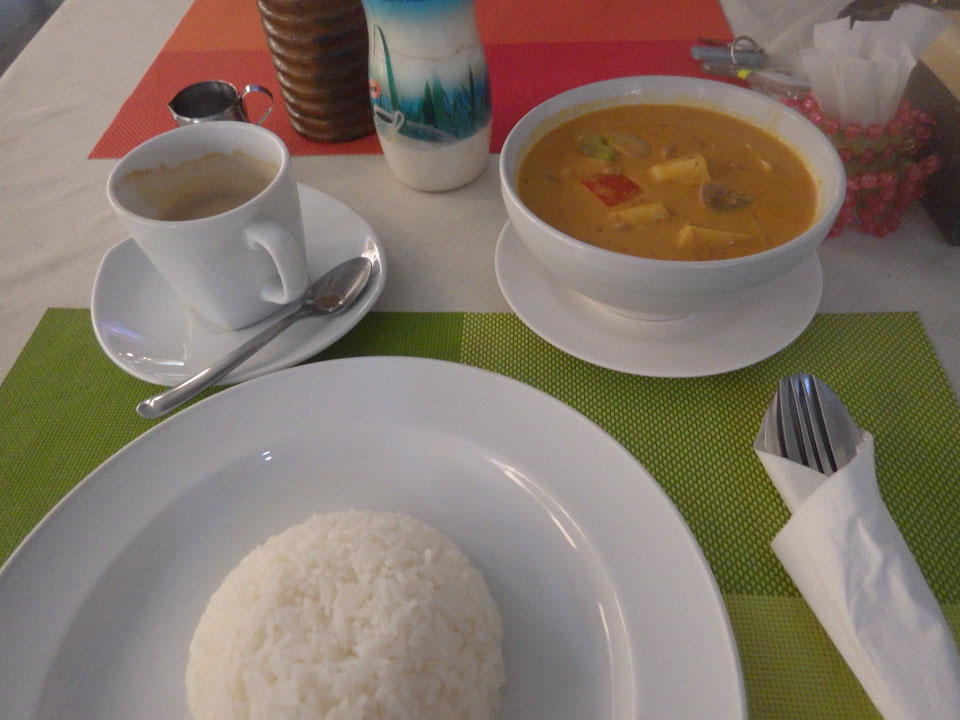 Die Wäsche war dran. Neben dem Hotel standen ein paar Waschmaschinen. Für 30 THB die Wäsche – ein guter Deal. Ich warf die Sachen rein, aß ein schön scharfes Yellow Beef Curry, was mich in’s Schwitzen brachte.