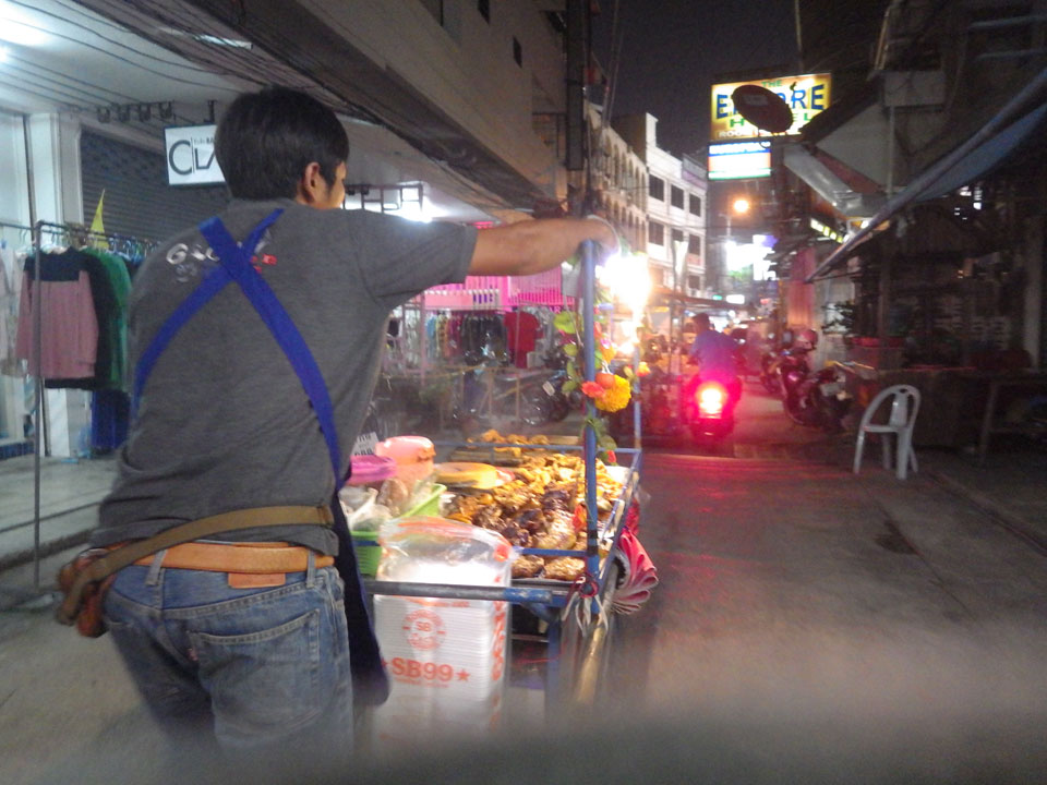 Als die Wäsche fertig war, wollte ich sie trocknen lassen. Für 60 THB standen da auch Trockner. ich steckte die Stecker in die Dosen, da gingen die – oder doch nicht. Nur der Timer lief, als die Box meine 60 THB geschluckt hatte. Nein, die Trockner „have problem“. Ich bekam das Geld zurück. Auf der gegenüberliegenden Straße wollte man 150 THB für’s trocknen, im nächsten Geschäft 50 THB. Wenn die Leute viel diskutieren, ist das meist ein Zeichen für überhöhte Preise. 50 THB war OK und die Wäsche war dann auch echt trocken und heiß. Dummerweise hatte ich mal wieder einen Camera-Akku vergessen.