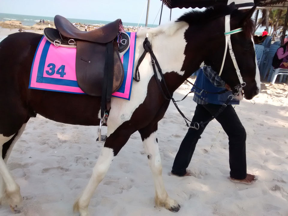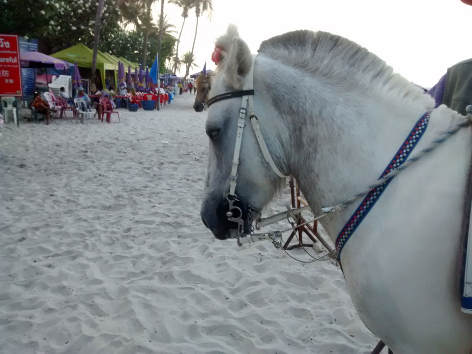 Ich lag also bissel da, schaute den Ponies und Pferden am Strand zu, ging schließlich mal in’s Wasser. Soo warm hier! Hier in Hua Hin kann man direkt reinspringen, genau die richtige Temperatur und einen hauch von Kälte drin. Springen und schwimmen musste ich dann doch etwas vorsichtiger. Erst stieß ich mir mein Knie an einem Unterwasser-Stein. Dann später nochmal den Arm. Beides wohl mit ordentlich Schwung mit Blut. Bis die Sachen dann aufhörten verging auch etwas Zeit aber nach einer reichlichen Stunde machte ich wieder Richtung Hotel.