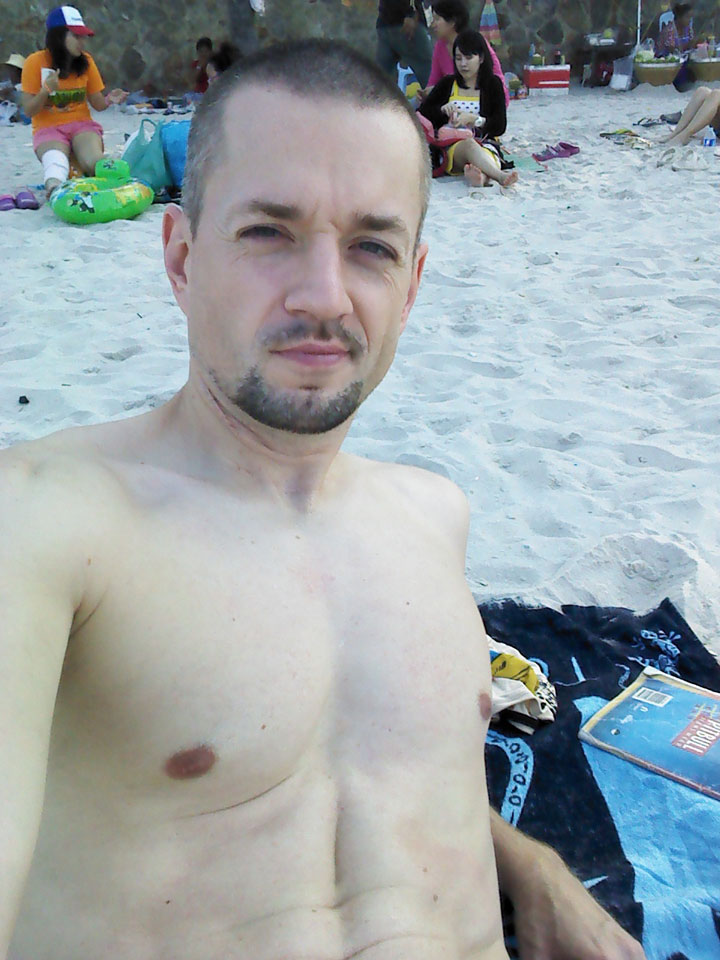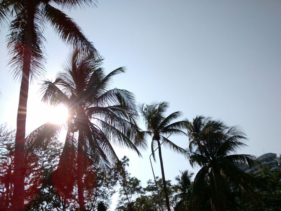 Nachmittags ging’s an den Strand. Mein Instant-Kaffee vom 7-11 hatte gleich zwei Tüten drin, war aber bei dem Glück sehr undicht. So schwappte das Zeug herum auf dem Weg zum Strand.