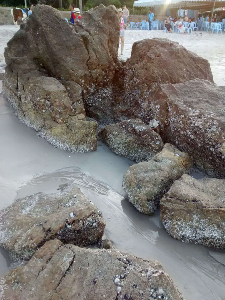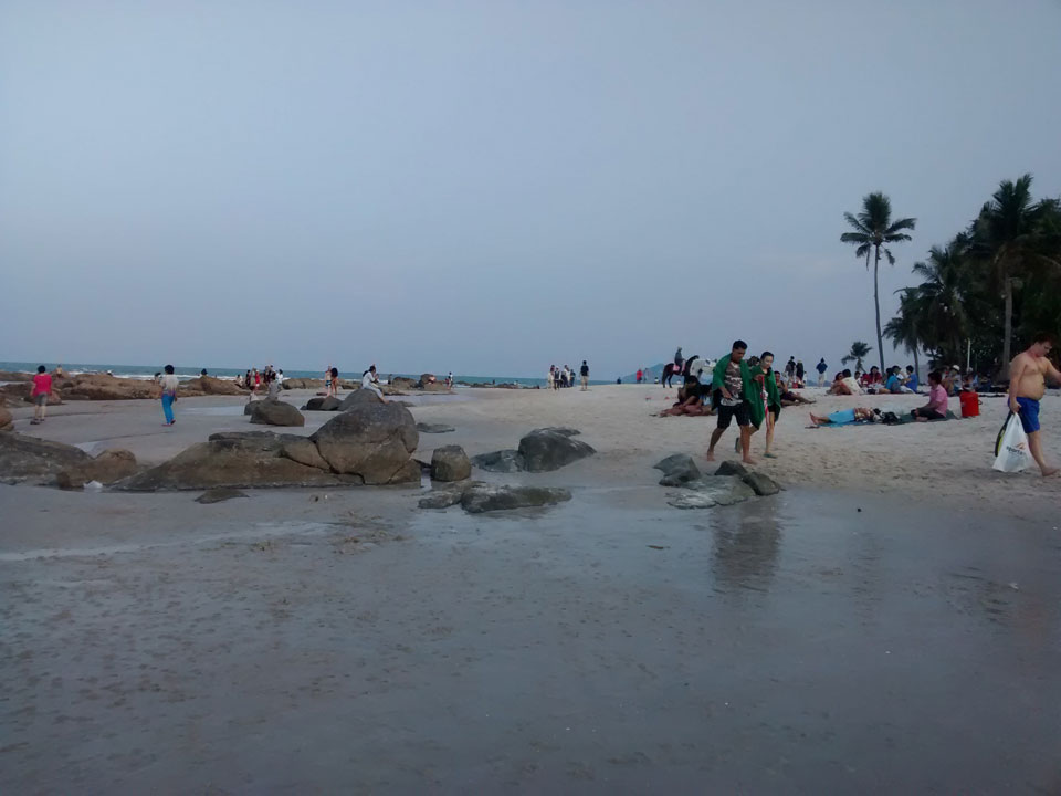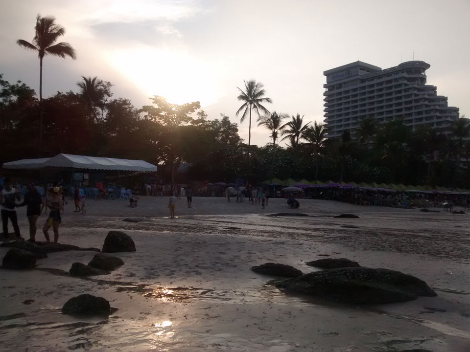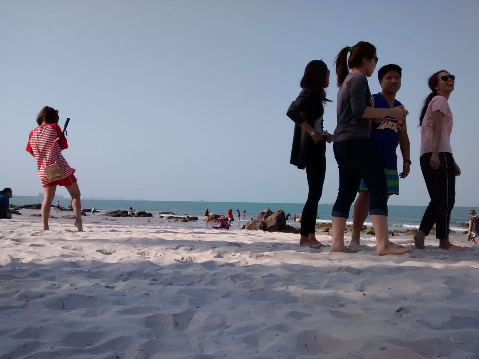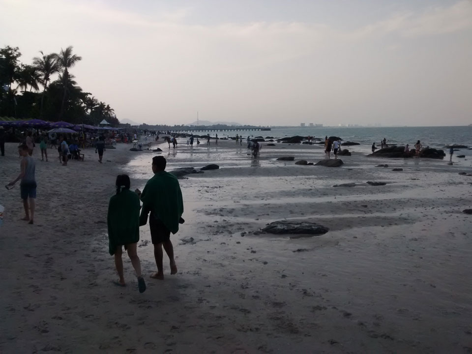 Echt ganz nett hier und gar nicht so versifft wie Pattaya. Hier herrschat mehr Familien-Asuflugs-Atmopsphäre. Eine chinesische Gruppen springen auch umher. Mein Verachtung gegenüber Selfie-Sticks hat sich etwas gelegt, nachdem ich mit der Theta auch mit Stativ herumwackel. Heute mal nur das Handy als Camera am Strand dabei.