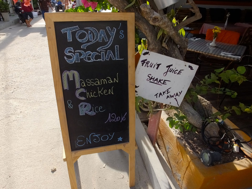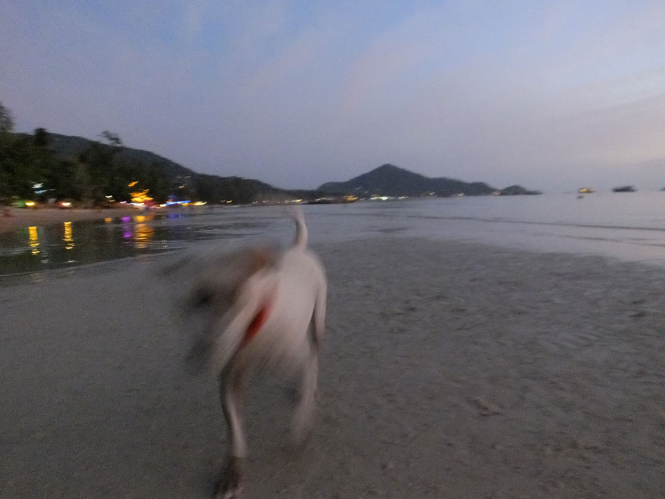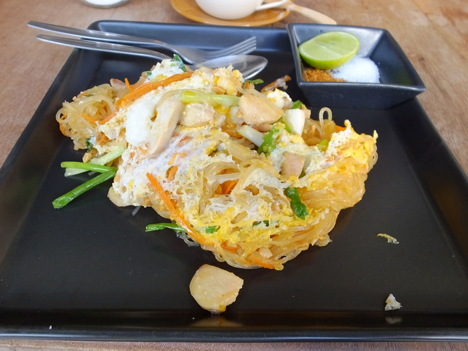 Nebenan beim Samatha B&B holte ich mir einen Cappuccino (60 THB) und ein Pad Thai (120 THB). Jetzt um 16:00 eine Frühstück&Mittag und fast schon Abendessen Kombo. Dann runter am Strand machte ich ein paar Bilder, ab jetzt mehr mit der Fuji. Macht mehr Spaß aber Sand ist für die gefährlich.